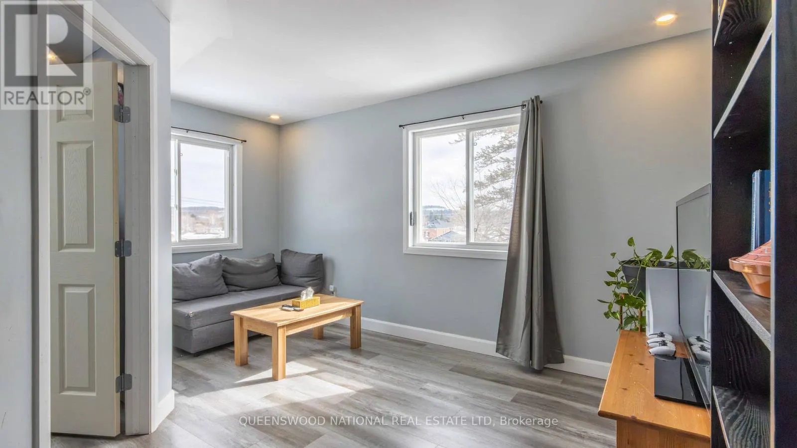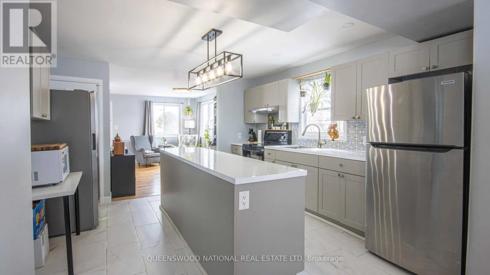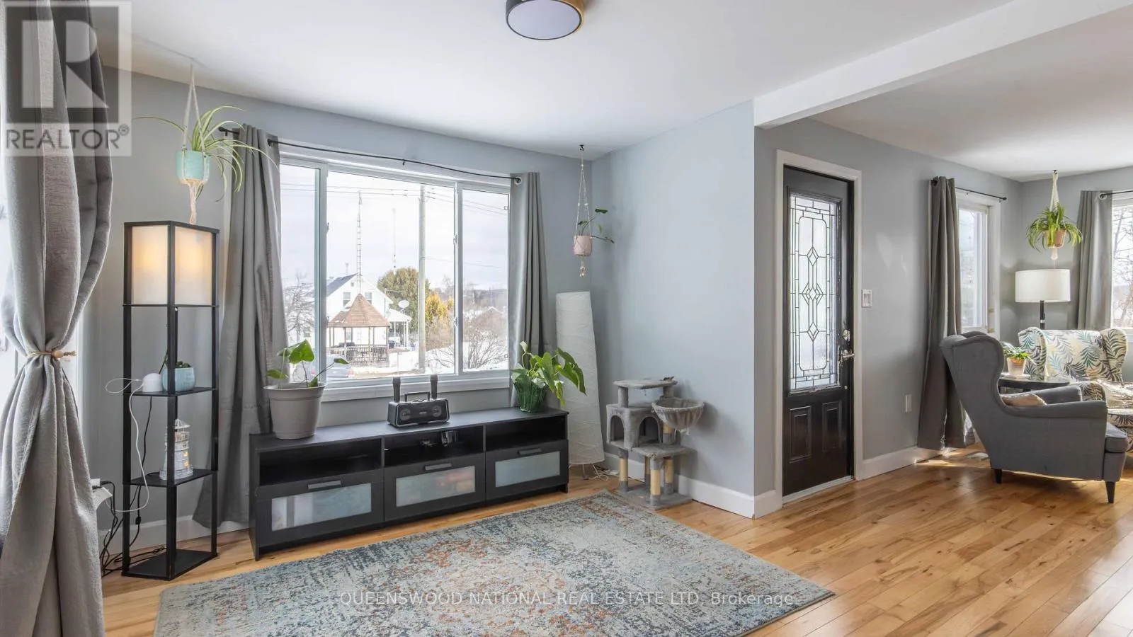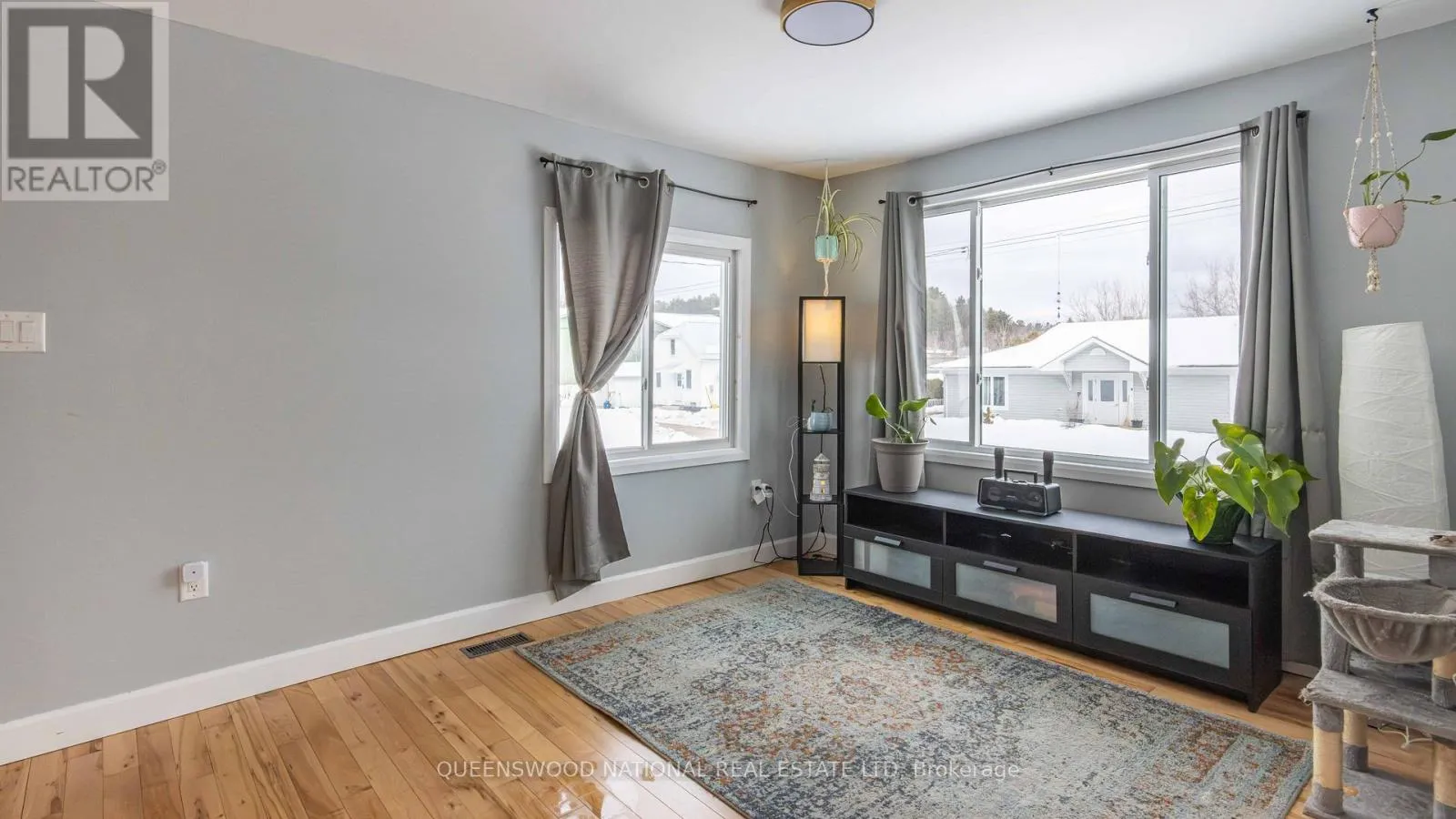 Cross Streets: John and Inglis Street. ** Directions: John Street to Inglis Street or Opeongo Line to Conway Street to Inglis. Welcome to your nearly-new sanctuary in the heart of Barry's Bay, where modern elegance meets the tranquility of nature. This meticulously fully renovated home offers the pristine feel of a new build, boasting two separate living spaces on the main floor separated by a chef-inspired kitchen-a layout ideal for large family gatherings. This culinary heart features a large kitchen island, expansive quartz countertops, and oversized ceramic tiles, while high-end hardwood and premium laminate flooring flow throughout the remainder of the home. Sliding doors lead from the main living area to a private retreat that backs onto a lush, tree-lined greenspace, all while being just steps away from the local hospital, library, boutique shopping, and dining. Designed for effortless living, the main floor also includes a convenient laundry room, a substantial walk-in storage closet, and a stunning oak staircase leading to the upper level.The upper level is thoughtfully designed for a growing family with four bedrooms in total, including three practical bedrooms and an expansive master suite that serves as a true showstopper. This primary retreat offers dramatic vaulted ceilings, a large walk-in closet, and a four-piece dream ensuite complete with double sinks. A versatile bonus nook on the upper level provides the perfect spot for a home office or quiet reading corner, adding to the home's functional layout. With three stylish bathrooms in total and the comfort of a high-efficiency forced-air propane furnace, every inch of this home has been optimized for quality and convenience. This is a rare opportunity to own a sophisticated, move-in-ready home that perfectly balances small-town charm with contemporary luxury. Furnace, roof, water heater, electrical and plumbing all newer 2022 (id:27476)