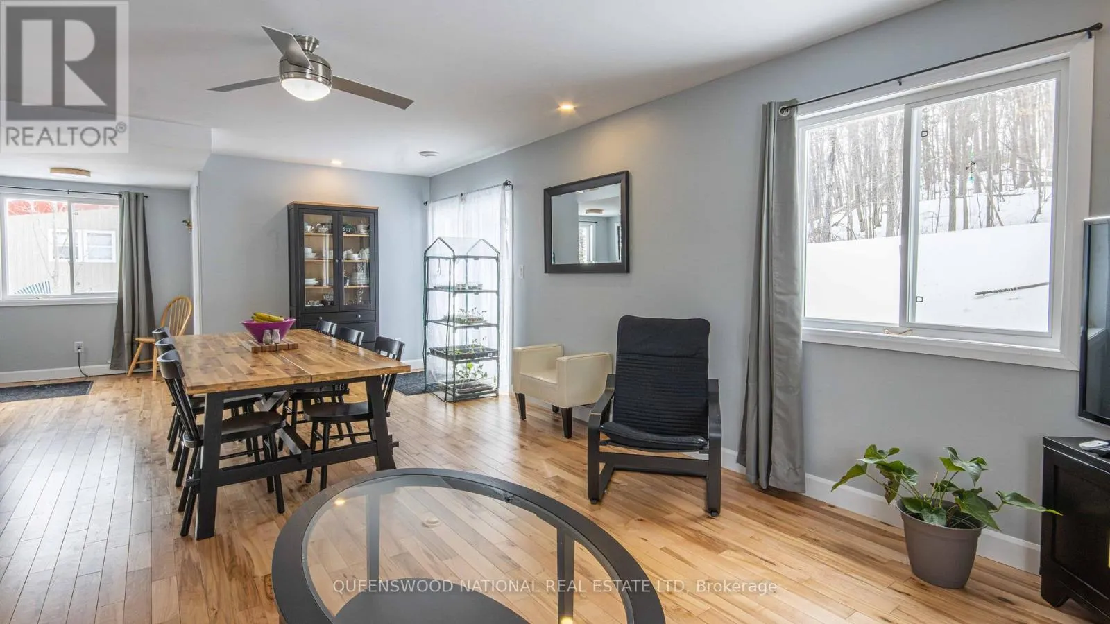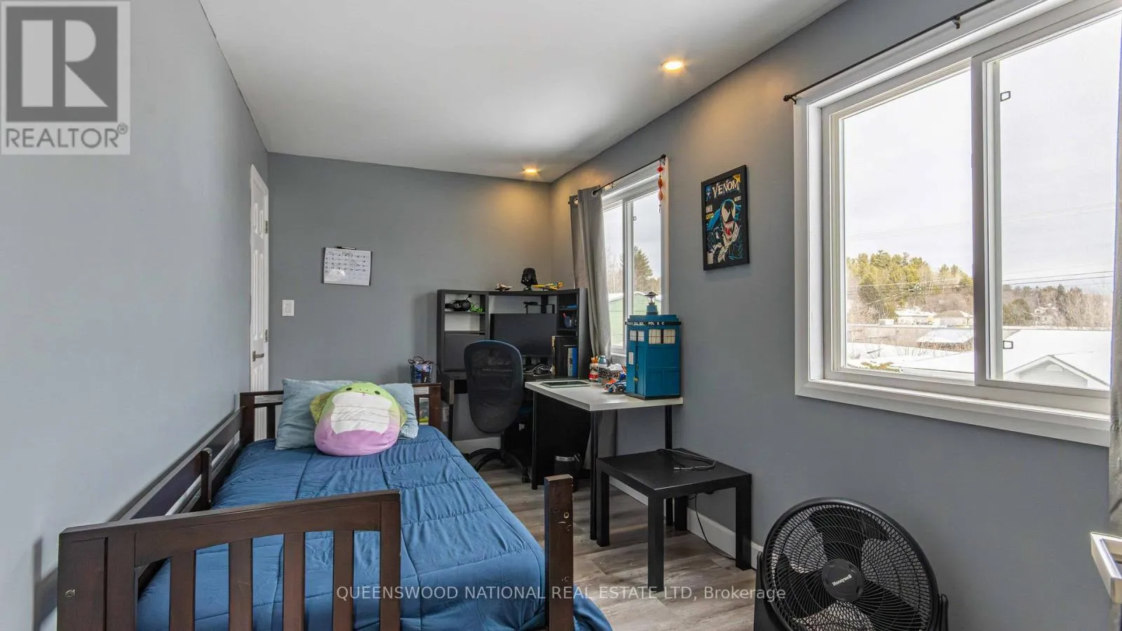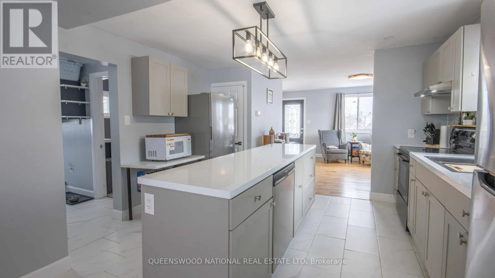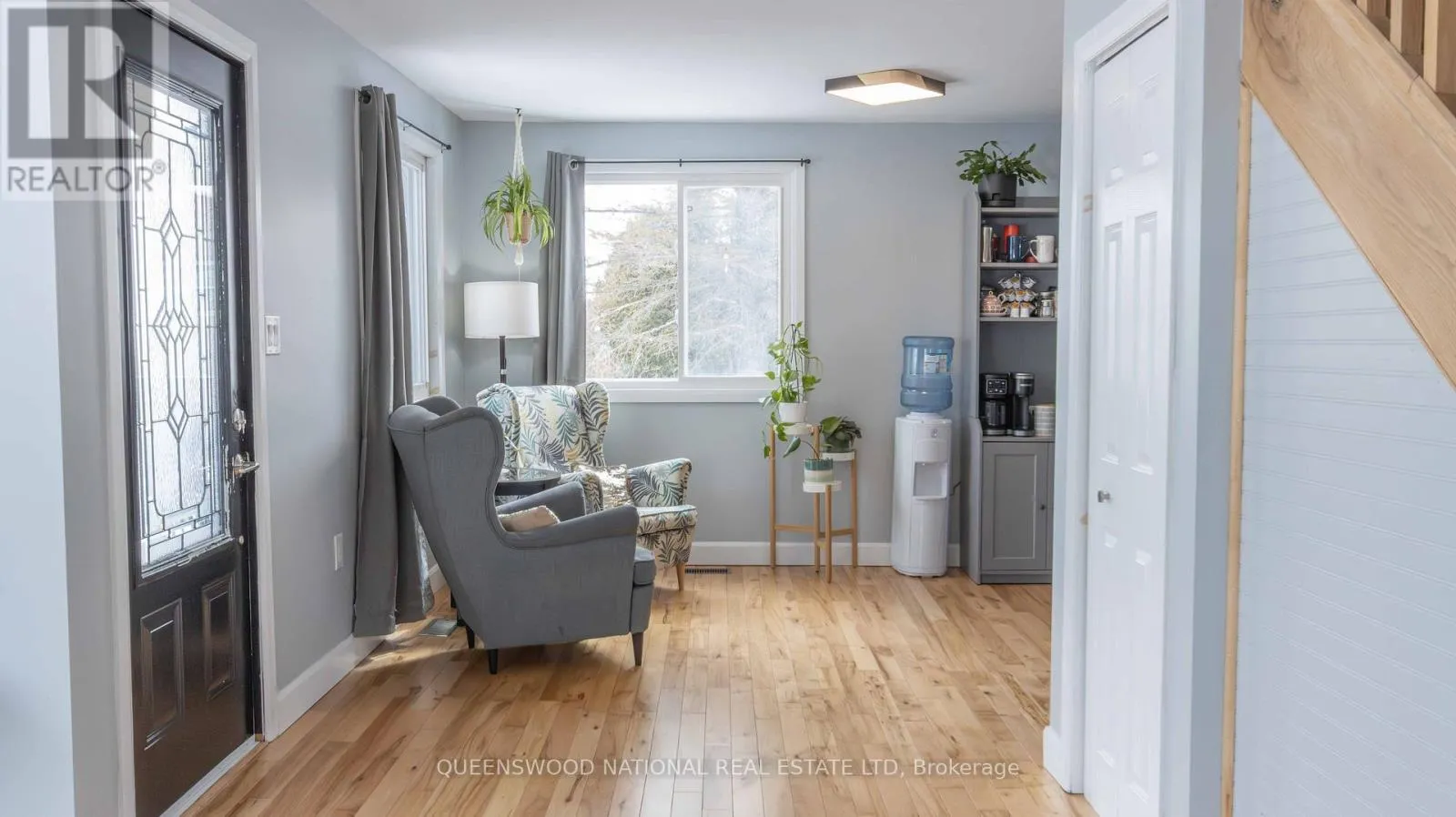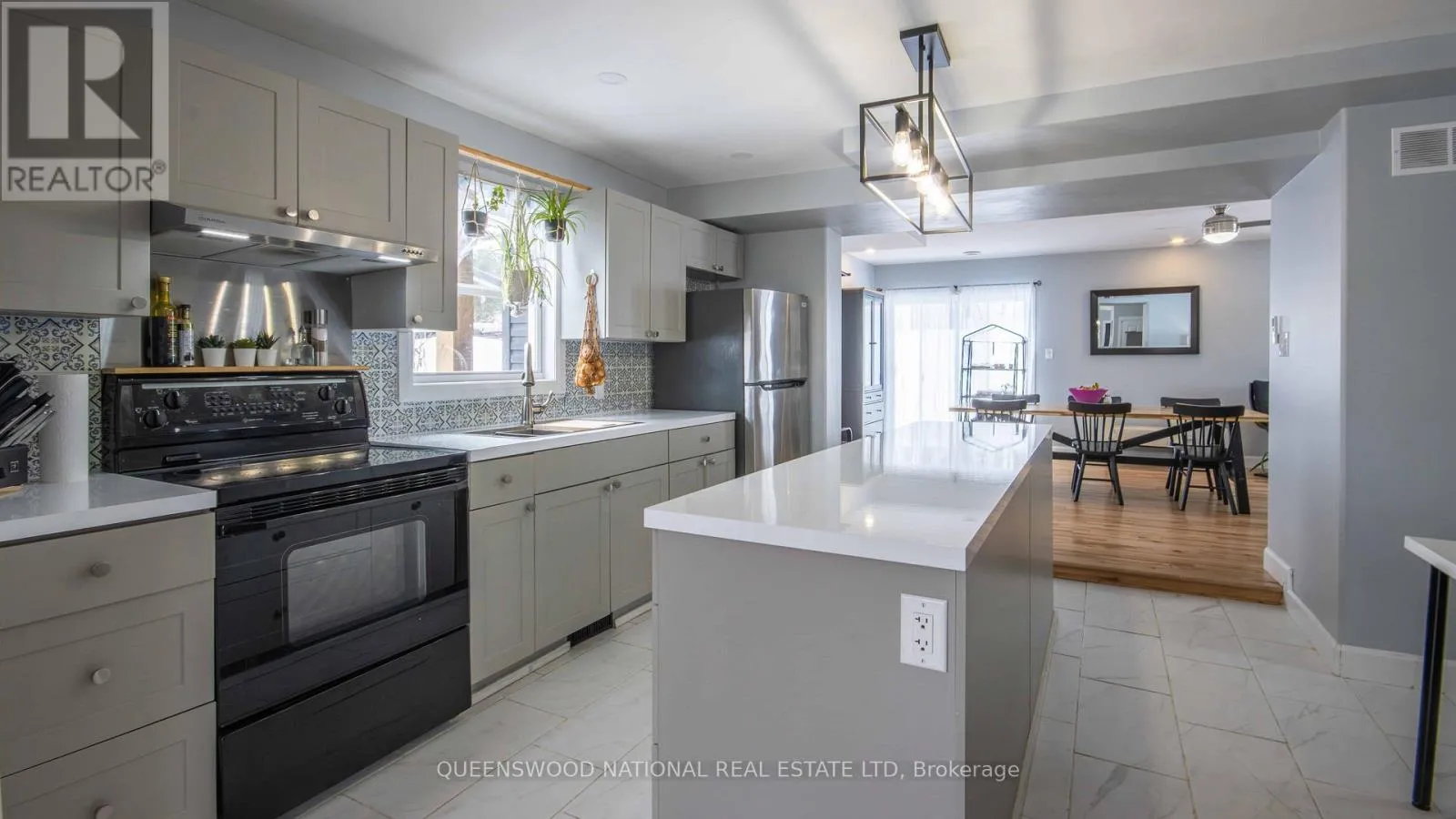 Cross Streets: John and Inglis Street. ** Directions: John Street to Inglis Street or Opeongo Line to Conway Street to Inglis. Welcome to your nearly-new sanctuary in the heart of Barry's Bay, where modern elegance meets the tranquility of nature. This meticulously fully renovated home offers the pristine feel of a new build, boasting two separate living spaces on the main floor separated by a chef-inspired kitchen-a layout ideal for large family gatherings. This culinary heart features a large kitchen island, expansive quartz countertops, and oversized ceramic tiles, while high-end hardwood and premium laminate flooring flow throughout the remainder of the home. Sliding doors lead from the main living area to a private retreat that backs onto a lush, tree-lined greenspace, all while being just steps away from the local hospital, library, boutique shopping, and dining. Designed for effortless living, the main floor also includes a convenient laundry room, a substantial walk-in storage closet, and a stunning oak staircase leading to the upper level.The upper level is thoughtfully designed for a growing family with four bedrooms in total, including three practical bedrooms and an expansive master suite that serves as a true showstopper. This primary retreat offers dramatic vaulted ceilings, a large walk-in closet, and a four-piece dream ensuite complete with double sinks. A versatile bonus nook on the upper level provides the perfect spot for a home office or quiet reading corner, adding to the home's functional layout. With three stylish bathrooms in total and the comfort of a high-efficiency forced-air propane furnace, every inch of this home has been optimized for quality and convenience. This is a rare opportunity to own a sophisticated, move-in-ready home that perfectly balances small-town charm with contemporary luxury. Furnace, roof, water heater, electrical and plumbing all newer 2022 (id:27476)