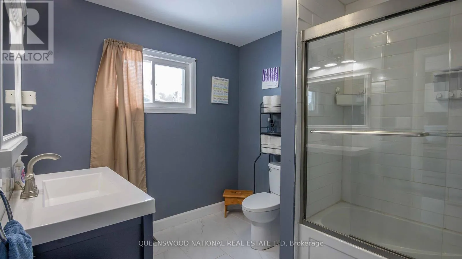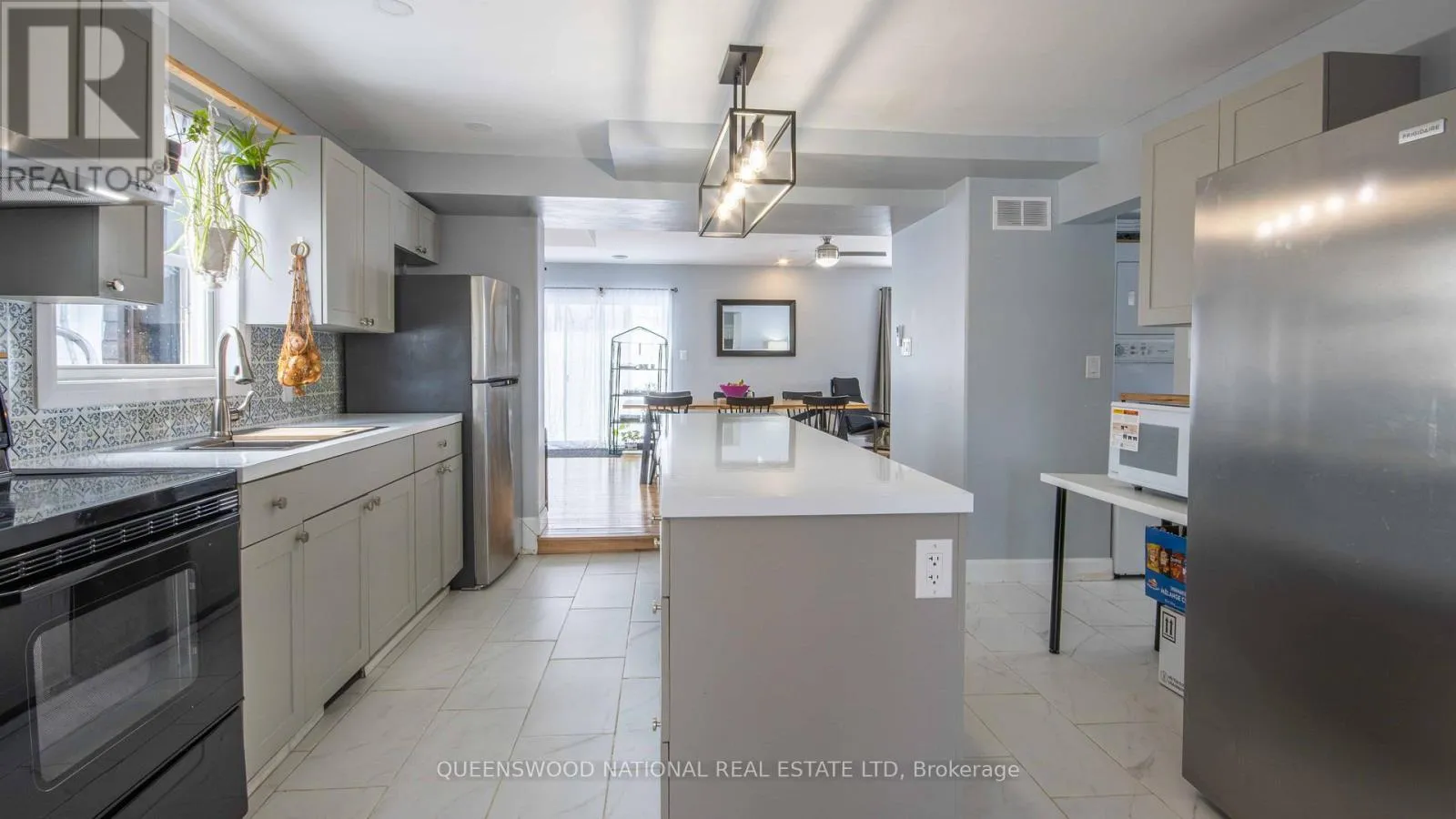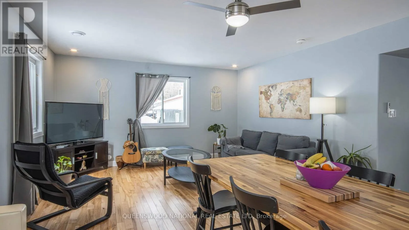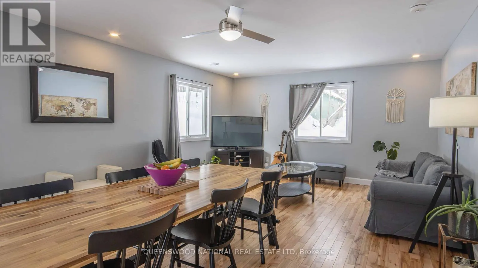 Cross Streets: John and Inglis Street. ** Directions: John Street to Inglis Street or Opeongo Line to Conway Street to Inglis. Welcome to your nearly-new sanctuary in the heart of Barry's Bay, where modern elegance meets the tranquility of nature. This meticulously fully renovated home offers the pristine feel of a new build, boasting two separate living spaces on the main floor separated by a chef-inspired kitchen-a layout ideal for large family gatherings. This culinary heart features a large kitchen island, expansive quartz countertops, and oversized ceramic tiles, while high-end hardwood and premium laminate flooring flow throughout the remainder of the home. Sliding doors lead from the main living area to a private retreat that backs onto a lush, tree-lined greenspace, all while being just steps away from the local hospital, library, boutique shopping, and dining. Designed for effortless living, the main floor also includes a convenient laundry room, a substantial walk-in storage closet, and a stunning oak staircase leading to the upper level.The upper level is thoughtfully designed for a growing family with four bedrooms in total, including three practical bedrooms and an expansive master suite that serves as a true showstopper. This primary retreat offers dramatic vaulted ceilings, a large walk-in closet, and a four-piece dream ensuite complete with double sinks. A versatile bonus nook on the upper level provides the perfect spot for a home office or quiet reading corner, adding to the home's functional layout. With three stylish bathrooms in total and the comfort of a high-efficiency forced-air propane furnace, every inch of this home has been optimized for quality and convenience. This is a rare opportunity to own a sophisticated, move-in-ready home that perfectly balances small-town charm with contemporary luxury. Furnace, roof, water heater, electrical and plumbing all newer 2022 (id:27476)