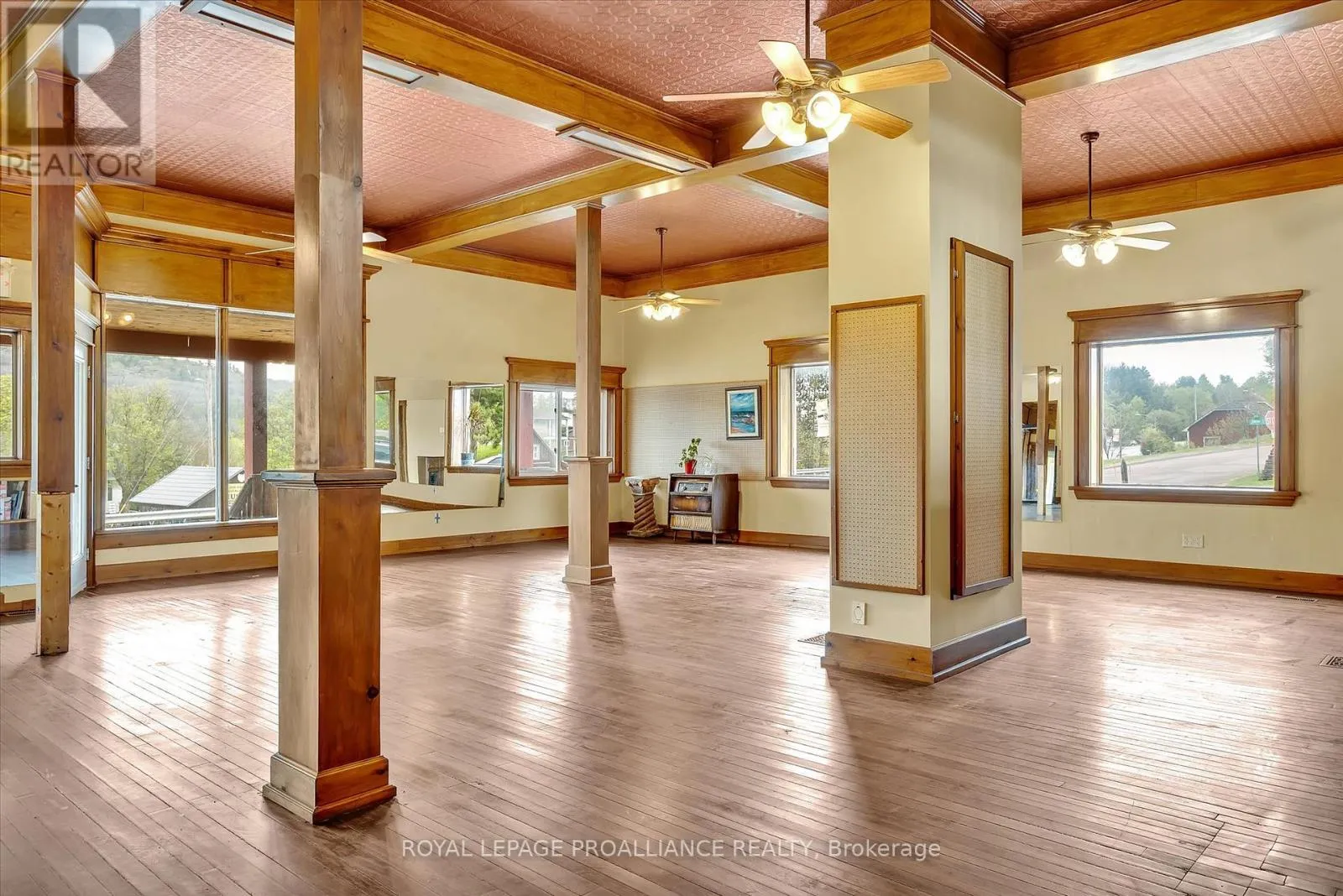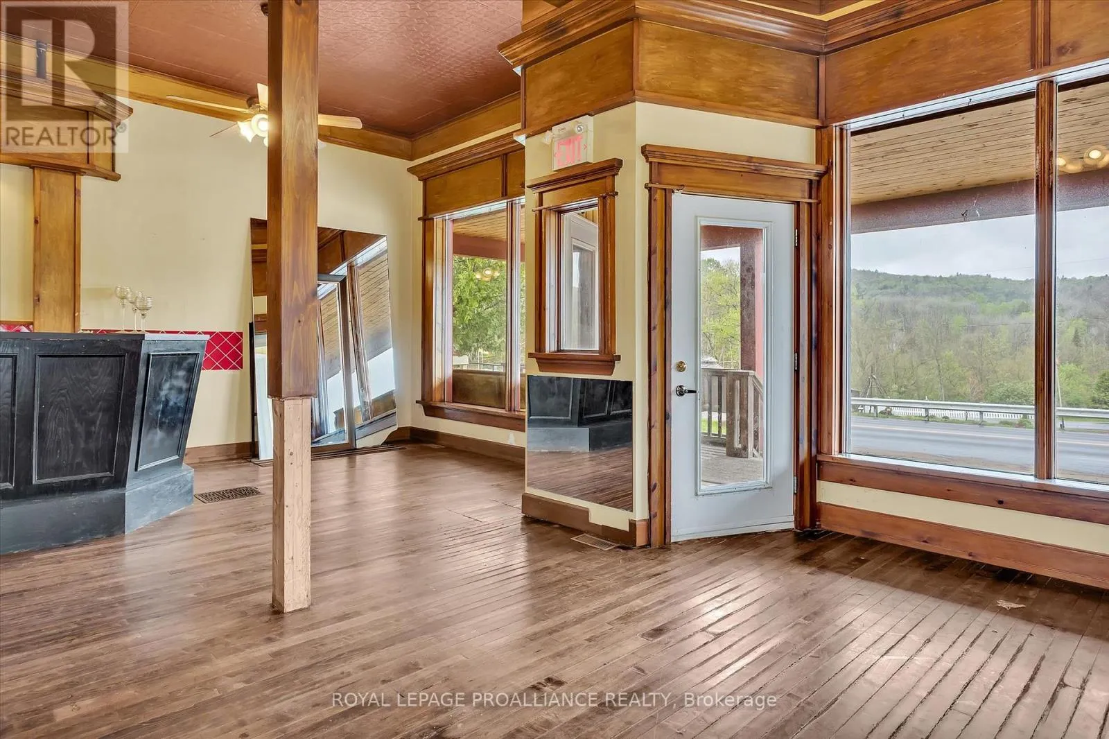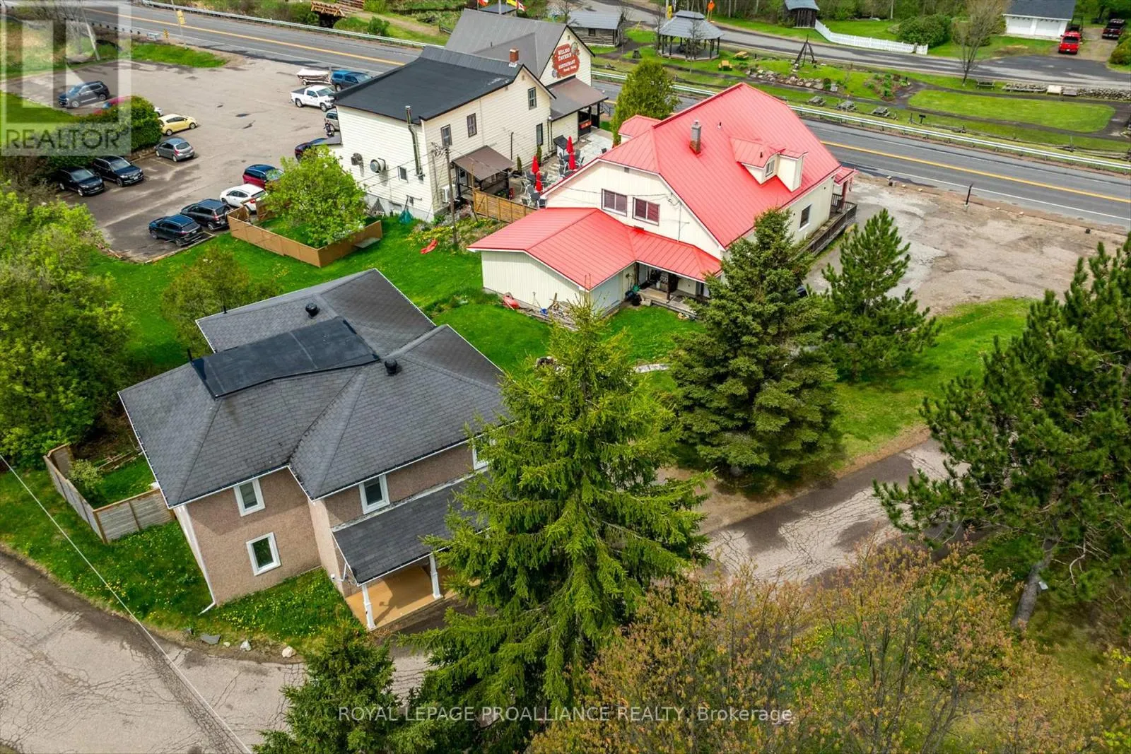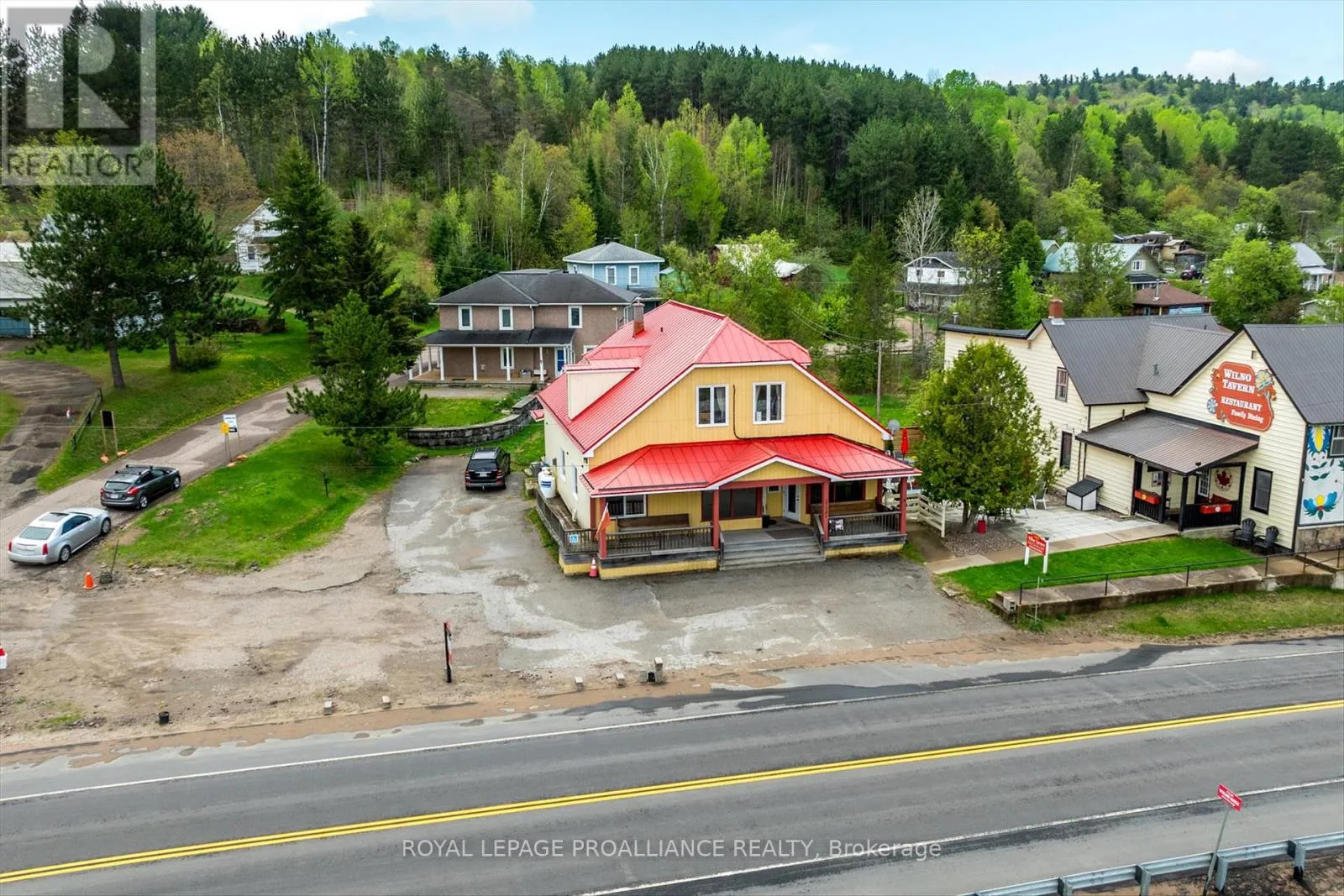 Highway 60 & Burchat Incredible Turnkey Opportunity on Highway 60 in Wilno, Ontario. Welcome to a rare and exceptional offering in the heart of Wilno - two turnkey buildings on a high-visibility stretch of Highway 60, both included in the price! Whether you're an owner/operator ready to launch your dream business or a savvy entrepreneur looking for a versatile investment, this property delivers unmatched potential. Building One - Commercial Storefront + Apartment. This stunning highway-facing commercial space features soaring ceilings, gorgeous wooden beams and posts, and expansive front windows that flood the space with natural light. With beautiful hardwood floors, a walk-in refrigerator, and a heated, insulated garage, it's perfectly set up for retail, food service, or a studio. A 400 sq ft loft overlooks the main floor, offering flexible space for office use or additional display. Above the commercial unit is a bright and inviting one-bedroom apartment, ideal for live-work convenience or rental income. Building Two - Spacious Country Home - Tucked privately behind the storefront is a charming and meticulously finished 4-bedroom, 3-bathroom home with over 2,100 sq ft of living space. Highlights include a custom kitchen with stainless steel appliances and an island, hardwood flooring, propane fireplace, main floor laundry, and on-demand hot water heater. The primary suite features a luxurious 4-piece ensuite, and the wrap-around porch provides the perfect space to relax and enjoy the peaceful country setting. A Rare Find in Cottage Country. This unique property offers endless possibilities, operate your business up front while enjoying the comfort of a beautiful home in the back, or rent both spaces for solid income potential. Don't miss your chance to own this one-of-a-kind package in a thriving, high-traffic location. Book your private showing today and unlock the potential of this exceptional Wilno property! (id:27476)
