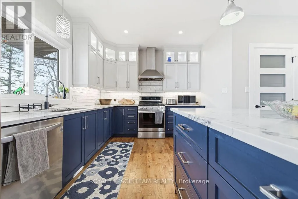 Cross Streets: Muskrat Lake Road. ** Directions: From Barry's Bay take highway 62 south toward Combermere. Property on the right. Welcome to the kind of waterfront property that rarely comes to market-where a custom-built home meets one of the most coveted shorelines on Kamaniskeg Lake. Set on a southwest-facing lot just south of Barry's Bay, this 2021 custom build by Quality Homes captures all-day sun, breathtaking sunsets, and a true resort-style setting that feels like a private escape from the moment you arrive. What truly sets this property apart is the exceptional sugar sand beach with a gradual, family-friendly entry-a rare and highly sought-after feature on Kamaniskeg Lake! Whether you're swimming, launching a kayak, or watching the sun dip below the water, this shoreline delivers the kind of lifestyle buyers are searching for but seldom find. The home itself offers a refined, thoughtfully designed one level interior with 3 bedrooms and 2 bathrooms, including a main floor primary suite complete with walk-in closet and private ensuite. A dream custom kitchen with lake views while you cook on the gas stove, gleaming countertops and refined cabinets are chef's kiss. Clean lines, natural light, and a warm, tasteful aesthetic create a space that is both modern and inviting-perfect for year-round living or a luxurious waterfront retreat. Outdoors, the property continues to impress with a lake side 52 foot deck with access to living room and primary bedroom, a detached garage and attached carport offering covered parking for two vehicles, along with ample additional space for guests and recreational equipment. Located on one of the most desirable lakes in the Ottawa Valley, this property offers easy access to Barry's Bay, 90+ km of boating, and a lifestyle defined by water, privacy, and natural beauty. Imagine leaving your home, and spending the day exploring, dining at a boat up beach bar, discovering hidden coves, and fishing in waters known for exceptional sportfish. If you've been waiting for the perfect combination of custom construction, premium waterfront, and a true beach-this is it. (id:27476)