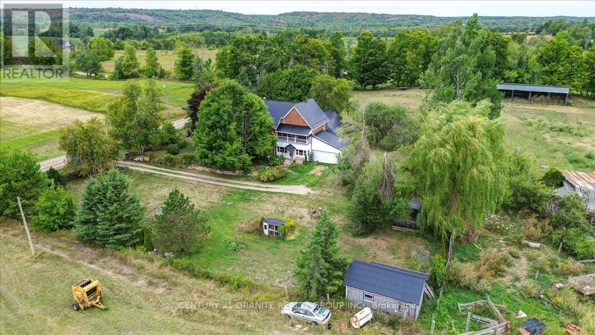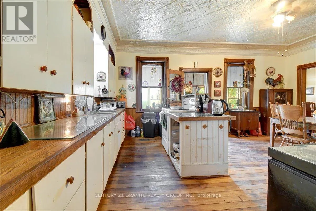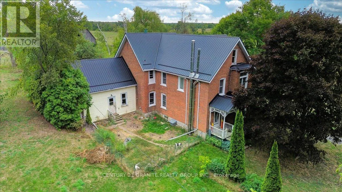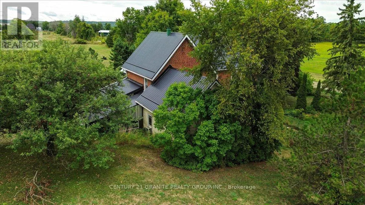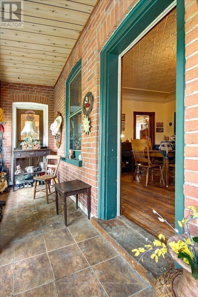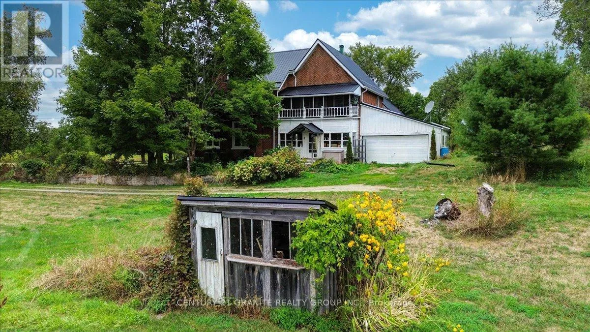 Cross Streets: Deloro Rd/Union Rd. ** Directions: Hwy #62 to Deloro Rd to Union Rd, follow to #232. Sign on property. This timeless and stately 1905 farmhouse offers a rare blend of architectural beauty, rural charm, and modern functionality. Nestled on just under one acre with 215 feet of frontage on a quiet, year-round municipally maintained country road, this 4 bedroom, 2 bathroom, two-storey residence spans over 2,300 square feet of finished living space, ideal for a growing family or those seeking character, privacy, and space. A tree-lined drive, mature gardens, outbuildings, and expansive farmland views enhance the classic farmhouse setting. The double brick faade, metal roof, and attached garage establish a commanding presence while evoking the heritage charm of rural Ontario. Inside, you will find soaring 12-foot ceilings, original hardwood floors, wide wood trim, and leaded stained-glass transom windows, all contributing to the homes rich period detailing. The large eat-in country kitchen features a tin ceiling, wainscoting, and a massive walk-in pantry. A formal dining room and living room with pocket door provide an elegant setting for entertaining and family connection. A grand curved staircase leads to four upper-level bedrooms and a walk-through den or office, the master bedroom leads to an expansive screened in porch with original wood balustrade. A spacious main floor family room offers a comfortable retreat for casual living. Upgrades include a propane furnace, 200-amp hydro service, some newer windows, soffit, fascia, and eavestrough improvements. The full-height original stone basement easily accommodates the homes mechanical systems, with room to spare. The attached garage and outbuildings provide excellent utility for storage, hobbies, or workshop use. Surrounded by open farmland yet within an hour of urban amenities, this beautifully preserved farmhouse offers enduring value, heritage appeal, and peaceful country living. (id:27476)