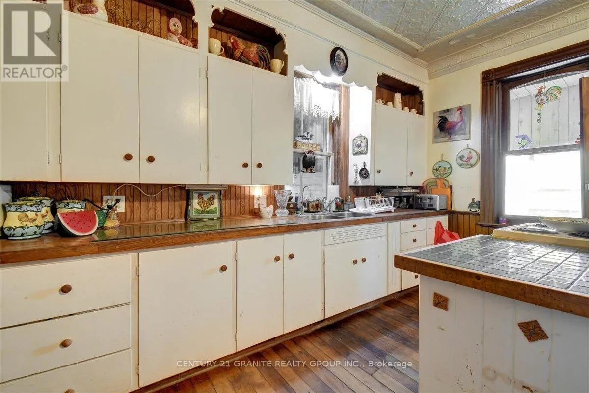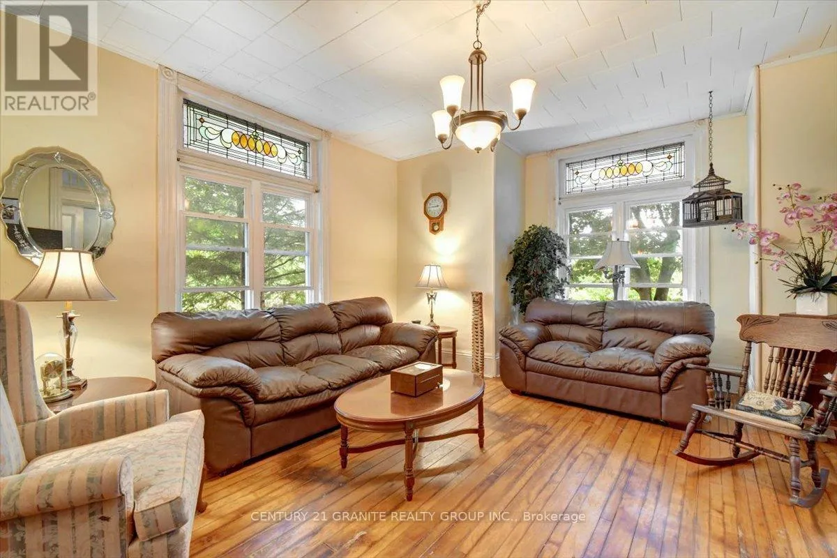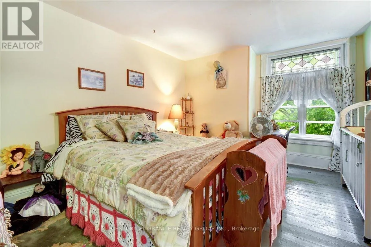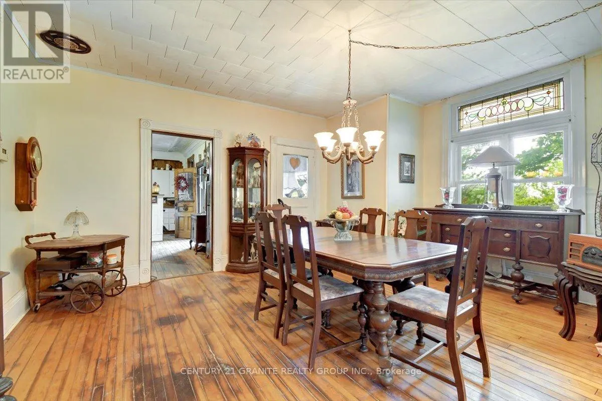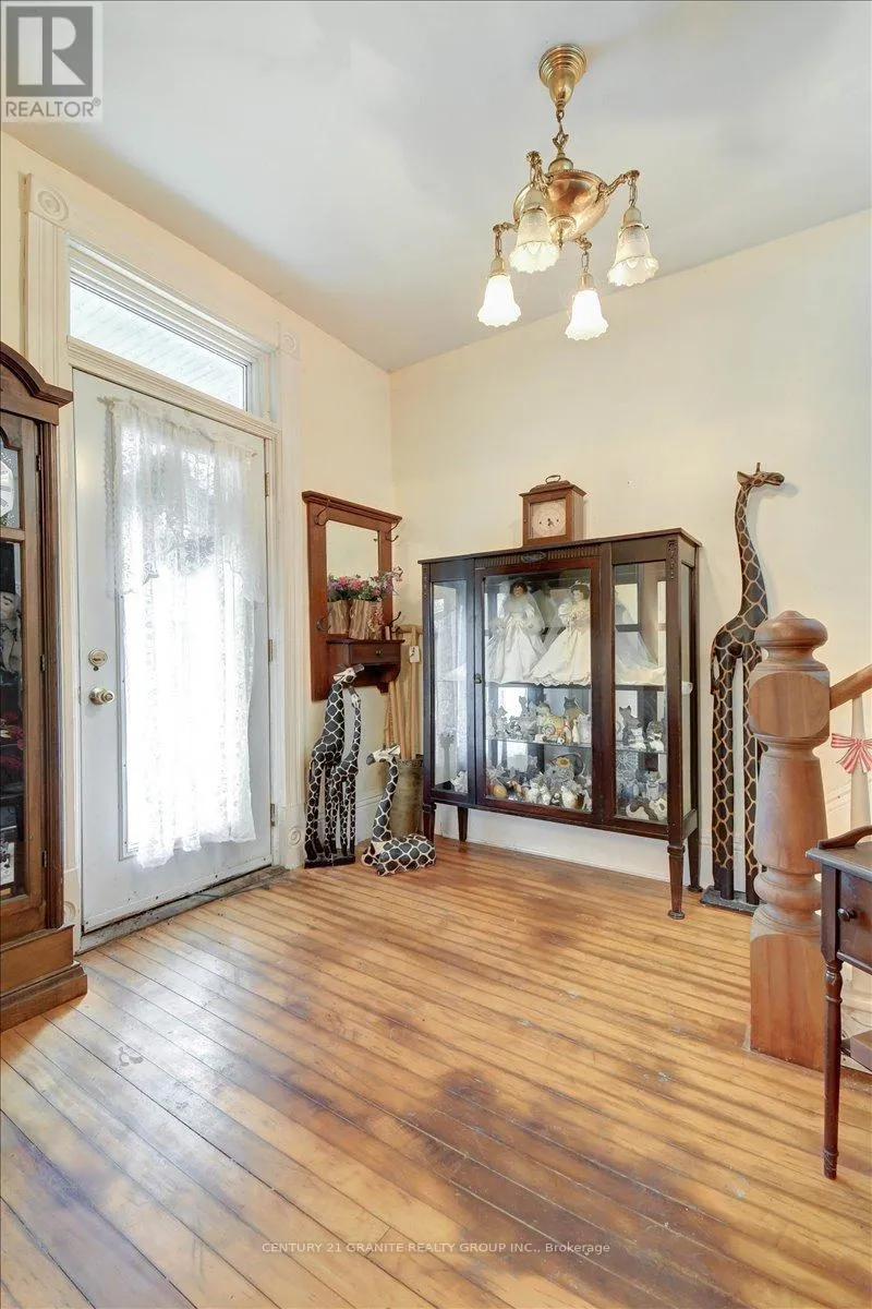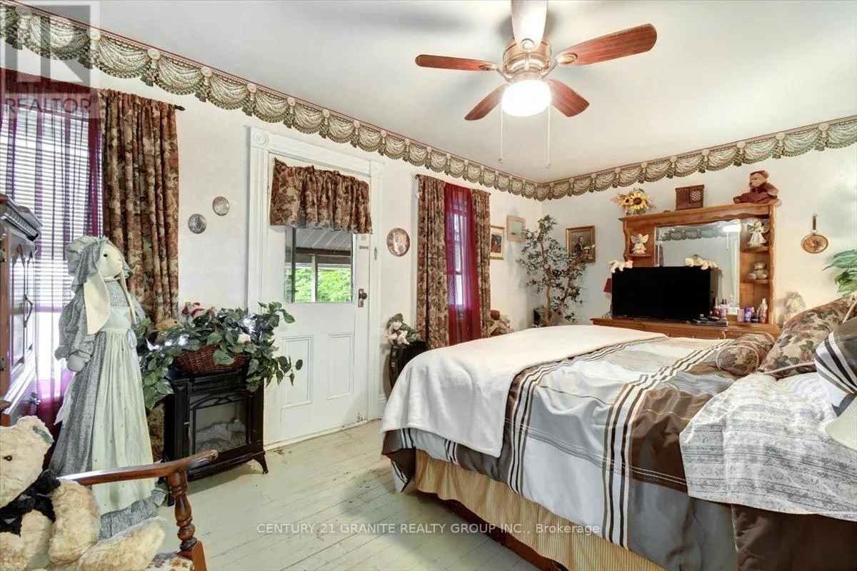 Cross Streets: Deloro Rd/Union Rd. ** Directions: Hwy #62 to Deloro Rd to Union Rd, follow to #232. Sign on property. This timeless and stately 1905 farmhouse offers a rare blend of architectural beauty, rural charm, and modern functionality. Nestled on just under one acre with 215 feet of frontage on a quiet, year-round municipally maintained country road, this 4 bedroom, 2 bathroom, two-storey residence spans over 2,300 square feet of finished living space, ideal for a growing family or those seeking character, privacy, and space. A tree-lined drive, mature gardens, outbuildings, and expansive farmland views enhance the classic farmhouse setting. The double brick faade, metal roof, and attached garage establish a commanding presence while evoking the heritage charm of rural Ontario. Inside, you will find soaring 12-foot ceilings, original hardwood floors, wide wood trim, and leaded stained-glass transom windows, all contributing to the homes rich period detailing. The large eat-in country kitchen features a tin ceiling, wainscoting, and a massive walk-in pantry. A formal dining room and living room with pocket door provide an elegant setting for entertaining and family connection. A grand curved staircase leads to four upper-level bedrooms and a walk-through den or office, the master bedroom leads to an expansive screened in porch with original wood balustrade. A spacious main floor family room offers a comfortable retreat for casual living. Upgrades include a propane furnace, 200-amp hydro service, some newer windows, soffit, fascia, and eavestrough improvements. The full-height original stone basement easily accommodates the homes mechanical systems, with room to spare. The attached garage and outbuildings provide excellent utility for storage, hobbies, or workshop use. Surrounded by open farmland yet within an hour of urban amenities, this beautifully preserved farmhouse offers enduring value, heritage appeal, and peaceful country living. (id:27476)