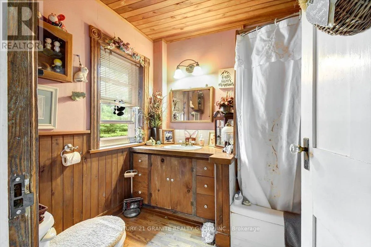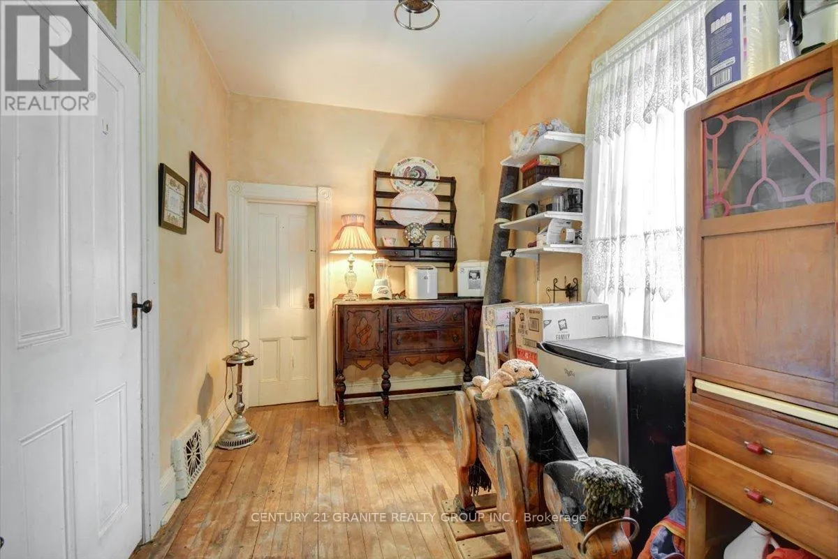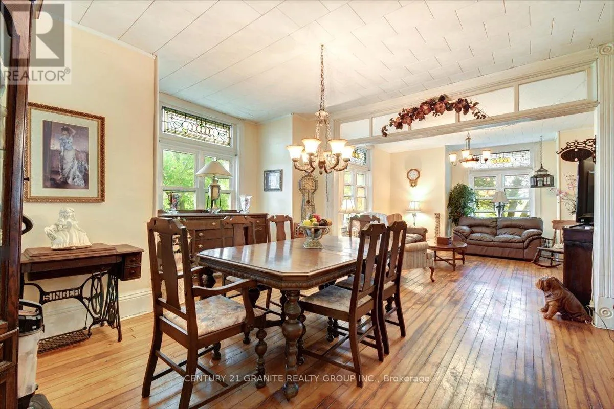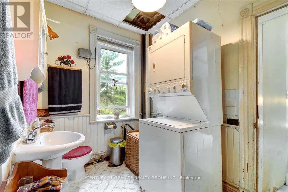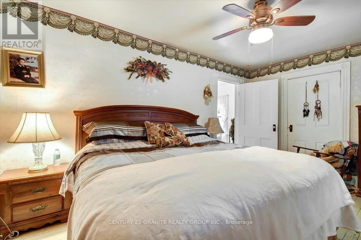 Cross Streets: Deloro Rd/Union Rd. ** Directions: Hwy #62 to Deloro Rd to Union Rd, follow to #232. Sign on property. This timeless and stately 1905 farmhouse offers a rare blend of architectural beauty, rural charm, and modern functionality. Nestled on just under one acre with 215 feet of frontage on a quiet, year-round municipally maintained country road, this 4 bedroom, 2 bathroom, two-storey residence spans over 2,300 square feet of finished living space, ideal for a growing family or those seeking character, privacy, and space. A tree-lined drive, mature gardens, outbuildings, and expansive farmland views enhance the classic farmhouse setting. The double brick faade, metal roof, and attached garage establish a commanding presence while evoking the heritage charm of rural Ontario. Inside, you will find soaring 12-foot ceilings, original hardwood floors, wide wood trim, and leaded stained-glass transom windows, all contributing to the homes rich period detailing. The large eat-in country kitchen features a tin ceiling, wainscoting, and a massive walk-in pantry. A formal dining room and living room with pocket door provide an elegant setting for entertaining and family connection. A grand curved staircase leads to four upper-level bedrooms and a walk-through den or office, the master bedroom leads to an expansive screened in porch with original wood balustrade. A spacious main floor family room offers a comfortable retreat for casual living. Upgrades include a propane furnace, 200-amp hydro service, some newer windows, soffit, fascia, and eavestrough improvements. The full-height original stone basement easily accommodates the homes mechanical systems, with room to spare. The attached garage and outbuildings provide excellent utility for storage, hobbies, or workshop use. Surrounded by open farmland yet within an hour of urban amenities, this beautifully preserved farmhouse offers enduring value, heritage appeal, and peaceful country living. (id:27476)