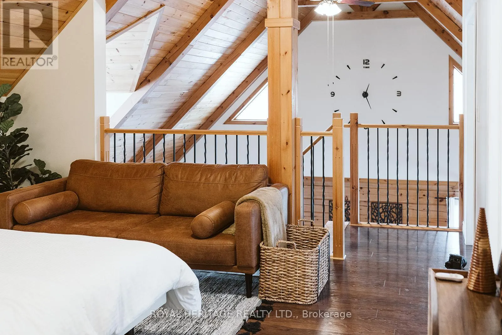 Cooper Rd/Queensborough From the moment you turn onto the tree-lined canopy laneway, you'll know you've arrived somewhere truly special. This quality-built "Discovery Dream" modern log home offers a warm and inviting open-concept layout, highlighted by soaring cathedral ceilings and a charming loft that overlooks the main living space. A striking red steel roof and a wrap-around covered porch complete the classic yet timeless exterior.Set on nearly 16 acres of storybook countryside, the property is a nature lover's dream. Wander the private trails that wind through mixed bush, enjoy the peaceful stream, and take in the beauty of open fields that offer endless possibilities. Create your own maple syrup. Additional features include a screened gazebo for relaxing summer evenings, a workshop, raised garden beds, and ample space to explore, create, and unwind.This is more than a home-it's a lifestyle, offering privacy, charm, and endless opportunities to live your country dream. (id:27476)