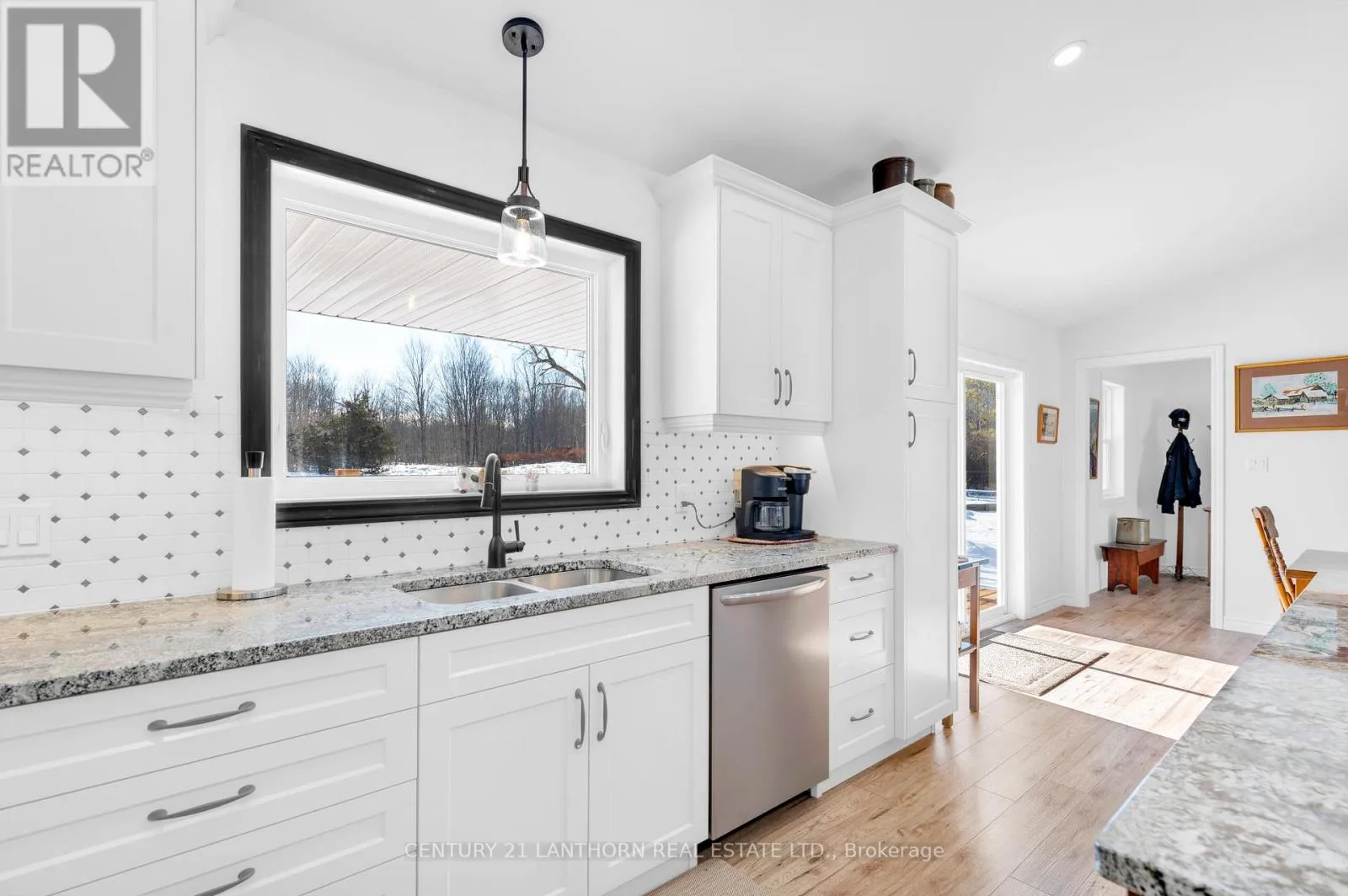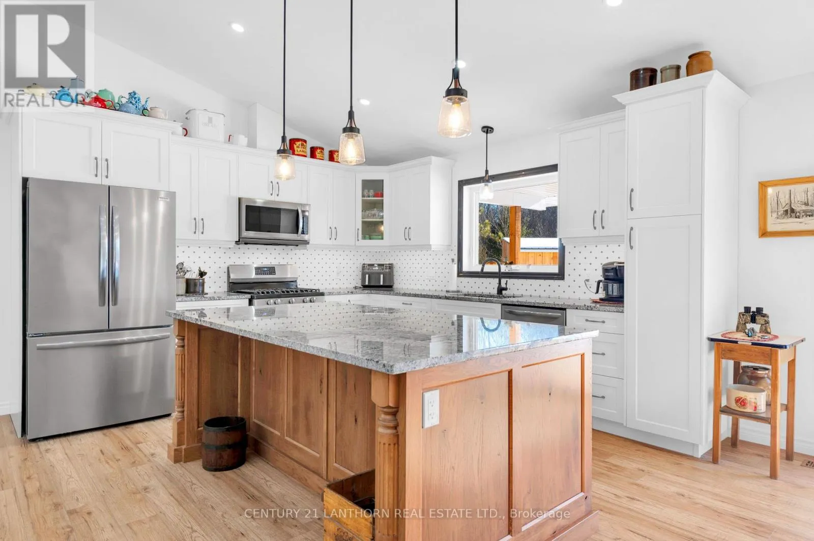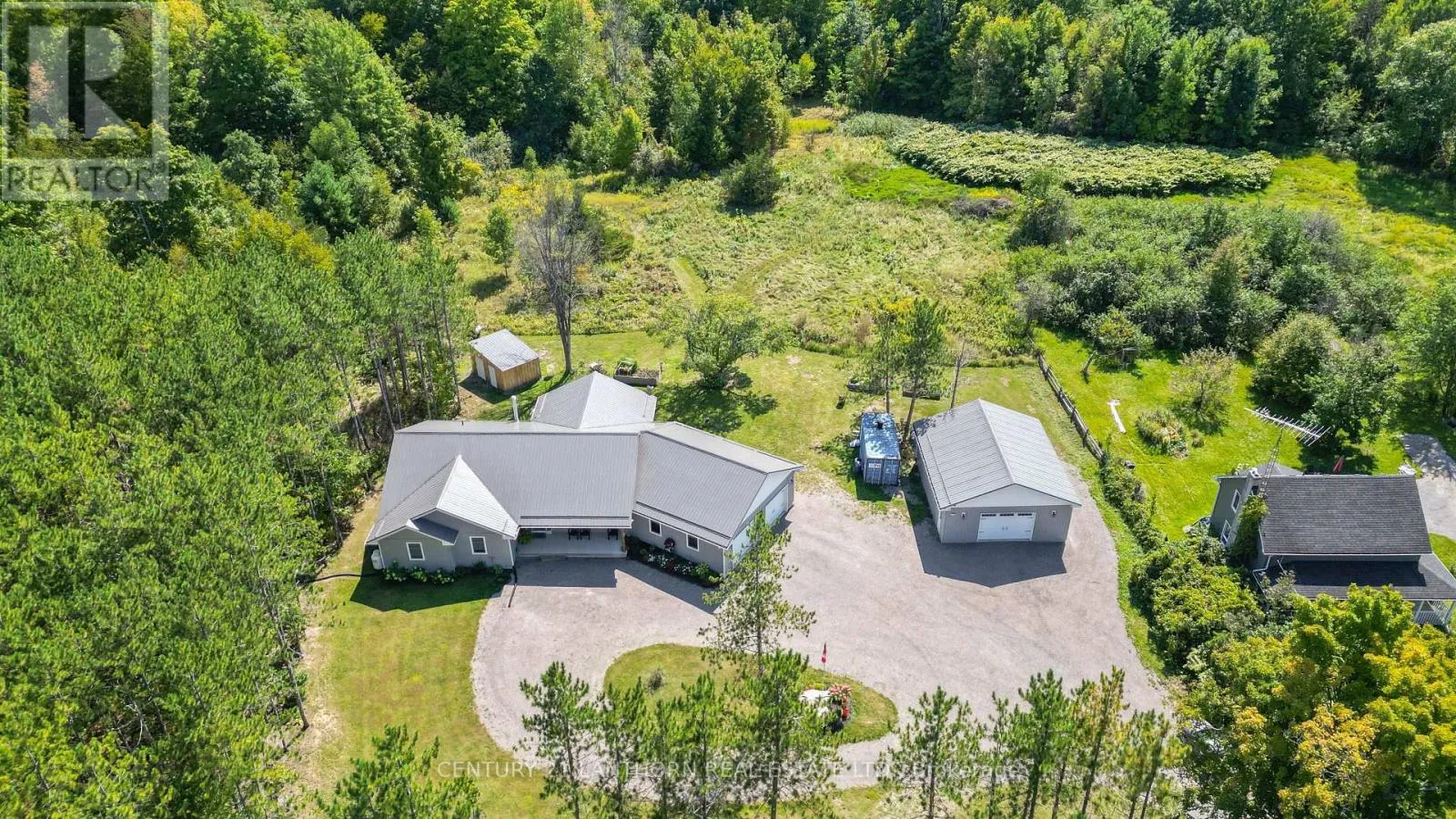 Hwy 62 to Seymour Street West to Old Marmora Road Welcome to 533 Old Marmora Rd! This impeccable 3-year-old country bungalow is nestled among the pines on a beautifully manicured 1 acre lot, just 2 minutes outside Madoc on a paved road. This property truly checks all the boxes and will not disappoint. Offering over 1,900 sq ft on the main level, the home features a bright and spacious open-concept kitchen, dining, and living area with abundant cabinetry, a custom hickory center island with seating and storage, granite countertops throughout, and plenty of natural light. Patio doors lead to a covered back deck complete with a propane BBQ hookup, wiring for a hot tub, and peaceful views of the natural landscape and local wildlife, the perfect spot to relax or entertain. The primary bedroom includes a walk-in closet and a 4-piece ensuite, while two additional guest bedrooms share another 4-piece bathroom. The main floor also offers convenient laundry and a mudroom that leads to the attached 33' x 30' insulated double garage, which includes a separate entrance to the basement. The full unfinished basement is ready for your finishing touches, with plenty of space for a separate apartment or in-law suite, plus a cold room and rough-in for an additional bathroom. Enjoy low-maintenance living with a durable steel roof, vinyl siding, and an efficient heat pump to keep utility costs down. Need extra space for your toys or hobbies? The 28' x 32' detached garage is insulated, heated with a new propane furnace, and makes an ideal workshop, man cave, or storage space, with plenty of additional parking available. Outdoor enthusiasts will love being close to Moira Lake, the Heritage Trail System, and family amenities like the local skatepark and splash pad, and close to the local golf course. Conveniently located between Toronto and Ottawa, and just 30 minutes to Belleville and Hwy 401.This property has so much to offer - don't wait to make it yours! (id:27476)