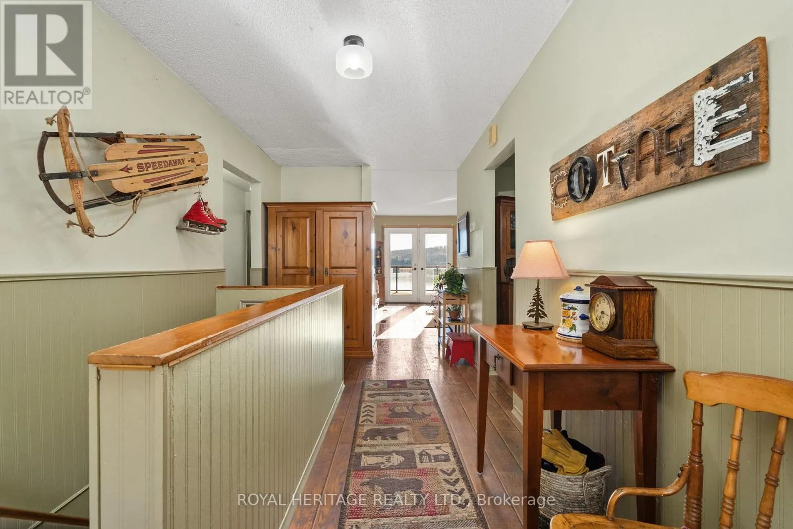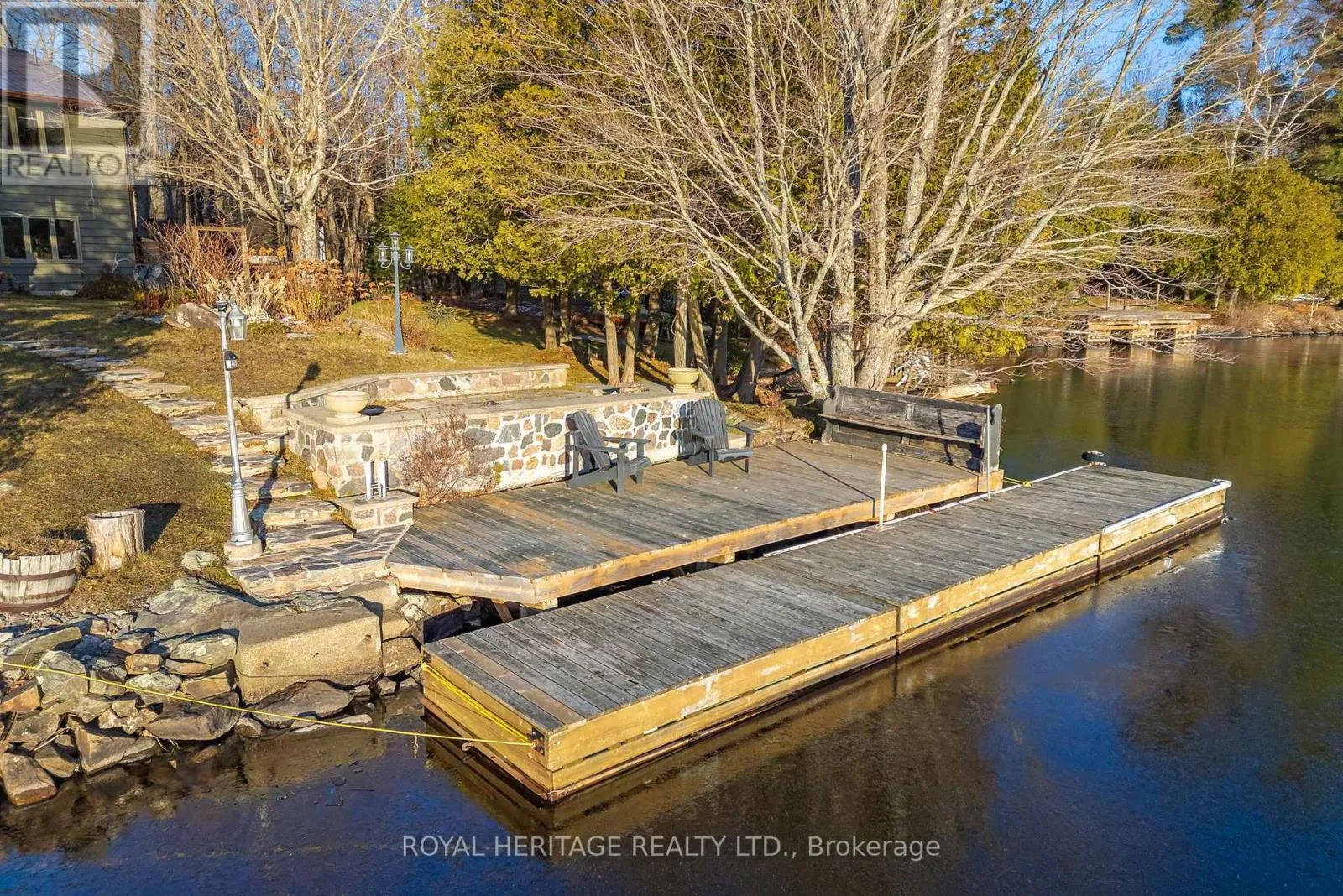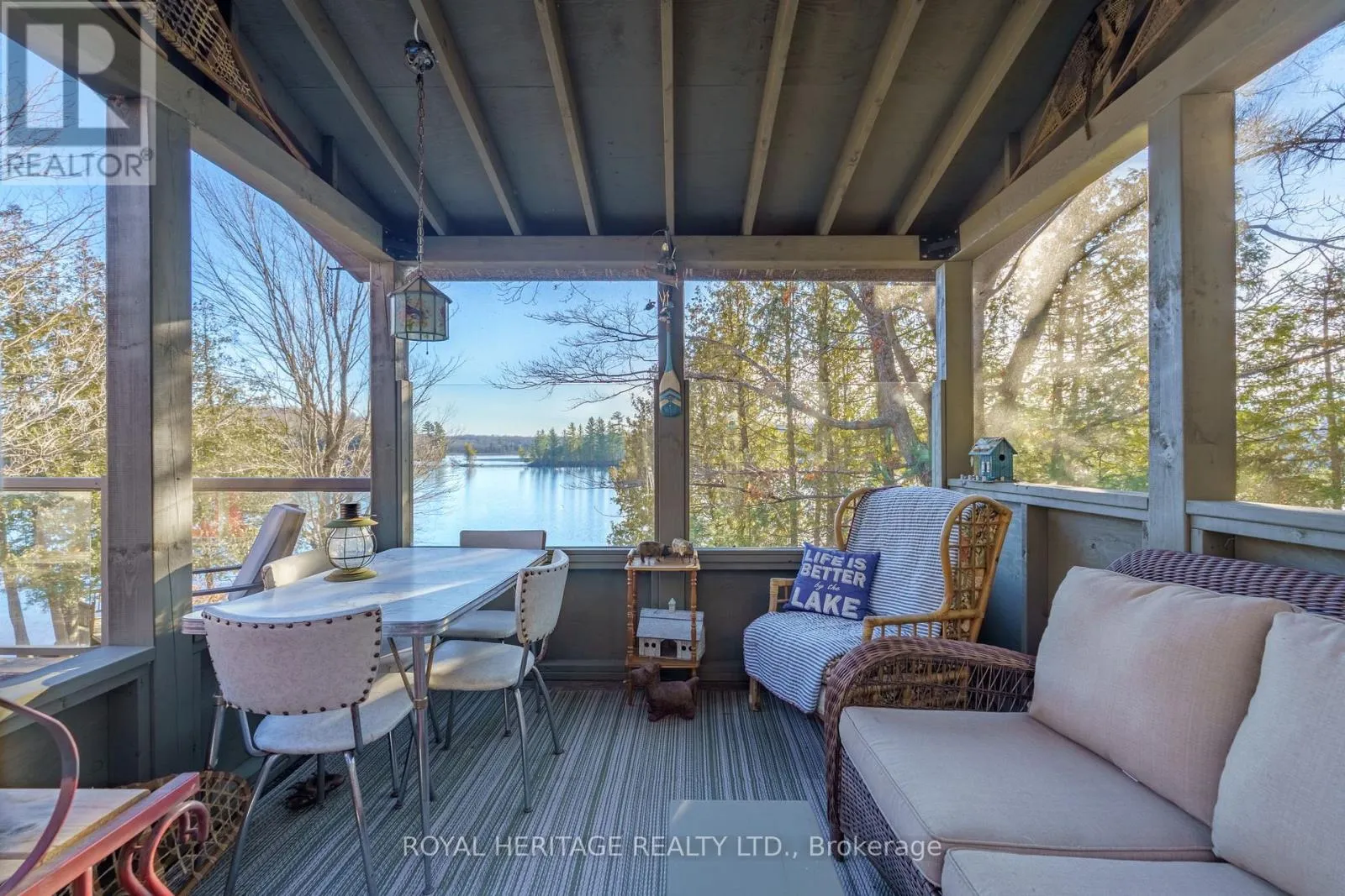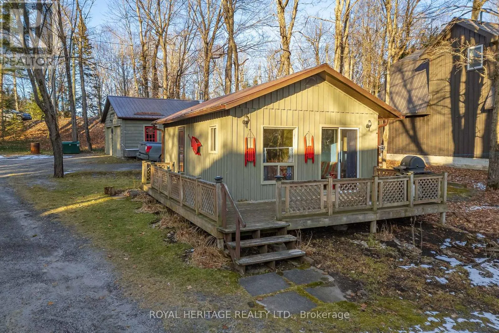 Cross Streets: HWY 520 & HOLDEN. ** Directions: HWY 520 TO HOLDEN. Welcome to your new waterfront home on stunning Lake Cecebe. Nestled among century-old Maple trees, this spacious 2+1 bedroom bungalow offers breathtaking lake views. A perfect blend of country charm and modern comfort. Step inside to an expansive, updated kitchen with centre island and an eat-in area ideal for large gatherings. The bright and inviting living room features picture windows that frame the serene waterscape. Walk-out to a large deck with glass panels, and just off to the side enjoy a beautiful screened-in Muskoka room-perfect for cozy fall evenings. The main level features two generous bedrooms, including a primary 3P ensuite. The 4P bath boasts a luxurious soaker tub. Main-floor laundry, gleaming hardwood floors, Impressive brick & stone Woodstove and incredible natural light complete this level. The lower level offers excellent in-law potential with a spacious 3rd bedroom, large rec room, oversized utility room, abundant storage, a convenient 3P bath, and a walkout to cobblestone area of the driveway. Just steps away is a full secondary auxiliary dwelling with its own kitchen, heat source, hydro, insulation, deck, two bedrooms, and 2P bath-ideal for overflow guests, rental income, or multi-generational living. An oversized & drywalled two-car garage adds even more value. All three buildings feature durable industrial metal roofs with a lifetime warranty. Head down to the waterfront where you'll find two dock options: a sandy, gradual-entry beach perfect for children, and a deeper dock for boating and kayaking. Lake Cecebe offers 40 miles of pristine boating and excellent fishing, offering endless waterway adventures. Year-round municipal-road & ideal for snowmobiling, ice fishing, ATVing, and more. With breathtaking southwest views, incredible convenience, ample storage, and exceptional recreational possibilities, this coveted location provides the perfect setting for relaxation, entertainment, and family fun. This Compound wont last! (id:27476)