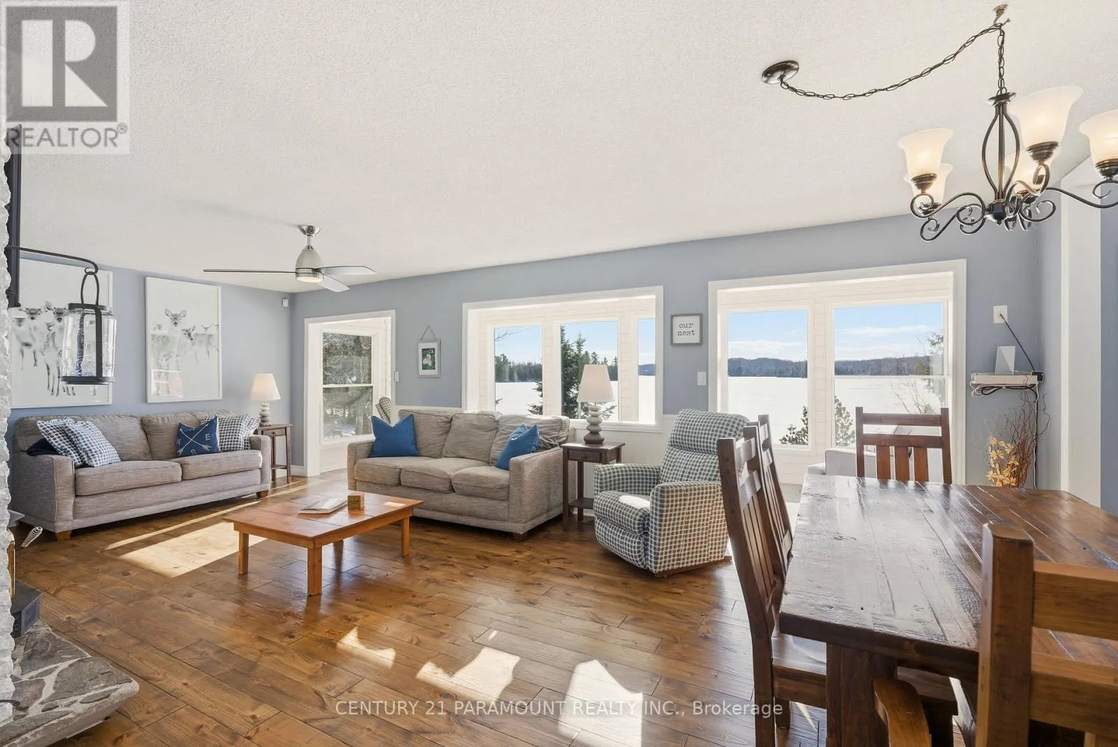 Cross Streets: Hwy 520 & Chapman Dr East. ** Directions: Hwy #520 to Chapman Drive East. This magnificent Lake Cecebe waterfront estate embodies refined cottage luxury, offering a rare blend of craftsmanship, natural beauty, and year-round comfort.Set on 1.2 secluded acres with a private driveway on a municipally maintained road, this distinguished 5-bedroom,4-bathroom residence welcomes you with sweeping south-facing vistas that fill the open-concept interior with radiant light.Expansive windows frame shimmering lake views in every season, while hardwood floors flow throughout,enriching the home with warmth, elegance, and timeless ease.At the heart of the property lies a beautifully appointed Cutters Edge kitchen crafted with premium finishes, generous prep surfaces, and seamless connection to the dining and living areas.Whether hosting intimate gatherings or elegant lakefront dinners, this kitchen elevates every moment.The thoughtfully designed 2019 addition enhances the home's scale, versatility, and comfort, offering flexible space for guests, extended family, or multi-generational living while maintaining the cottage's airy, serene character.Outside, the exceptional waterfront truly sets this property apart.Bask in all-day sun along the south-facing shoreline, where Lake Cecebe stretches out in panoramic blues and golden evening reflections.A coveted 32' x 36' dry boathouse sits at the water's edge, offering protected storage, historical charm, and potential for personalized use.A spacious 24' x 24' detached garage adds convenience, utility, and estate-level functionality.Whether imagined as a luxury retreat or a refined four-season residence, this Lake Cecebe sanctuary delivers tranquility, privacy, and natural splendor.From peaceful winter mornings overlooking a snow-kissed shoreline to long summer days spent on the dock, every moment here feels effortlessly special-an exceptional opportunity on one of the region's most cherished lakes. (id:27476)