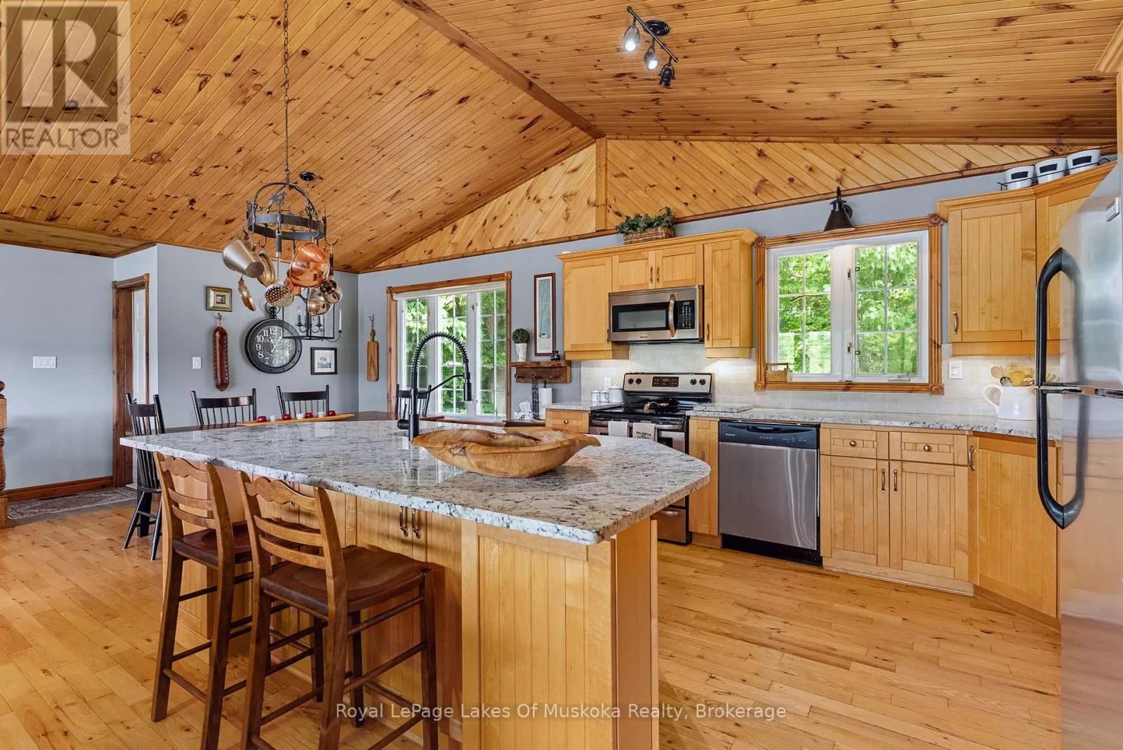 Cross Streets: Highway 520/Wurm Road. ** Directions: Highway 520 to Wurm Road to S.O.P. Welcome to your year round waterfront oasis on Lake Cecebe, one of five lakes connected to become the premier lake chain in the area featuring over 40 miles of boating and lake enjoyment! This bright, open concept bungalow with warm pine accents features south western lake views and expansive decking and sitting areas on the lake side with a forest across the road adding to your private enjoyment of the property. Renovated since purchase, this over 2200 sq. ft. home also features granite countertops, huge main bathroom with walk-in shower, and large dining room with lake views. Three bedrooms on the main floor with the primary having a walk out to the lakeside deck. Bright lower level features a family room with walk out to a covered sitting area and a WETT certified wood stove to cozy up to on chilly spring or fall mornings. Also located in the lower level is a huge additional bedroom complete with full bathroom and laundry facilities. Walk out of the home down the gently sloped lot to the sand-bottomed shoreline and extensive floating dock with plenty of room for everyone sit and enjoy the waterfront. Just a short drive outside the welcoming village of Burk's Falls and the highway, this home is close to all amenities to add convenience to your cottaging life. (id:27476)