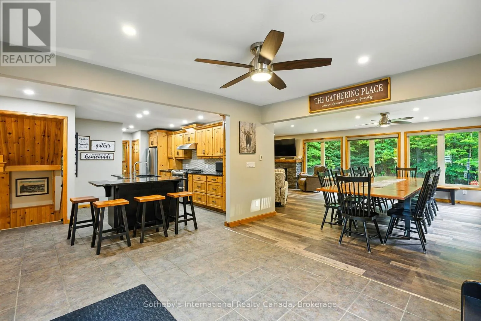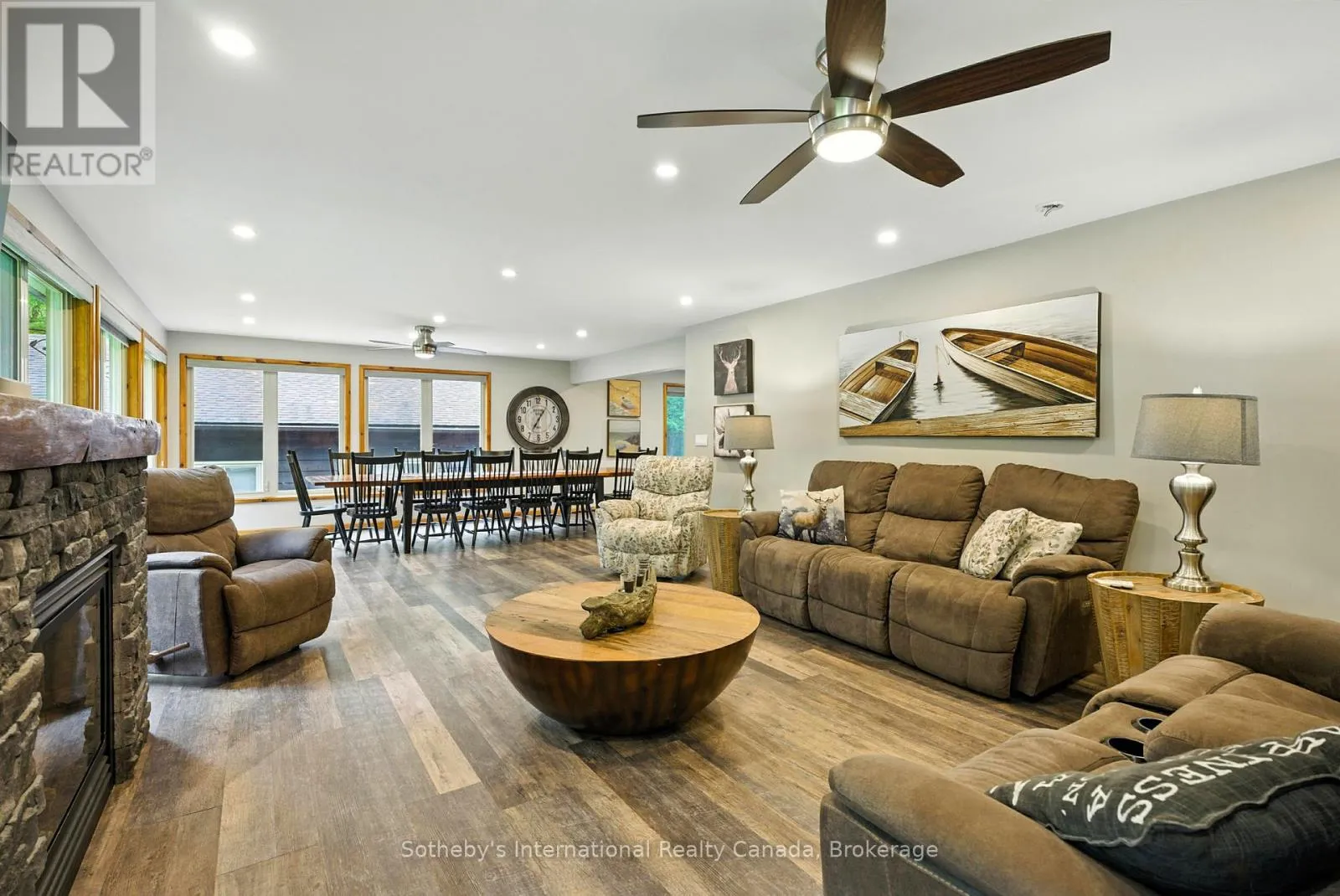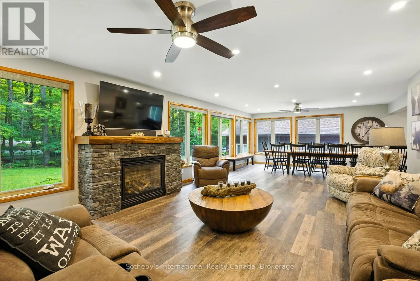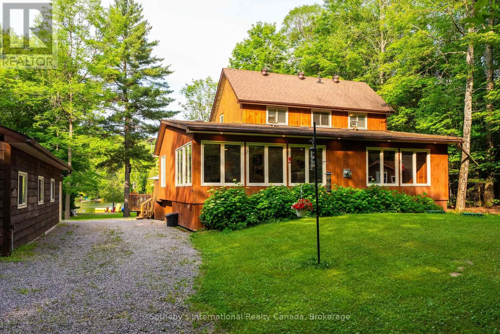Cross Streets: Nippissing Road & Highway 520 (Sparks Street). ** Directions: Rosskopf Road,Continue To The Dead End,775 Second Last Driveway On Right. Escape from the hustle and bustle of everyday life & picture a place where time truly slows down. Welcome to this captivating cottage, resting on a 1+ acre lot ensuring utmost privacy, with 150'+ of waterfront shoreline along the pristine Lake Cecebe & the extensive Magnetawan Waterway.The cottage is also beautifully secluded on a year-round municipality maintained dead-end road offering ultimate quietness.This large family home or home-away-from-home features 4 bedrooms, 2 bathrooms, an open-concept living room with cozy propane fireplaces, & a spacious dining area. Add in the 3 bunkies and you have sleeping space for 16+ loved ones. The heart of the home is the Cutter's Edge custom kitchen, complete with stainless steel appliances & breakfast bar. Look forward to entertaining guests in the open-concept dining room or in one of your living rooms.The large outdoor patios both off the family room and at the waterfront, offer the perfect spots for sipping morning coffee or evening wine while breathing in the refreshing lake breeze. Host all your loved ones with ample sleeping capacity in the additional 3 custom designed bunkies, all intentionally placed in your level property for additional privacy, hosting large gatherings with ease. At night, you can sit back on your private dock or large stone firepit to catch breathtaking star-filled skies. For your toys, vehicles and projects, there's a spacious homeowners dream 4-car garage plus additional workshop space, providing ample storage & workspace. A dream for nature and sports enthusiasts, your waterfront boasts over 40 miles of navigable waterways on the Magnetawan River System with access to four lakes. At your doorstep - boating, fishing, golfing, horseback riding, snowmobiling/ATV trails, relaxing and more in a beautiful setting. Enjoy the 360 virtual tour and be sure to click on the video link for your expanded tour. Don't miss this opportunity to own a beautifully landscaped desired level property on Cecebe! (id:27476)