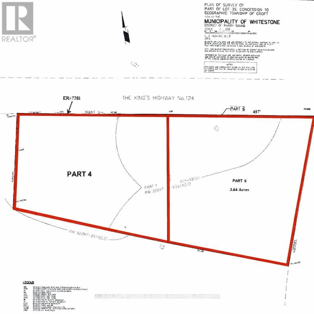 Cross Streets: Highway 124 to SOP. ** Directions: Highway 124, slight bend to SOP. A beautiful, 6 acres of privacy in Whitestone/Dunchurch, located off a year-round municipal road/Highway 124. With quick access to hop on the road to work, schools, shopping, community centre, nursing station, beach, boat launch and multiple lakes in the area. The 6 acres consist of two separate 3 acre lots with individual pins for even more building potential. Making this one large, private paradise property or even a family compound. 913 feet of road frontage. Entrance in, well treed and perched on a Hill to give a fabulous view. Just a short drive or a walk to the town of Dunchurch to go for a swim or keep your boat at the marina and save on waterfront property taxes. Purchase as 6 acres or individual 3 acre lots which are also listed. This is a great opportunity for you and your family to live, work and play in the cottage country dream and build it the way you dream it! Click on the media arrow for the video. (id:27476)