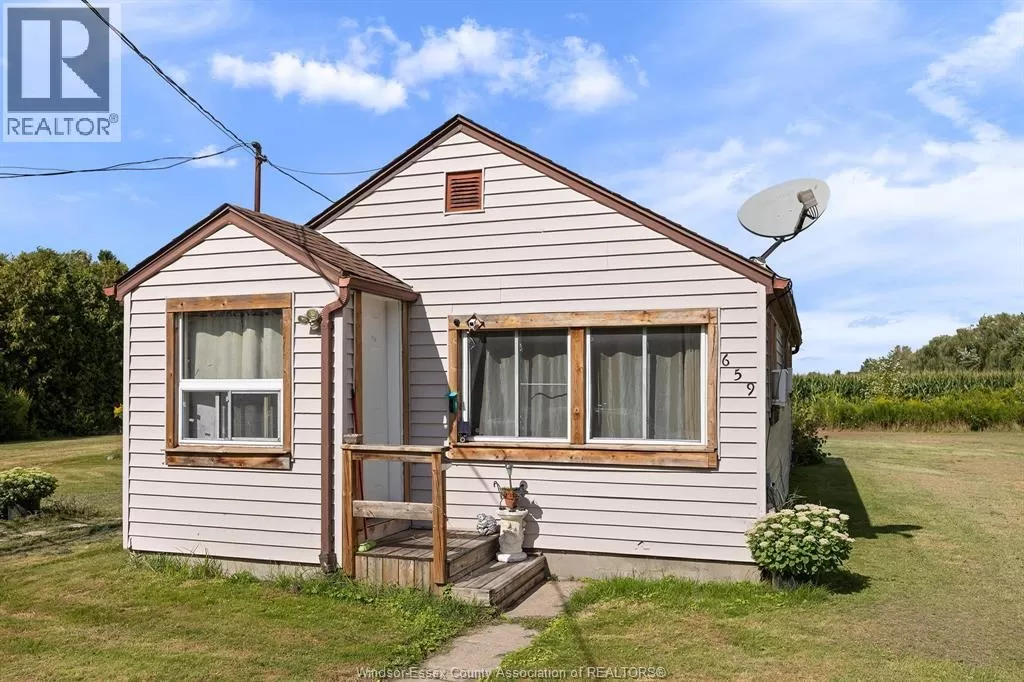 APPROX 2 MILES WEST OF ESSEX Welcome to 655 Talbot Rd or known as County Rd 34 - approximately 5.5 acres of farmland with a charming 2 bedroom, 1 bathroom home and farm zoning (R1-6 A), newer roof (2023), gas fireplace heat. This property offers space to grow, hobby farm potential, and country living just minutes from Essex and Highway 401. Ideal for buyers seeking a rural retreat, investment, on a blank canvas to create their dream property. Seller has the right to accept or reject any offer. Newer roof & furnace (2023) & Gas Fireplace. Can be acquired with 655 Talbot Rd (next door), MLS®25021749. (id:27476)