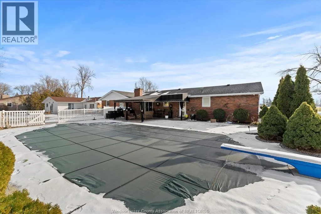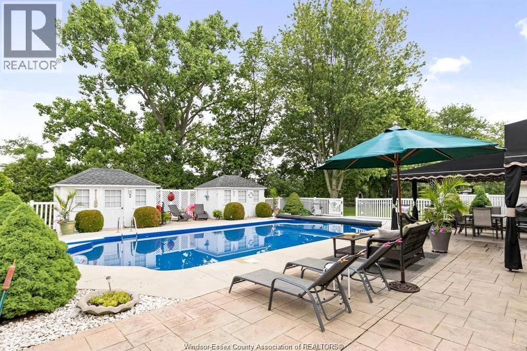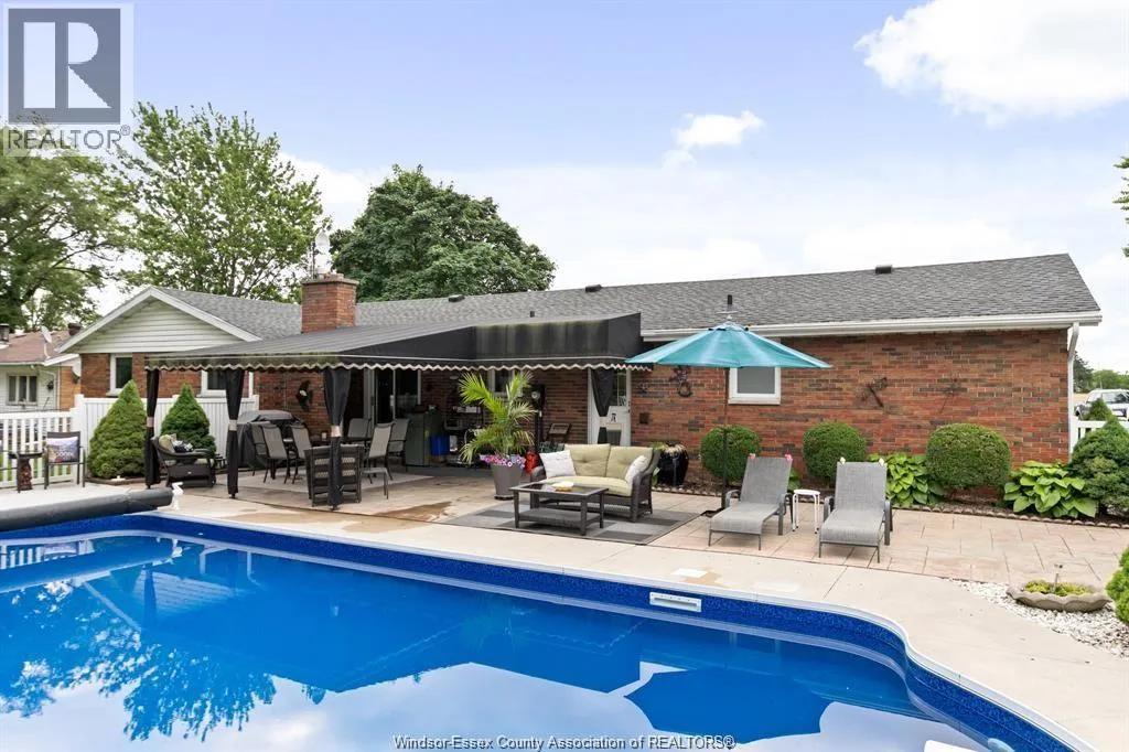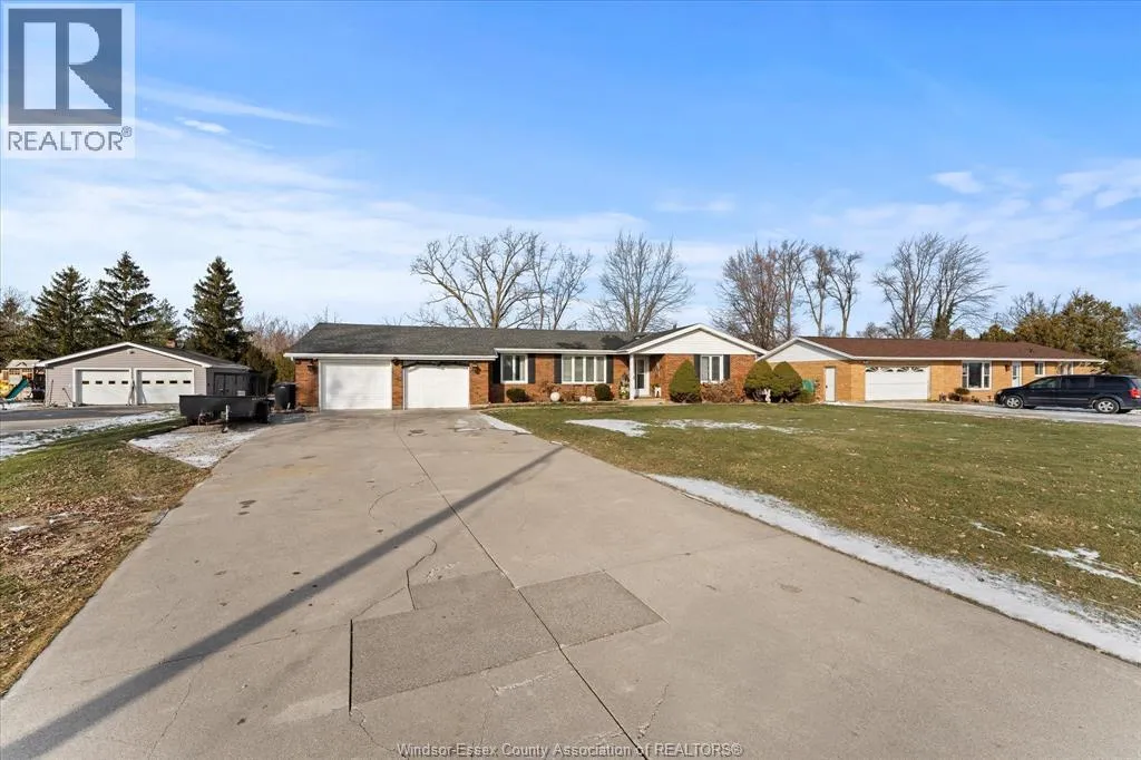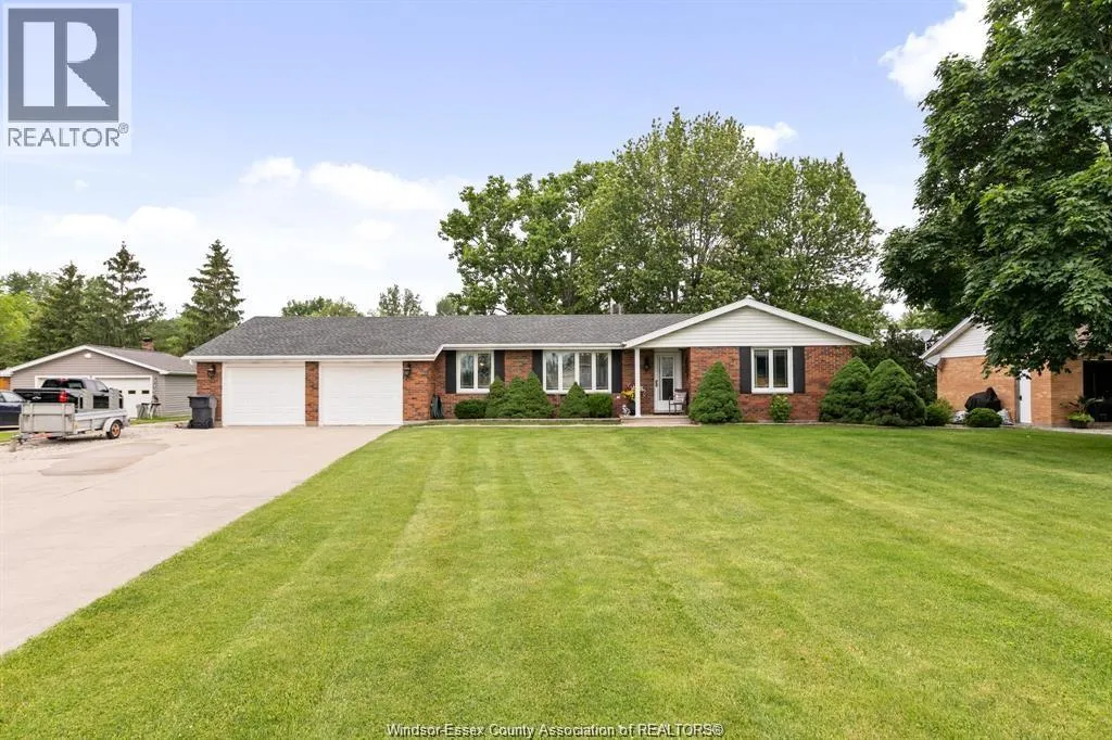 This Beautiful Brick to roof Lakeshore Ranch on mins from Highways 3 for Us and city Commuters, all on a huge 100 x 193 ft Country setting lot has 3 bedrooms and 2.1 baths, Master bedroom has ensuite bath with stand up shower, main bath has a jacuzzi tub and powder room off back mudroom by pool and patio, freshly painted thru out, kitchen with granite counters, breakfast bar overlooking sitting area with gas fireplace, overlooking beautiful covered patio area and large 20 x 40 heated inground pool with sand filter (2023) (New AI pool pump 2025) Energy efficient heater(2023) and updated liner with transferable warranty, with two pool house cabanas and surrounded by white aluminum fencing; full basement inspected and updated by advance basements, septic tank was emptied in May 2025; Furnace C/A (2017) 2.5 car garage with epoxy floor. Security cameras and all equipment included and back covered professionally installed awning, fenced in dog run at North side of home. (id:27476)