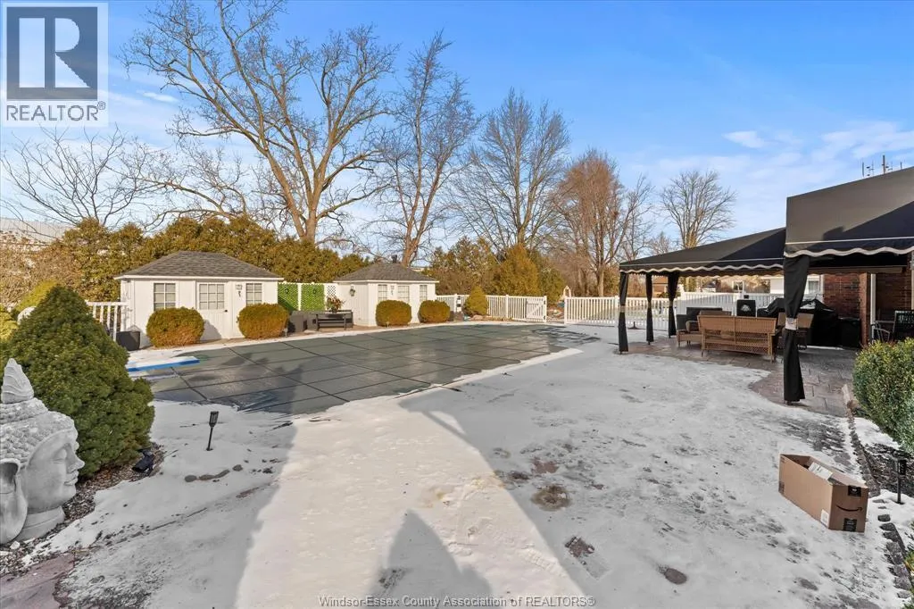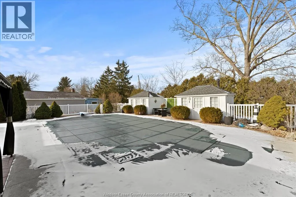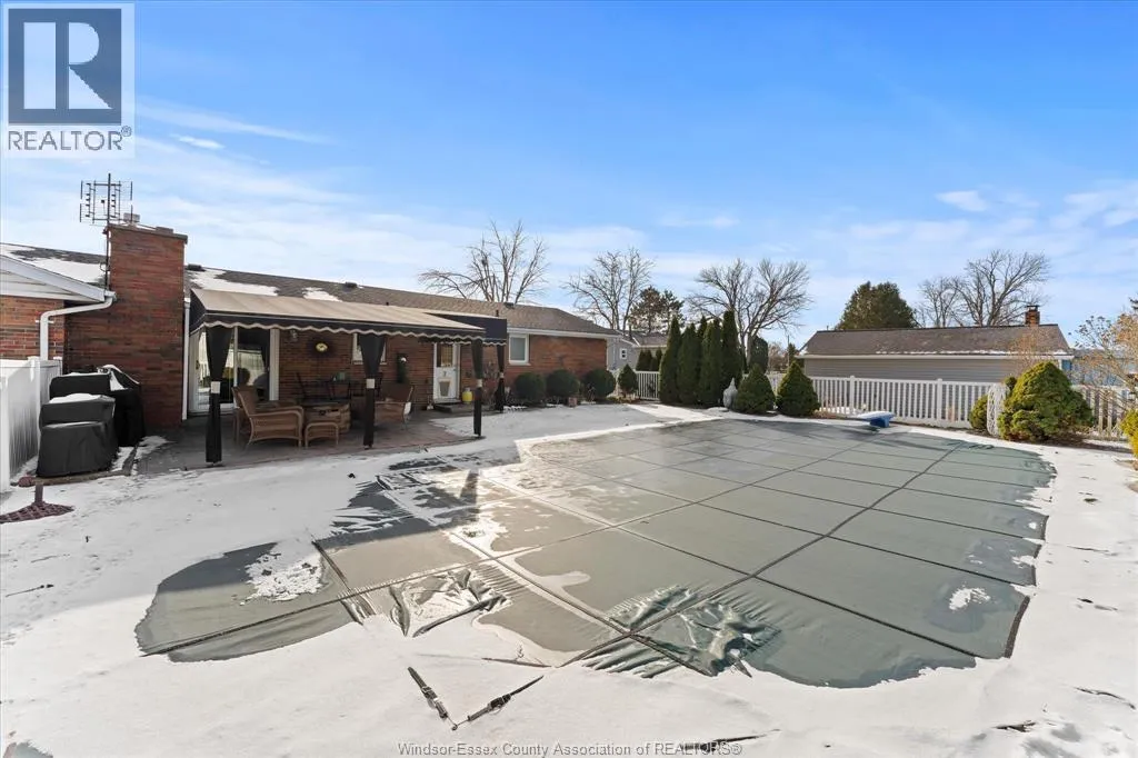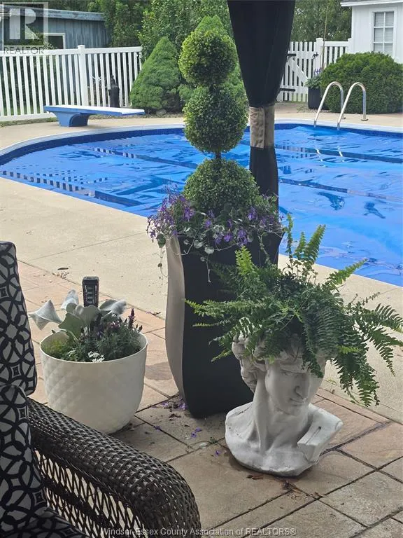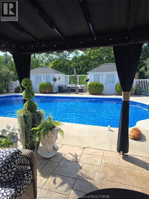 This Beautiful Brick to roof Lakeshore Ranch on mins from Highways 3 for Us and city Commuters, all on a huge 100 x 193 ft Country setting lot has 3 bedrooms and 2.1 baths, Master bedroom has ensuite bath with stand up shower, main bath has a jacuzzi tub and powder room off back mudroom by pool and patio, freshly painted thru out, kitchen with granite counters, breakfast bar overlooking sitting area with gas fireplace, overlooking beautiful covered patio area and large 20 x 40 heated inground pool with sand filter (2023) (New AI pool pump 2025) Energy efficient heater(2023) and updated liner with transferable warranty, with two pool house cabanas and surrounded by white aluminum fencing; full basement inspected and updated by advance basements, septic tank was emptied in May 2025; Furnace C/A (2017) 2.5 car garage with epoxy floor. Security cameras and all equipment included and back covered professionally installed awning, fenced in dog run at North side of home. (id:27476)
