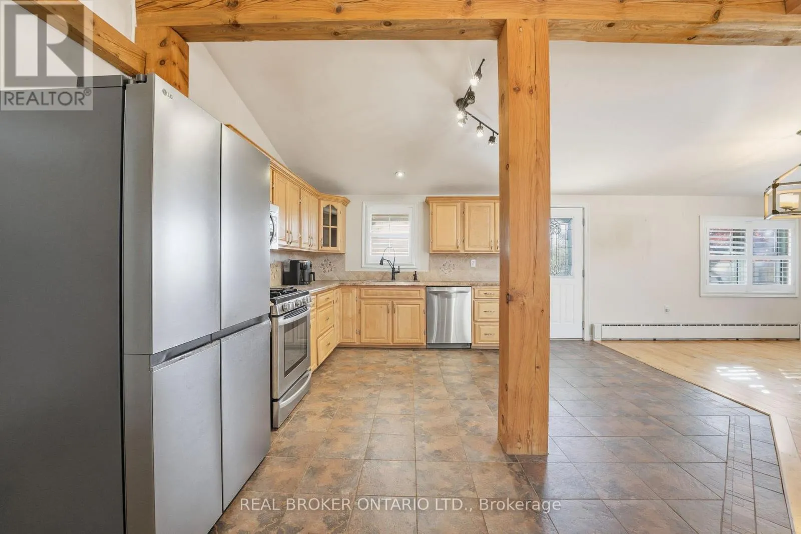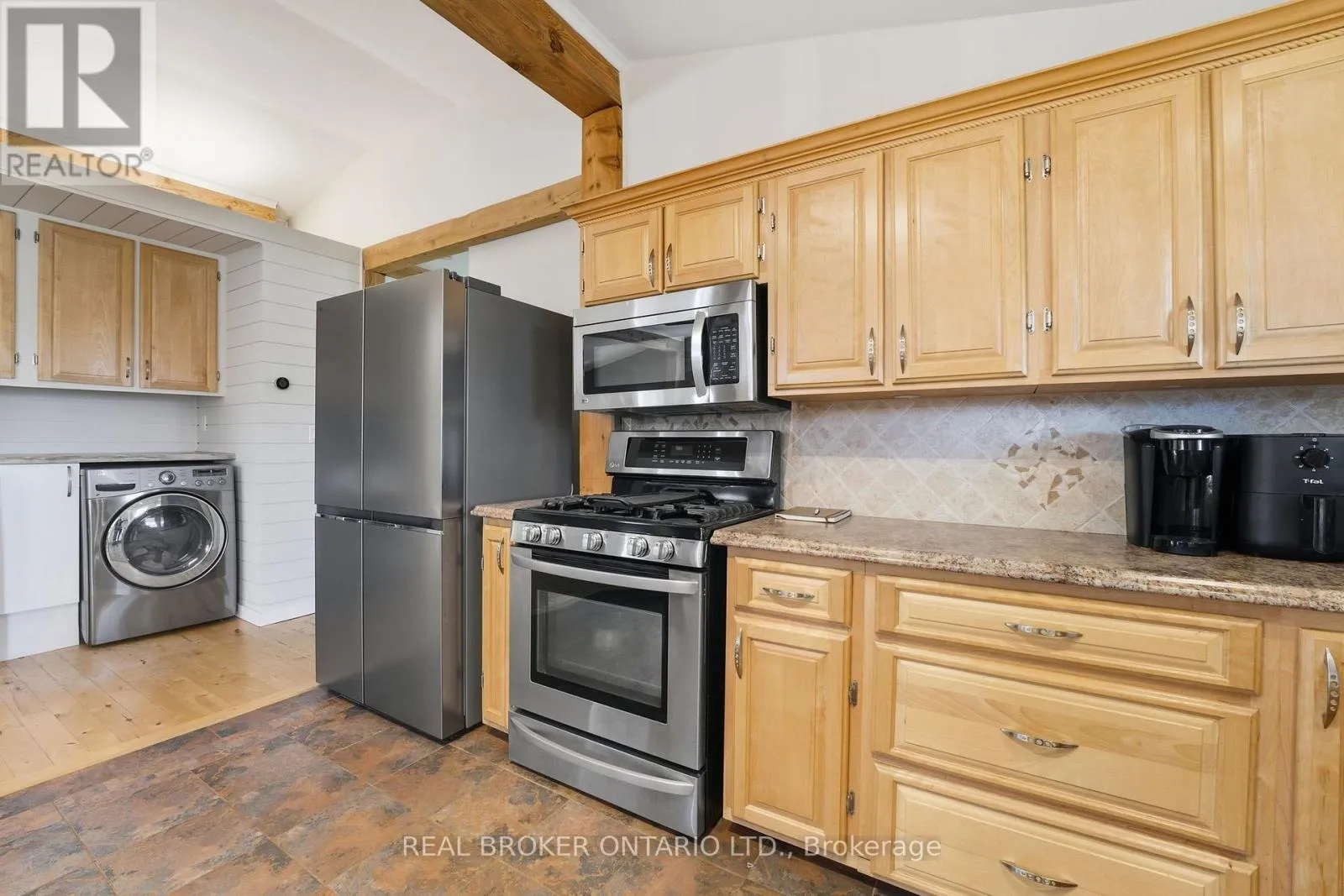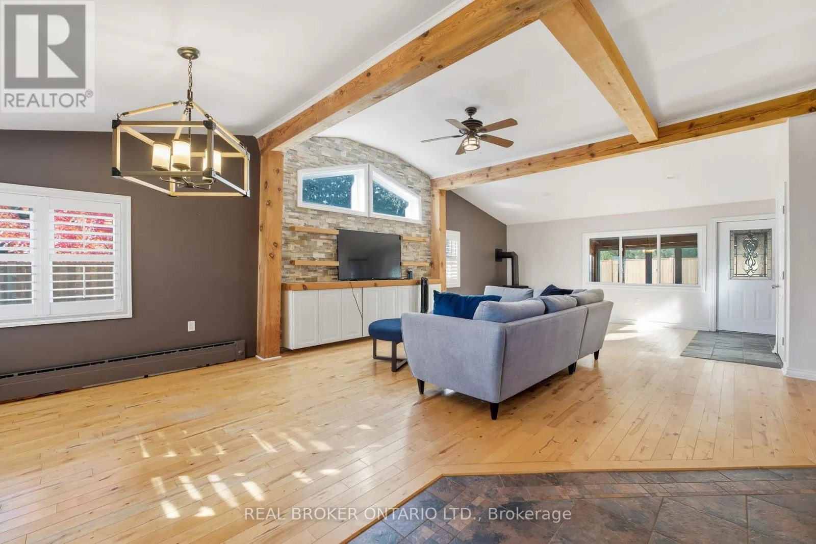 HWY 52 TO SPRINGFIELD, DEPENDING ON DIRECTION COMING FROM, TURN RIGHT/LEFT ON TO SPRINGFIELD RD. Perfectly located just minutes from Aylmer and St. Thomas, this beautifully maintained 3-bedroom, 2-bathroom home offers the ideal blend of small-town comfort and modern updates. Step inside to discover an inviting open-concept main floor featuring a bright kitchen, dining, and living area anchored by a cozy free-standing gas fireplace. Enjoy the convenience of main-floor laundry and two comfortable bedrooms, while the spacious upper-level retreat offers a large bedroom with a generous closet and built-in storage-perfect for relaxation or a private workspace. This move-in ready, smoke- and pet-free home has been extensively updated, including windows, doors, kitchen, flooring, electrical, plumbing, and a durable metal roof. Energy-efficient hot water heating keeps you comfortable year-round. Outside, enjoy a fenced side and backyard for privacy, a paved driveway, and a brick patio area ideal for relaxing summer evenings or entertaining guests. This property is currently being severed (id:27476)