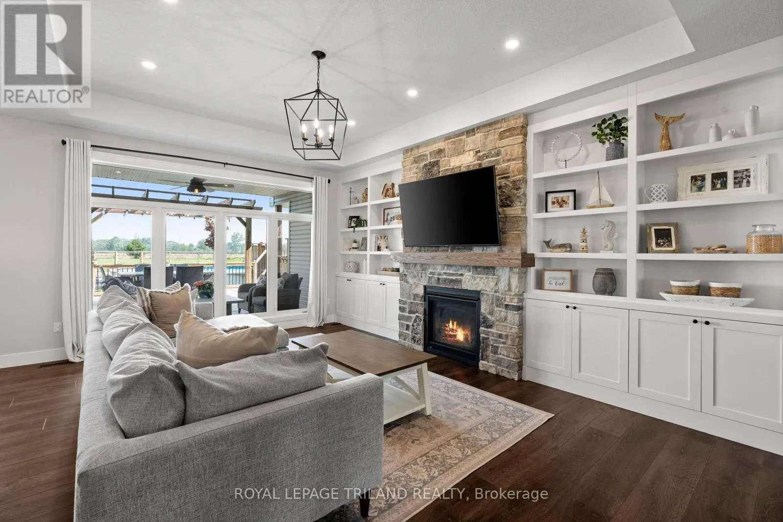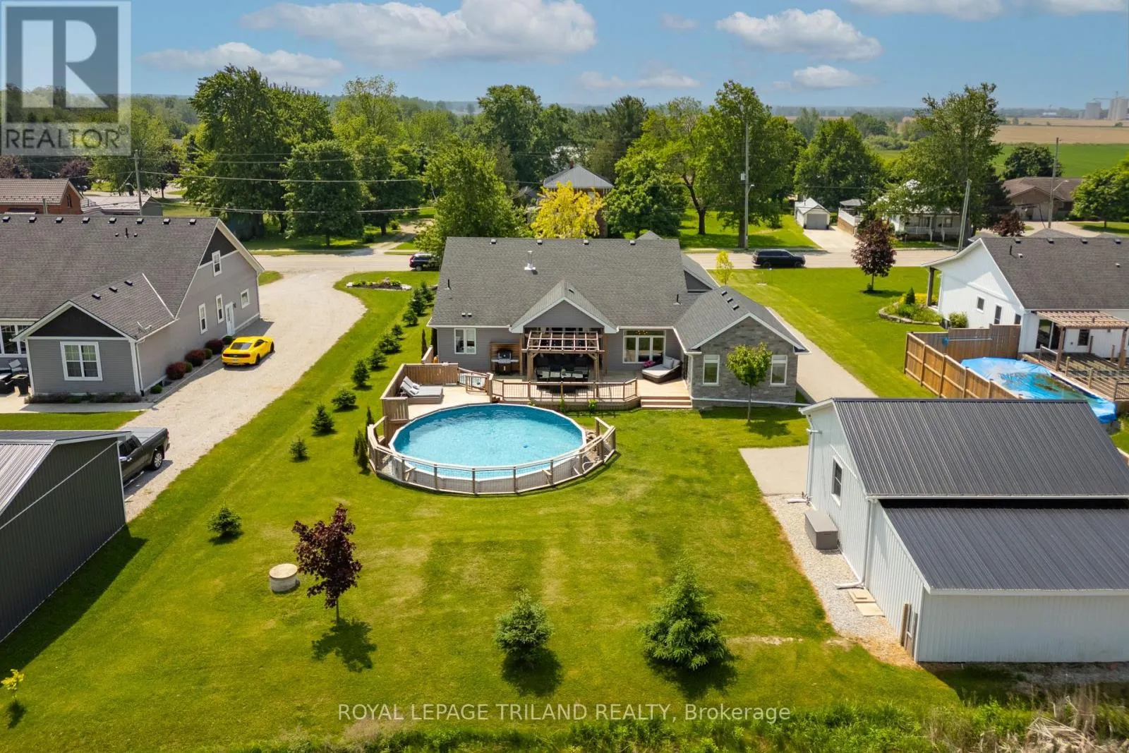Cross Streets: Imperial Rd (Elgin Rd) and Putnam Rd. ** Directions: From 401 South on Elgin Rd, Left on Ron McNeil Line. Welcome home to 51000 Ron McNeil Line in Springfield - a truly stunning custom bungalow set on just under half an acre in a quiet, welcoming community. With 3,800+ sq ft of beautifully finished living space, this home checks every box and then some. It's the kind of place that feels straight out of a magazine, yet instantly feels like home. Step inside and you're greeted by a bright, open-concept layout designed for real life and entertaining. The great room is a showstopper, featuring tray ceilings, custom built-ins, a gorgeous stone gas fireplace, and large windows overlooking the backyard and deck. The kitchen is equally impressive with quartz countertops, stainless steel appliances, sleek backsplash, custom glass cabinetry, a wine fridge, and a layout that flows perfectly for family gatherings or hosting friends. A thoughtfully designed main-floor addition adds even more space to love, offering a second living area with vaulted shiplap ceilings, a cozy gas fireplace with a barn beam mantle, and a bright main-floor office. The exterior stonework was seamlessly matched to the original home, creating incredible curb appeal. The primary suite is your private retreat, complete with a spa-like 5-piece ensuite featuring heated floors, a soaker tub, glass shower, double vanity, and a walk-in closet with custom organizers. Two additional main-floor bedrooms are bright, spacious, and beautifully finished. Recent upgrades include luxury vinyl plank flooring, stylish black light fixtures, built-in speakers, and a stunning herringbone tile mudroom. The fully finished lower level adds approximately 1,600 sq ft of flexible living space, including a large rec room, two generous bedrooms, a gym, playroom, and a 3-piece bath - perfect for growing families or guests. Outside, enjoy a landscaped backyard with an above-ground pool, large deck, heated 20 x 24 workshop, oversized double garage, and an extended driveway with parking for 12. (id:27476)