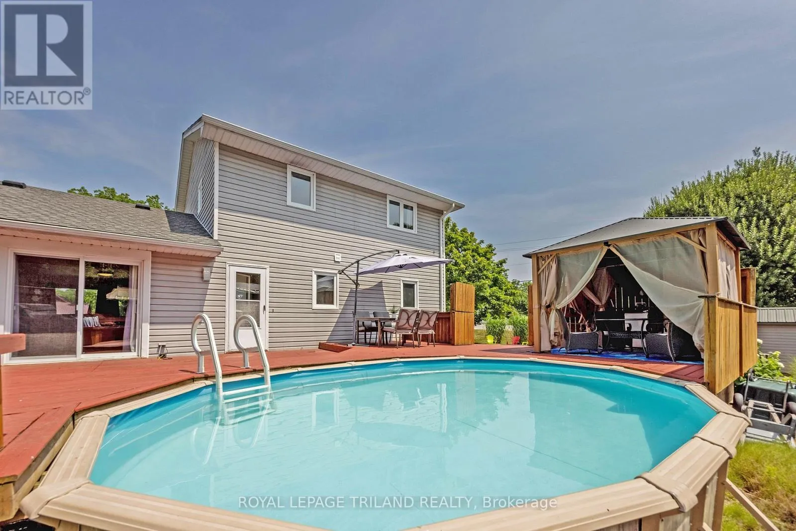 Cross Streets: Imperial Road. ** Directions: South West corner of Dexter Line & Imperial Road. Welcome to your perfect beach-town escape! Nestled in the heart of the charming lakeside community of Port Bruce, this beautifully maintained home offers the ideal blend of laid-back coastal living and modern comfort. Set on a lovely corner, landscaped lot, the property features an above-ground pool, hot tub, and three versatile sheds, perfect for storing your beach and backyard essentials. Enjoy lazy mornings on the welcoming front porch or host summer BBQs in your private outdoor oasis.Inside, you'll find a spacious, light-filled layout with a large eat-in kitchen boasting granite countertops and included appliances. The main level features a generous living room, a flexible office/dining space, and a convenient main-floor bedroom with optional laundry hookups (currently laundry in the basement). Upstairs, discover two more large bedrooms, including a primary suite with walk-out access to a private upper balcony, perfect to enjoy lovely views Catfish Creek. Recent updates include newer shingles and gutters with gutter guards, giving peace of mind for years to come. With plenty of parking and just a short stroll to the beach, marina, restaurants, renowned fishing spots and kayaking, this home is perfect as a full-time residence or weekend getaway. Plus, with easy access to both Port Stanley and Aylmer, you're never far from local shops, events, and amenities. Experience the relaxed, welcoming vibe of Port Bruce where every day feels like a vacation! Welcome Home! (id:27476)