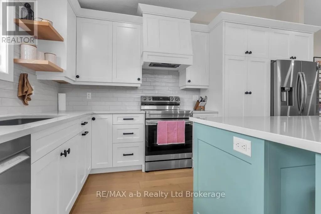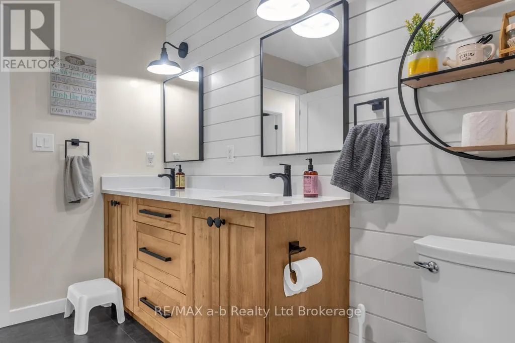 Cross Streets: Highway #3. ** Directions: From Highway #3 head South onto Hacienda Rd. Discover the perfect blend of modern upgrades and peaceful living at 6744 Hacienda Road. Set on a sprawling 91' x 295' landscaped lot, this raised bungalow offers bright, open living spaces designed for everyday comfort and effortless entertaining. Step inside to a welcoming foyer that leads to the airy main level, where an 11' cathedral ceiling enhances the open-concept design. The kitchen is a true focal point, featuring quartz countertops, stainless steel appliances, upgraded cabinetry, white oak hardwood flooring and a large island ideal for gathering with family and friends. With three well-sized bedrooms upstairs and a beautifully finished 5-piece bathroom, there's plenty of room for everyone. The lower level expands your living space with two additional bedrooms, a full 3-piece bath, a cozy living area, and convenient laundry and storage. Enjoy outdoor living with a covered post and beam deck, stamped concrete patio, and a newly paved driveway leading to a double car garage. Whether you're hosting or unwinding, this home offers space, style, and flexibility in one exceptional package. (id:27476)