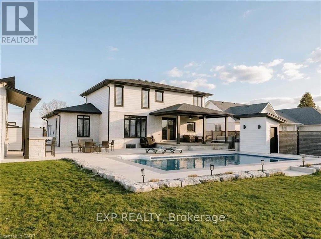 Cross Streets: Bradley Creek Line. ** Directions: Drive through Aylmer on Imperial Road and the house in on the left. Welcome to 8476 Imperial Rd in Malahide-a stunning custom-built two-storey home (2019) offering the perfect blend of luxury, space, and lifestyle. This impressive 5-bedroom, 3.5-bathroom residence sits on an expansive over half-acre lot and showcases exceptional curb appeal with its timeless stone, brick, and Hardie board exterior. Inside, you'll find a thoughtfully designed layout ideal for families and entertaining alike, featuring a spacious kitchen complete with a walk-in pantry and a warm, inviting living area highlighted by an elegant electric fireplace. The primary suite is a true retreat, boasting a walk-in closet and a beautifully appointed ensuite bath. The home also features a full basement designed for both function and entertainment, including a home gym, a full-size bar, and a spacious games room-perfect for hosting family and friends-along with plenty of additional storage rooms and flexible space. Step outside to your private backyard oasis, where an indoor pool is complemented by a dedicated two-piece bathroom, a pool shed, hot tub, and not one but two outdoor fireplaces-perfect for year-round enjoyment. A generous two-car garage and large asphalt driveway provide ample parking for family and guests. This one-of-a-kind property offers a rare opportunity to enjoy upscale country living with all the modern comforts-an ideal place to call home. (id:27476)