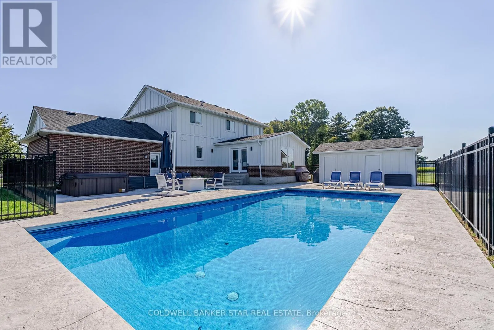 Cross Streets: Jamestown Line and Imperial Road. ** Directions: Imperial Road to Copenhagen, west on Jamestown Line, South on Mervis Drive, west to 5229 Wales Crescent. Discover this stunning custom-built Colonial 2 storey home, perfectly situated on a beautiful 1.01 acre pie-shaped lot complete with an 18' x 36' heated in-ground Pool. Built by Hayhoe Homes and located in the desirable Wales Subdivision in the village of Copenhagen, this exceptional property offers rural tranquility with convenient access to local amenities and just minutes south of Aylmer and north of the beaches of Port Bruce. Step inside from the charming covered front porch to a welcoming Foyer leading to a bright, south-facing Den and a spacious open-concept Diningroom with a cozy gas Fireplace. The adjoining dream Kitchen will impress any home Chef with quartz countertops, an oversized quartz island with sink, a pantry and stainless steel appliances including a gas stove with a pot-filler faucet. Entertaining is effortless in the expansive Familyroom, highlighted by backyard views and a garden door opening to the patio and pool area. A convenient 2-piece Bath near the main floor Laundry Room which offers interior access to the heated 2 car Garage, with flecked epoxy flooring and auto door opener. Upstairs, you'll find 4 generous Bedrooms and a central 5-pc Bath. The primary suite offers abundant closet space and a 4 piece ensuite Bath. The full basement offers excellent potential for future finishing to suit your family's needs. Outdoors, enjoy the front perennial gardens - accented with stacked limestone boulders, a double-wide paved driveway with room for 6 vehicles, and a massive fenced yard overlooking the peaceful countryside. Summer living is at its finest as your family and friends splish-splash in the resort quality 18' x 36' heated salt-water in-ground Pool surrounded by a concrete patio, 5' black steel fencing and the 10' x 20' Pool Shed offers a convenient 3-piece seasonal wash/change room. This meticulously maintained executive home offers space, style, & lifestyle - everything you've been looking for. Don't miss this opportunity to make it yours. (id:27476)
