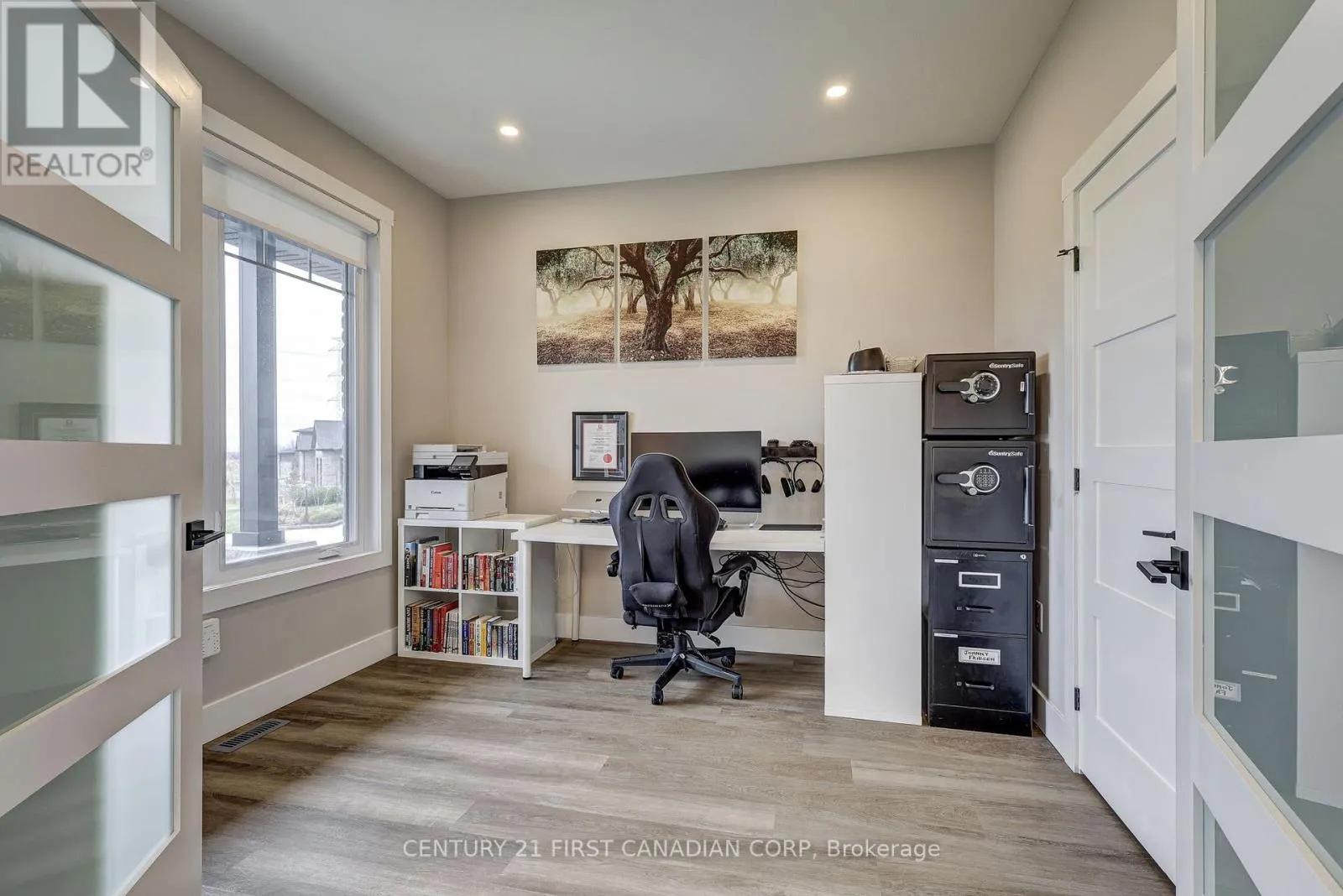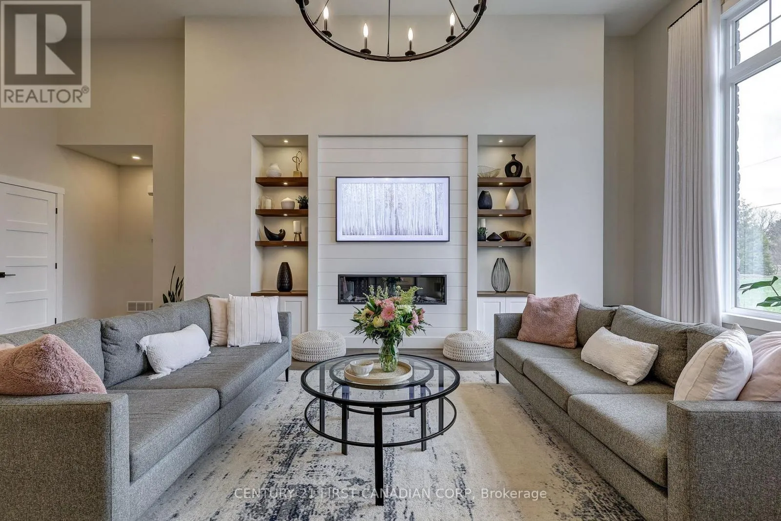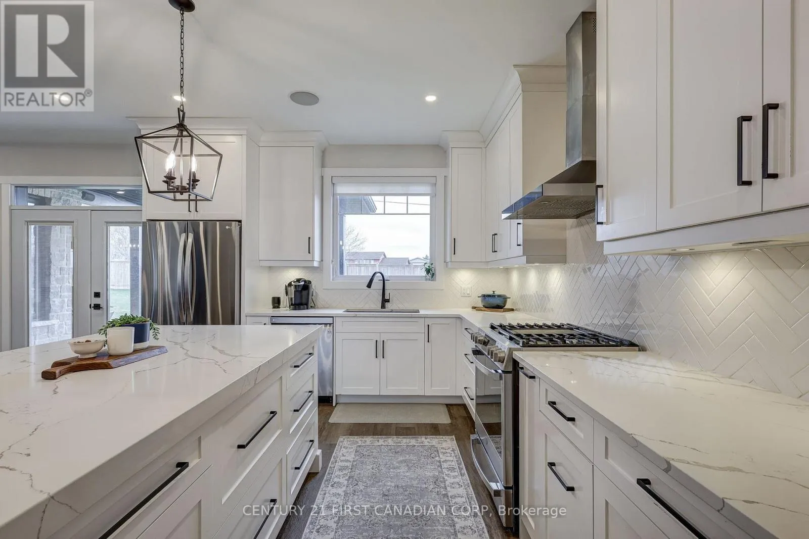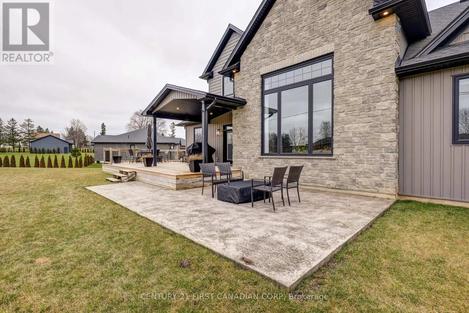 Cross Streets: Ashland and Lyons Line. ** Directions: Turn south onto Westbury Drive and then east onto Ashland Ave from Lyons Line. Welcome to this stunning home nestled on a quiet cul-de-sac on a generous half acre pie-shaped lot, offering exceptional curb appeal with a double car garage, extended driveway, and a concrete pathway leading to a large covered front porch. Inside, a spacious foyer opens to a breathtaking living room with soaring 14-foot ceilings, a cozy fireplace, and an oversized rear window overlooking the expansive backyard. The chef's kitchen impresses with quartz countertops, an oversized island, walk-in pantry, and abundant cabinetry, while the main floor also features a convenient laundry room with custom cabinetry and sink. The primary suite is a private retreat with a luxurious ensuite including a soaker tub, tiled shower, water closet, and a walk-in closet with custom built-ins. Upstairs offers three generously sized bedrooms anda well-appointed 5-piece bath, while the large unfinished basement with high ceilings provides endless potential for additional living space. Outside, enjoy a beautifully designed yard complete with a covered deck, stamped concrete fire pit area with natural gas hookup, outdoor dining space, and a side yard already prepped for a future garden shed. This home is just 5 years young and better than new with the upgrades inside and out. (id:27476)