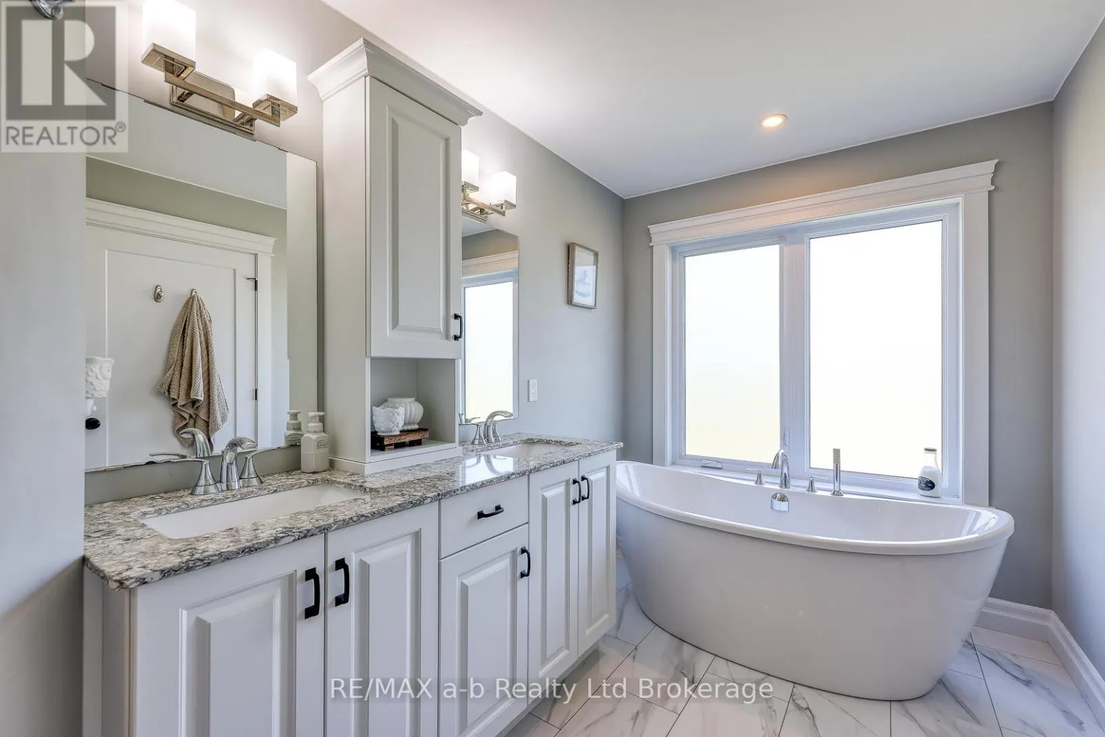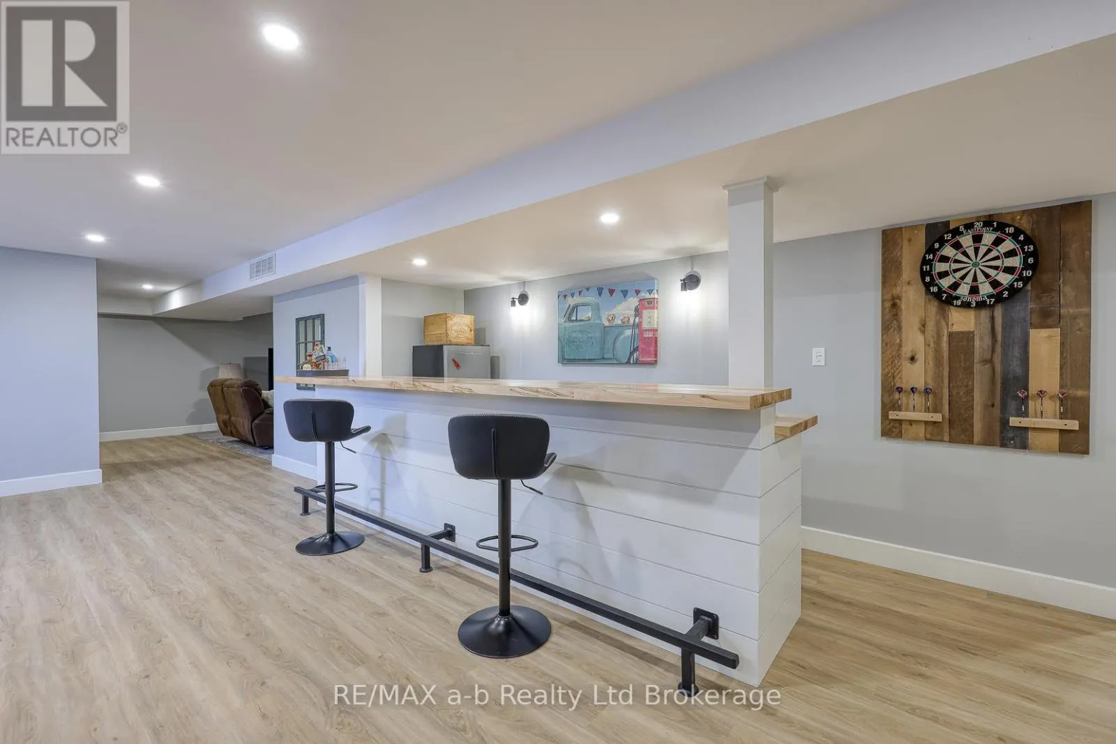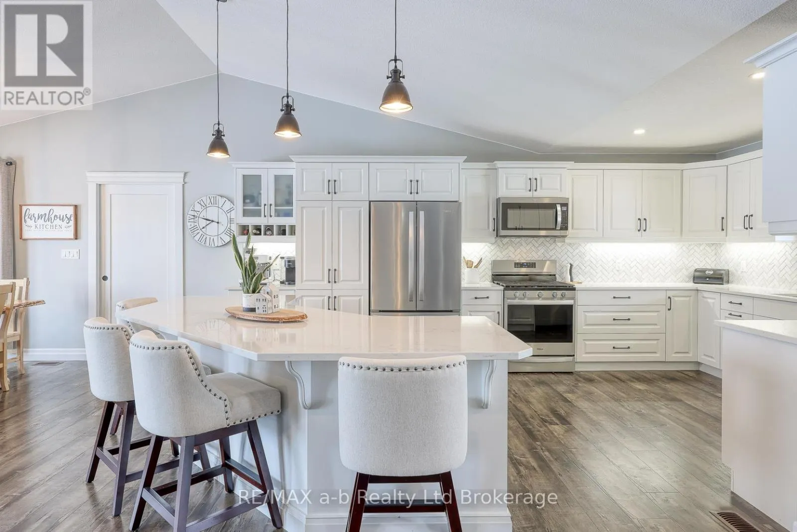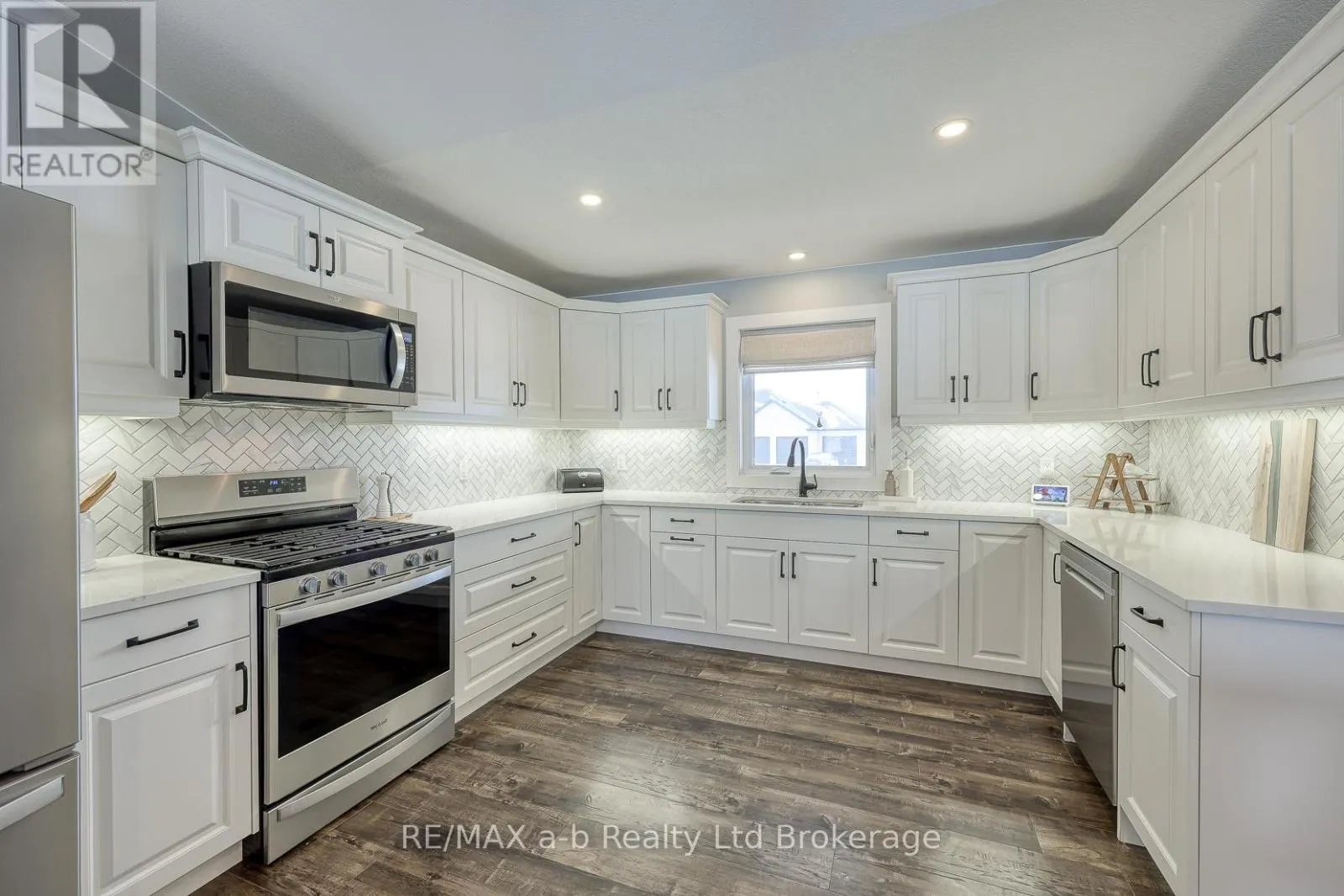 Cross Streets: Imperial Rd, Lyons Line. ** Directions: South on Elgin Road from 401, West on Lyons Line, South on Westbury Ave, East on Ashland Ave. Incredible Value! Beautiful custom 5-bed, 3-bath home on a 0.45-acre lot situated on a quiet cul-de-sac. Features an open-concept layout with cathedral ceilings, a gourmet kitchen with quartz countertops, a large island, and a bright dining area overlooking the living room with gas fireplace. The primary suite offers a tray ceiling, walk-in closet, and luxurious 5-piece ensuite with soaker tub and tiled walk-in shower. Two additional bedrooms, a full bath, and a convenient butler-style laundry room complete the main floor. The finished basement includes 2 more bedrooms, a full bath, a spacious rec room with bar, a second living area, and a home gym space. Includes a heated triple car garage, covered back deck, and basement walk-up. A perfect home for families needing space, comfort, and style! (id:27476)