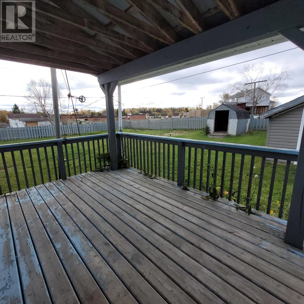 Highway 614 North, follow to Manitou Road, turn left on Adjala, follow to Oshweken Rd, turn right, home is on the right, three from the corner #42 Looking for a big yard and a big garage? Check out this listing located in beautiful Manitouwadge Ontario. Surrounded by the pristine wilderness of the Boreal Forest and world-class fishing and hunting, One-and-a-half storey home featuring a nice layout, open-concept living/dining/kitchen area, with patio doors leading to the covered rear deck, main floor bedroom and a 4pc bath on the main level. Upper level features a primary bedroom with a 2pc ensuite and an additional bedroom. Mostly finished basement, newer propane furnace, rental hot water tank and water softener. This property is located on two lots and offers plenty of room for your outdoor storage needs. Great garage with plenty of shelving and extra storage area, additional shed and mostly fenced yard. Close to schools, shopping, churches and outdoor activities. Visit www.century21superior.com for more info and pics. (id:27476)