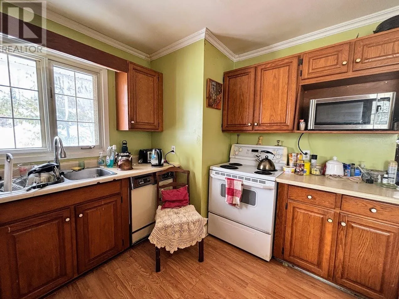 Highway 614 North to Manitou Road, left turn onto Adjala Avenue, left turn onto Mona Drive. Tucked away in the quiet northern community of Manitouwadge, Ontario, this whimsical brick home offers warmth, character, and functionality across three levels. The main floor welcomes you with a cozy living room highlighted by tall windows that flood the space with natural light. The adjoining dining and kitchen area features ample cabinetry, providing plenty of storage for everyday living. A 4-piece bathroom and a comfortable queen-sized bedroom complete this level. Upstairs, youâll find a spacious primary bedroom accented by a charming skylight and dual closets. A secondary bedroom rounds out the upper level, ideal for family, guests, or a home office. The basement adds extra living space with a rec room/utility area, a laundry room, and a 1-piece bathroom. Outside, enjoy a cute backyard perfect for relaxing or entertaining, along with a detached single-car garage for added storage and parking. A delightful home with character and versatility â perfect for those seeking comfort in a peaceful northern setting. (id:27476)