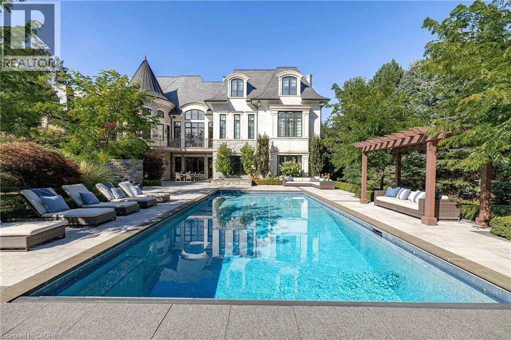 Woodland Acres / Rebecca Court Exquisite French Parsian Home in coveted Woodland Acres. Architect Frank Falcone and Designer Robin Nadel. Over 1 acre of private grounds with pristine manicured gardens, pool and outdoor entertaining spaces. Made with Indiana limestone, natural slate roofing, natural stone, granite and copper detailing. Over 13,000 sq ft of total living space with refined craftsmanship, finest luxury finishes and no detail overlooked throughout this incredible property. Cathedral great room, gourmet kitchen by Bellini Kitchens with Rotunda breakfast area. Extensive millwork, vaulted ceilings and wall panelling throughout. Mahogany wine cellar with capacity of over 500 bottles, elevator, gym, theatre, wet bar, outdoor kitchen, stone fireplace with pizza oven. Separate one bedroom apartment above garage. 4 car garage and 12 parking spots. (id:27476)