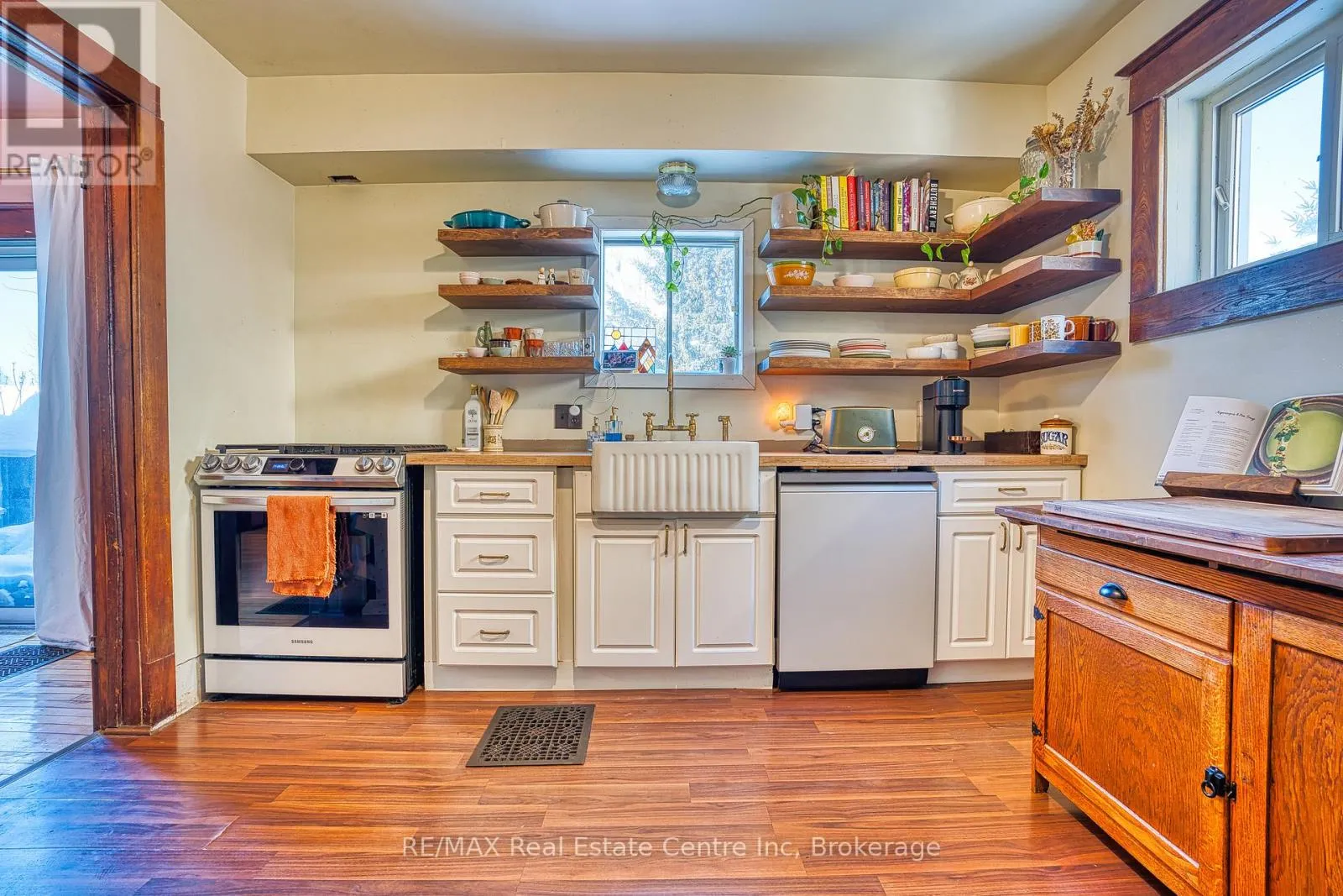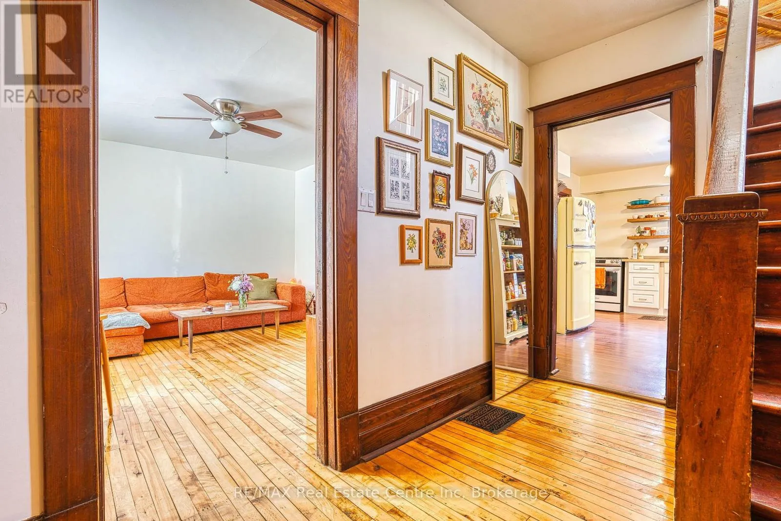Cross Streets: Wellington Rd 8. ** Directions: From the main intersection, turn onto Wellington St S, 34 Wellington st on the right hand side. Fall in love with timeless charm in this circa 1910 brick two-storey, where character and comfort meet. Rich hardwood floors, gorgeous original trim, and a cozy living room with gas fireplace create an inviting atmosphere you'll feel the moment you step inside. Offering 3 bedrooms and 1 bathroom, each bedroom features large closets, blending historic charm with everyday practicality. The spacious second-floor bathroom conveniently includes laundry nicely tucked away, making daily living effortless. A fully fenced backyard with a multi-tiered deck sets the stage for summer nights, easy entertaining, weekend BBQs, and quiet morning coffees in the open air. A durable metal roof adds peace of mind. Nestled in the heart of Drayton, you're just steps from downtown shops, the theatre, restaurants, schools, parks, and all the small-town charm that makes this community so special. A truly special place to call home. (id:27476)