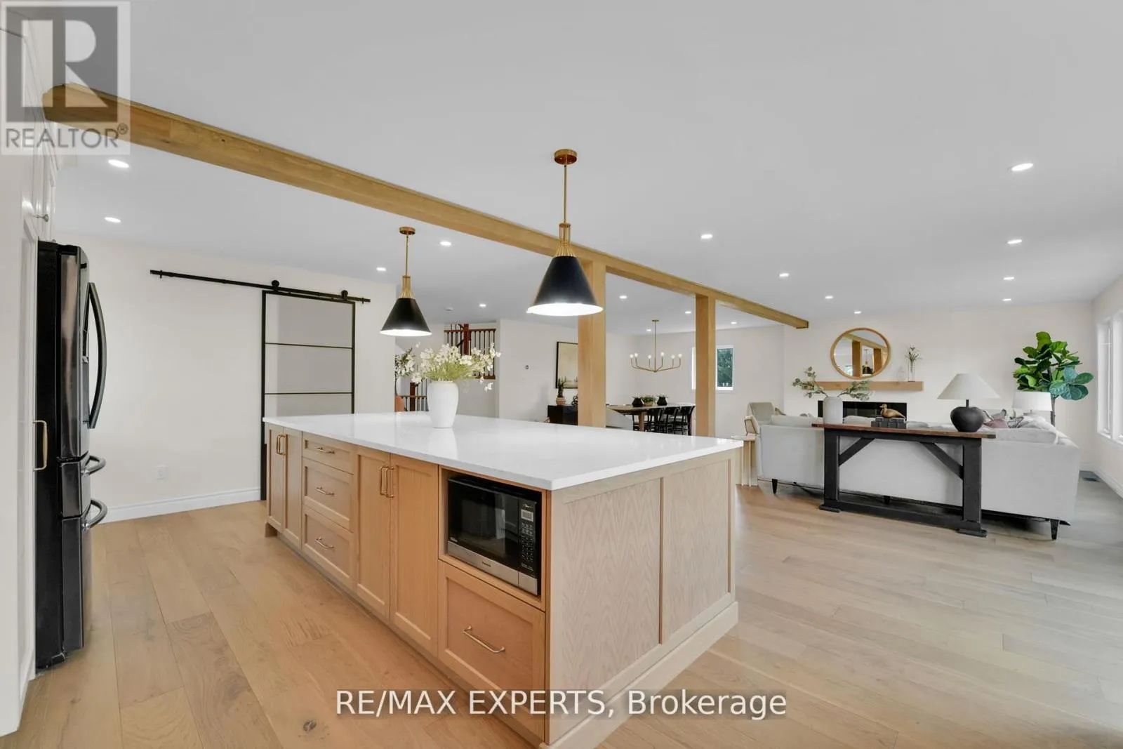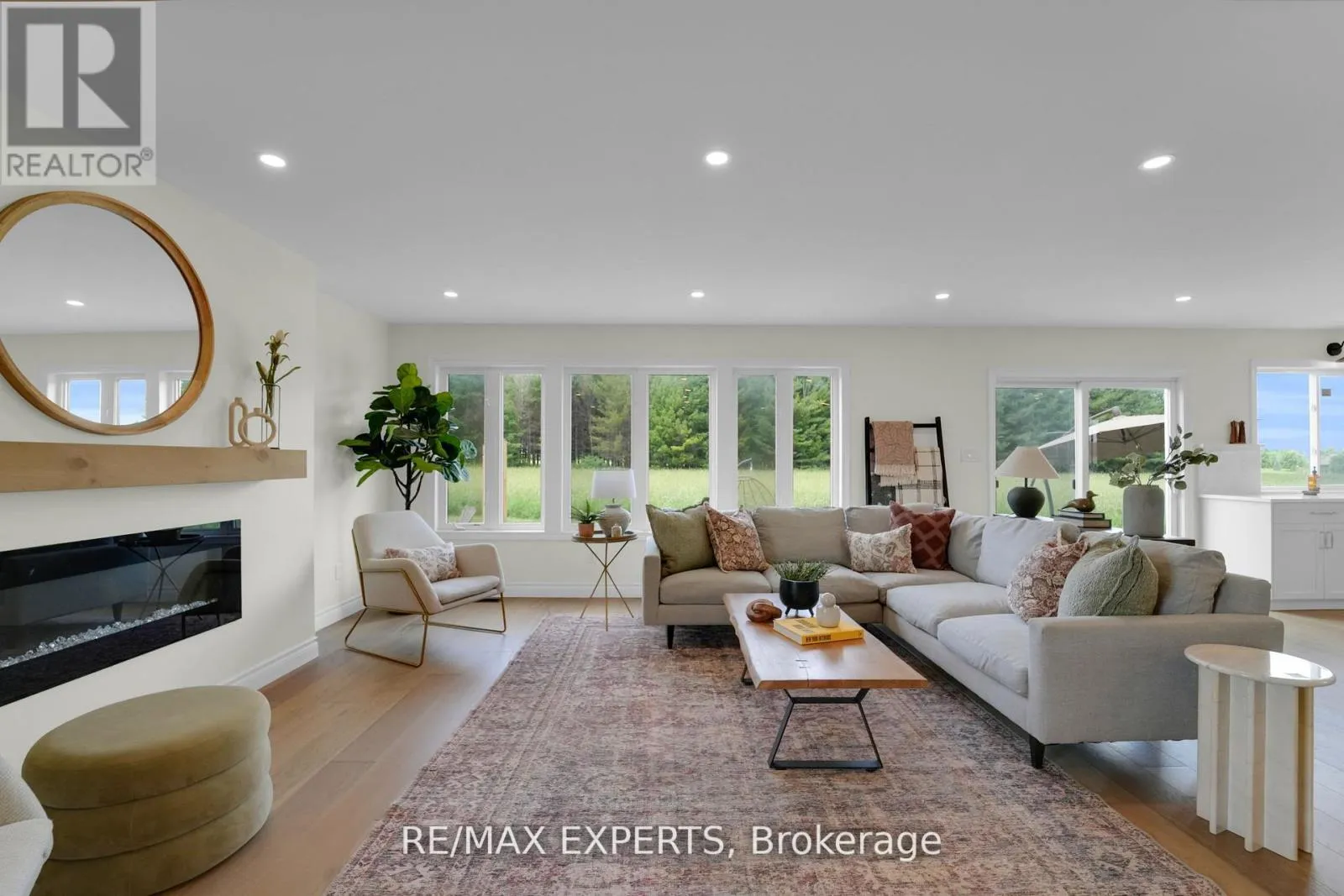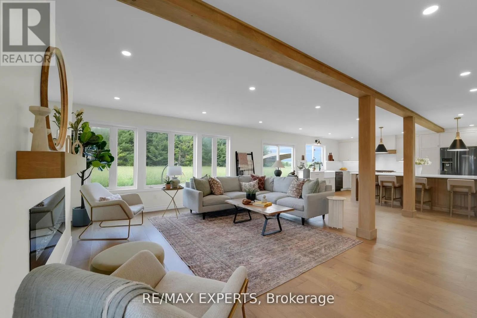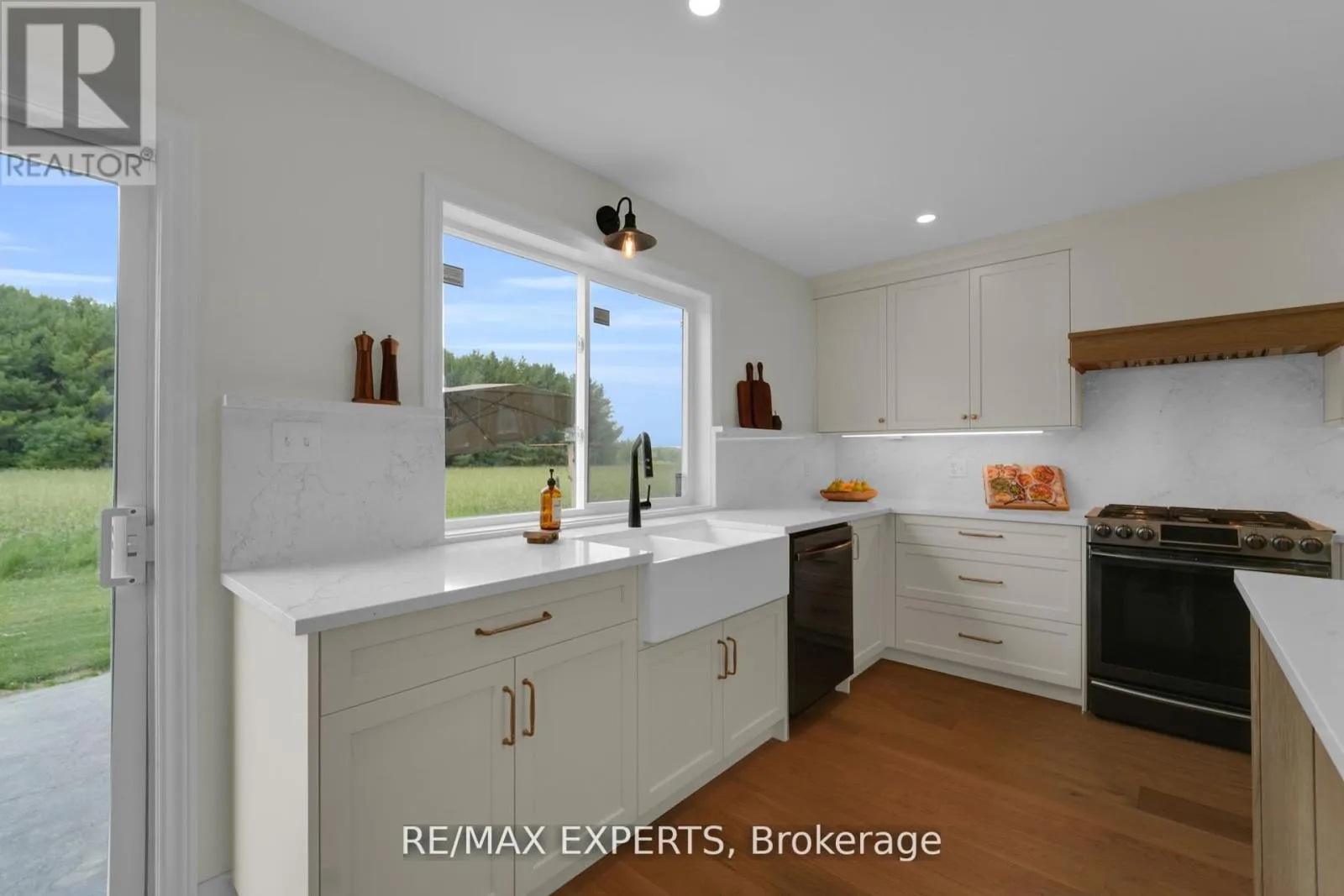 Main Street & Wellington Street North Welcome to 46 Scenic Drive! Where timeless craftsmanship meets modern country elegance in the heart of Drayton. Situated on a stunning 100x150 ft lot, this newly renovated custom home offers approx. 5,300 sq ft of beautifully finished living space across three levels. The open-concept main floor is enhanced by engineered hardwood, pot lights, and a striking exposed wooden beam that ties the space together. The designer kitchen is a showstopper featuring quartz countertops, custom cabinetry, an oversized centre island, a uniquely crafted hood, and a walk-in pantry for optimal functionality. Large picture windows flood the home with natural light and frame peaceful views of the lush backyard. With 7 bedrooms and 5 bathrooms, this home blends comfort and sophistication effortlessly. The oak staircase with sleek iron spindles leads to a second floor that boasts a luxurious primary retreat with a spa-like ensuite, double vanities, freestanding tub, glass shower, and his & her closets. The fully finished basement includes pot lights, a spacious bedroom with ensuite, and a custom wet bar with a gleaming granite countertop, perfect for entertaining. Step outside to your stamped concrete patio with outdoor fire-pit, or unwind on the charming front veranda. Located in Drayton, a close-knit community known for its scenic beauty and small-town charm, this home is a true masterpiece of luxury living. (id:27476)