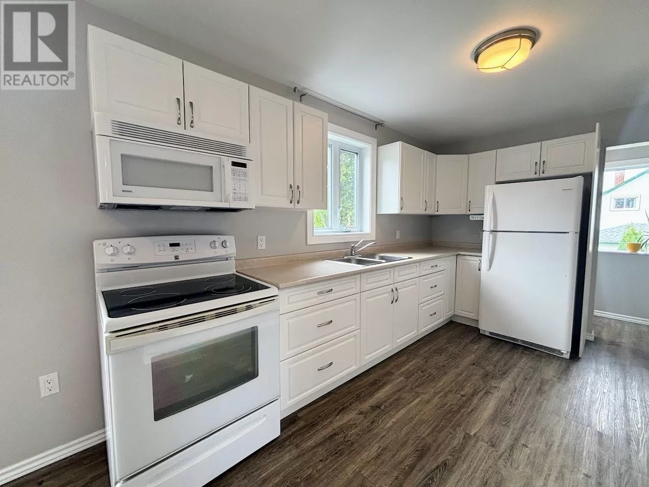 FOLLOW PENINSULA ROAD, RIGHT TURN ONTO STEVENS AVE, LEFT TURN ONTO GILBERT ST, RIGHT TURN ONTO ABRAMS ST. Set on a generously sized lot and surrounded by the rolling hills of Northern Ontario, 1 Abrams Street offers the perfect balance of modern comfort, timeless charm, and outdoor serenity. You are first welcomed by a large formal mudroom which flows into the main living area, a warm and inviting space flooded with natural light. Adjacent is a bright galley-style kitchen, freshly updated in a classic white palette, complete with ample cupboard and counter space, paired with a dining area. A rare and sought-after feature, the main floor bedroom offers a private ensuite with a deep soaker tub â a perfect place to unwind after a long day. Upstairs, the home features three additional bedrooms including a modern 4-piece bathroom. The fully finished basement expands the homeâs living space with a large, bright recreation room that can be used as a media space, games room, or the ultimate lounge area. Additional built-in cabinetry and countertop space make it perfect for crafts, hobbies, or extra storage. A separate laundry room and 3-piece bathroom complete the lower level. Step out from the formal back porch onto your sunny deck, where you'll find your own private garden oasis. This expansive yard is a dream for anyone who loves the outdoors, featuring lush gardens, mature trees, vibrant flora, and even a greenhouse. Additional storage sheds provide room for tools, toys, or outdoor gear. Multiple renovations were done in 2020, including but not limited to a new roof, flooring throughout, windows, kitchen, and more. This beautiful home is well-loved, offers unmatched scenery, and is move-in ready. Enjoy the quiet, small-town lifestyle with access to beautiful hiking trails, Lake Superior, and nature just minutes away. (id:27476)