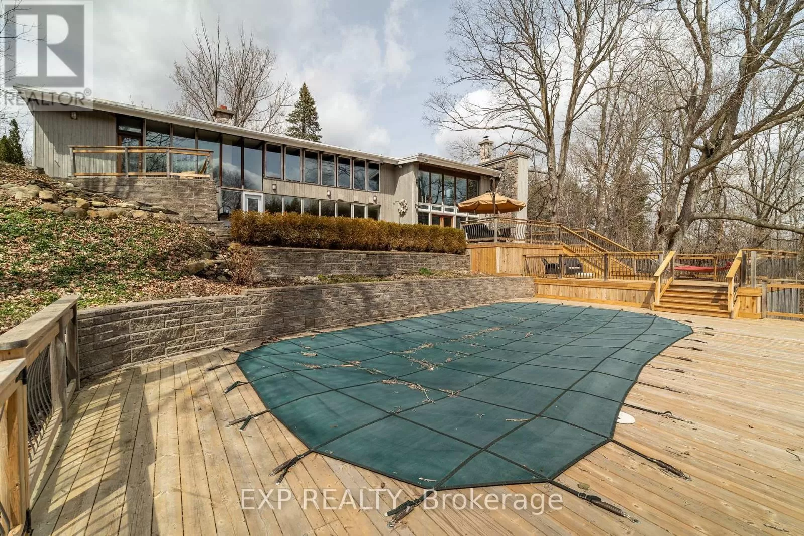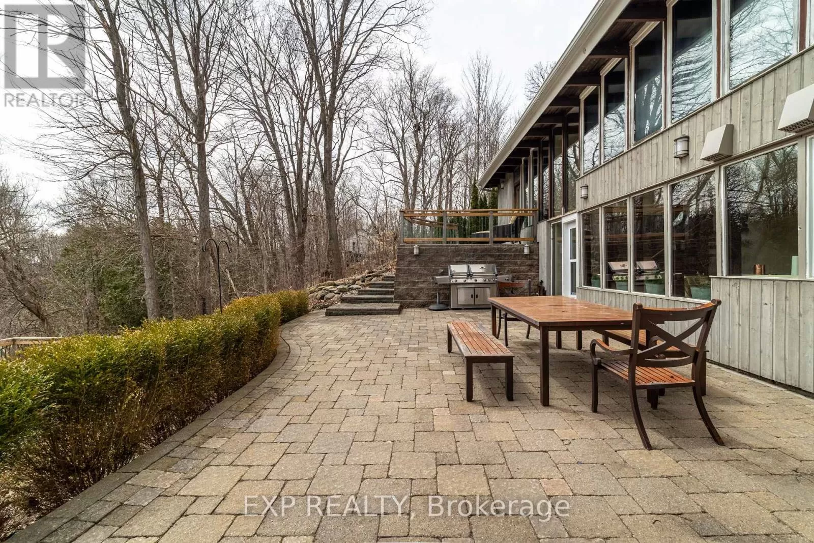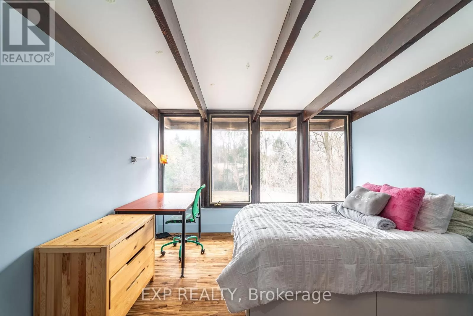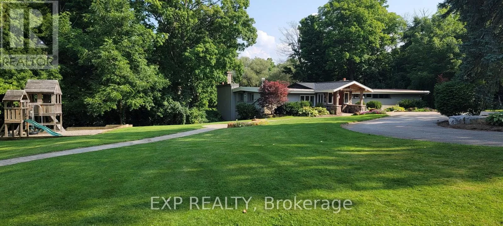 Cross Streets: Hwy 48 & 19th. ** Directions: North on Hwy 48 Turn East on 19th Ave, follow the jog in the road, and find the property on the south side. Welcome to 6165 19th Ave., Markham a truly unique country estate offering the best of both worlds: ultimate privacy and serene natural surroundings, all within minutes to modern conveniences. This warm and inviting 4-bedroom, 4-bathroom bungalow inspired by Frank Lloyd Wrights signature style is thoughtfully integrated into the landscape. Floor-to-ceiling windows along the back of the home flood the interior with natural light and provide breathtaking views of the wooded rolling lot and creek. The recently updated kitchen features poured-in-place concrete countertops and rich wood cabinetry. A built-in wall oven and a spacious walk-in pantry make it both beautiful and functional. And the kitchen boasts stunning views of the property including wildlife such as deer, foxes, turkeys, and a great heron. The great room is a showstopper, with soaring 20+ ft ceilings, exposed wooden beams and a natural granite stone wood-burning fireplace perfect for family gatherings or quiet romantic evenings in. The primary suite is a tranquil retreat, complete with a steam feature and jetted soaking tub in the ensuite and a wood burning fireplace. The home is fully wired with CAT-5 making it ideal for modern living. With two wood-burning fireplaces and an additional gas fireplace, warmth and comfort are never far away. Outside, the detached three-car garage with workshop and loft is a dream for hobbyists or those seeking extra space. With utilities already in place, the loft offers untapped potential and can be transformed into a games room, home office, or garden suite. The oversized patio and deck are perfect for entertaining including summer nights around the built-in gas firepit. Natural gas service, a rare feature for a country property, adds value and efficiency. Whether you're seeking a forever family home or a weekend escape, this one-of-a-kind property delivers charm, character, and lifestyle. Dont miss your chance to own this exceptional gem in Markham's countryside. (id:27476)