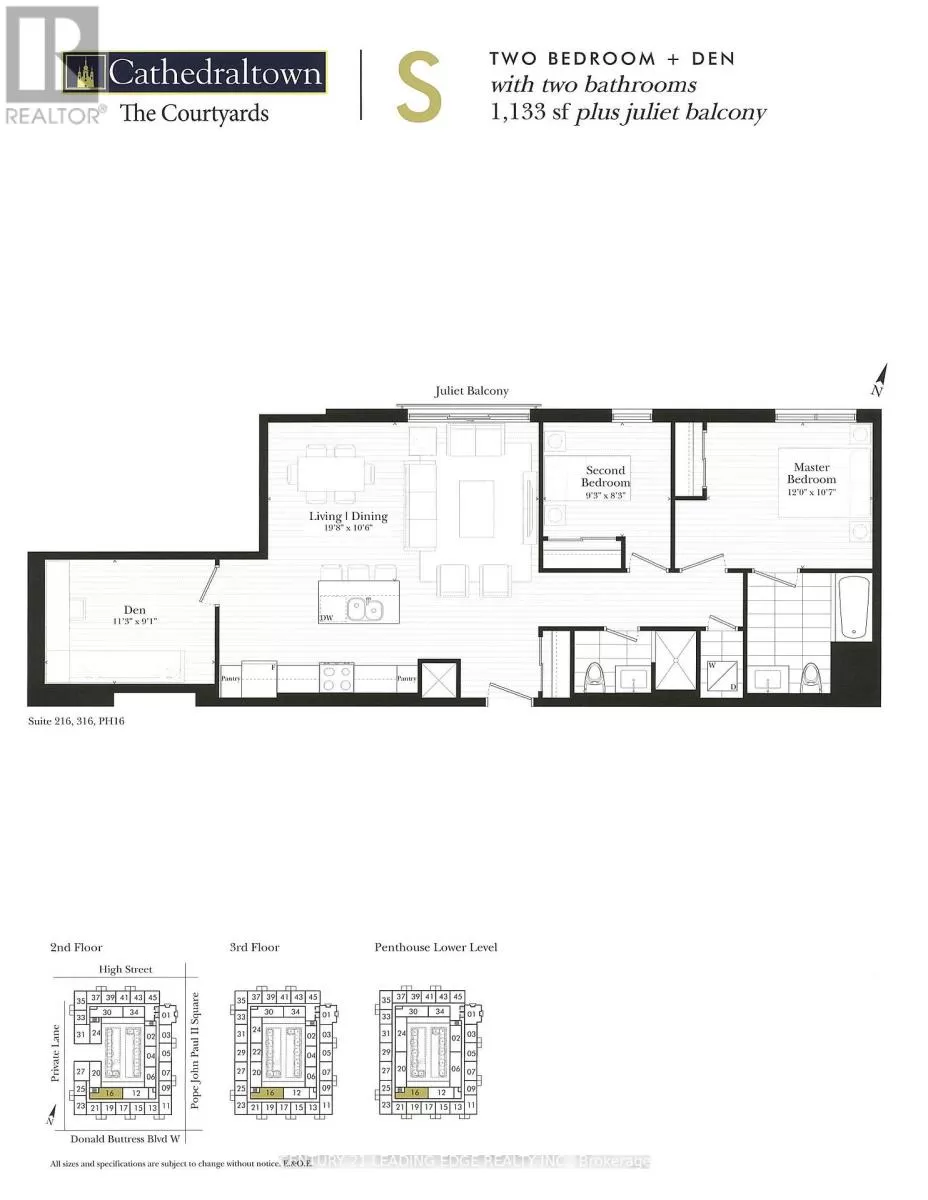 Cross Streets: Woodbine/Major Mackenzie. ** Directions: Go north on Woodbine Ave and make a right turn on Cathedral High St, around the bend. Building Is Registered! Move In Ready! Live In Elegant Architecture Of The Courtyards In Cathedral Town! European Inspired Boutique Style Condo 5-Storey Bldg. Unique Distinctive Designs Surrounded By Landscaped Courtyard/Piazza W/Patio Spaces. This Suite Is 1133Sf Of Gracious Living With 2 Bedrooms + Den (Separate Room And Can Be Used As A 3rd Bedroom), 2 Baths And Juliette Balcony Overlooking The Beautiful Courtyard Garden. Close To A Cathedral, Shopping, Public Transit & Great Schools In A Very Unique One-Of-A-Kind Community. Amenities Incl: Concierge, Visitor Parking, BBQ Allowed, Exercise Room Party/Meeting Room, And Much More! (id:27476)