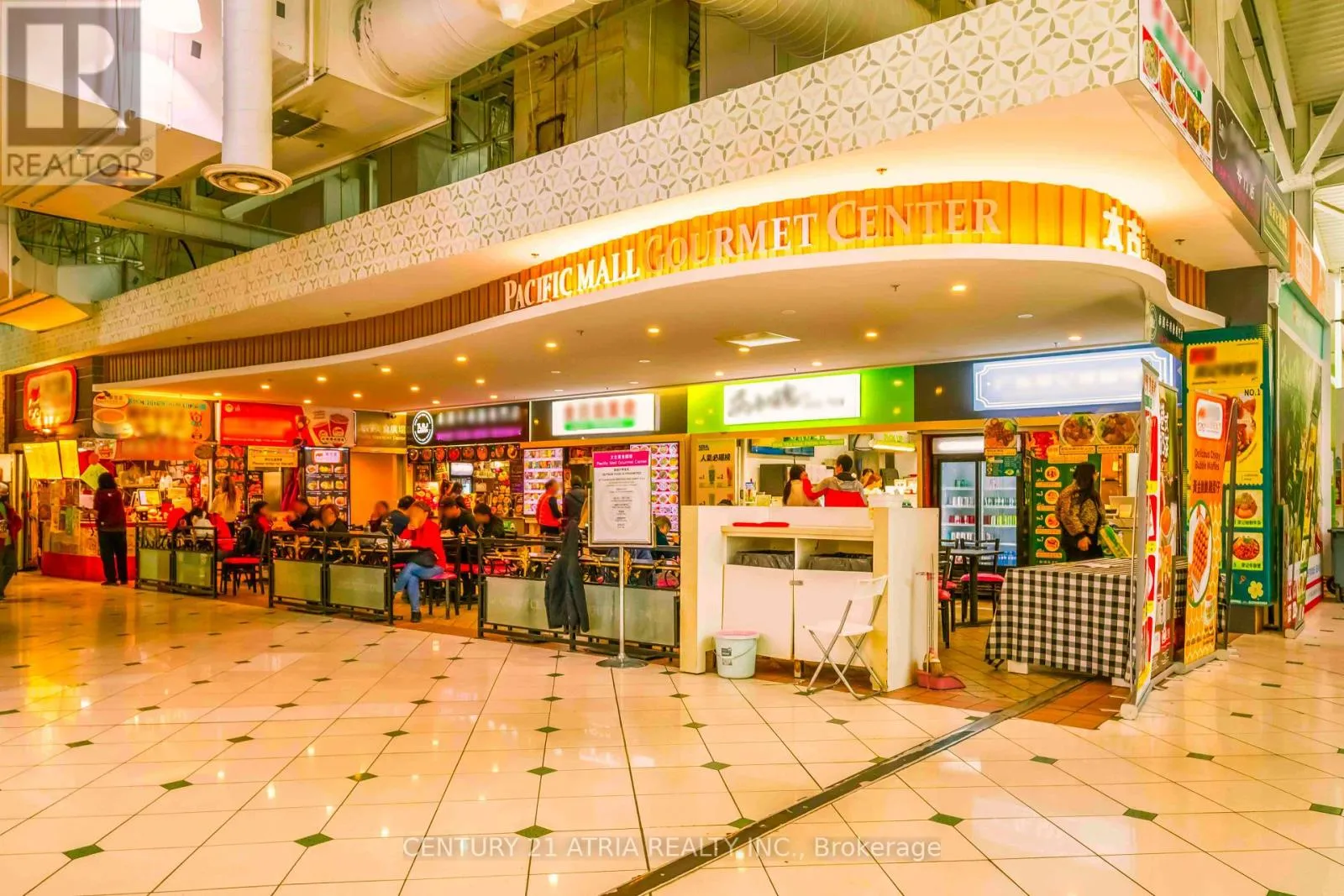 Cross Streets: Kennedy and Steeles. ** Directions: Hey Google, take me to the largest Asian shopping mall in North America. Own a fully leased food court unit in Pacific Mall, North America's largest indoor Asian shopping centre an iconic cultural landmark where generations have gathered. This investment features 3 food stalls, a 64-seat dining area. Generates over $165,000 in annual rental income (over $360,000 when combined with other listing MLS #N12107344, with 6 stalls total), with strong net returns and a cap rate of over 6.25%. Prime second-floor location beside elevators and escalators ensures maximum foot traffic. Pacific Mall offers surface and underground parking and consistently draws high visitor volume. Strategically positioned on the Markham-Scarborough border, it attracts loyal local shoppers and steady tourist traffic. Buy a piece of memory an opportunity to invest not just in a thriving business, but in a place where visitors come to taste nostalgia, reconnect with culture, and experience a slice of home. A rare chance to own a part of a true landmark. Must be purchased with MLS #N12107344. (Photos have been slightly altered to protect privacy of vendors.) (id:27476)