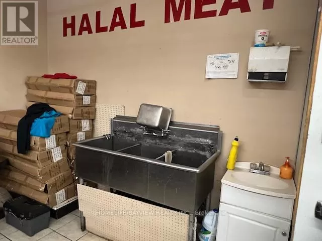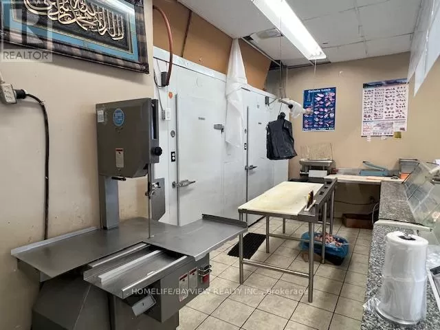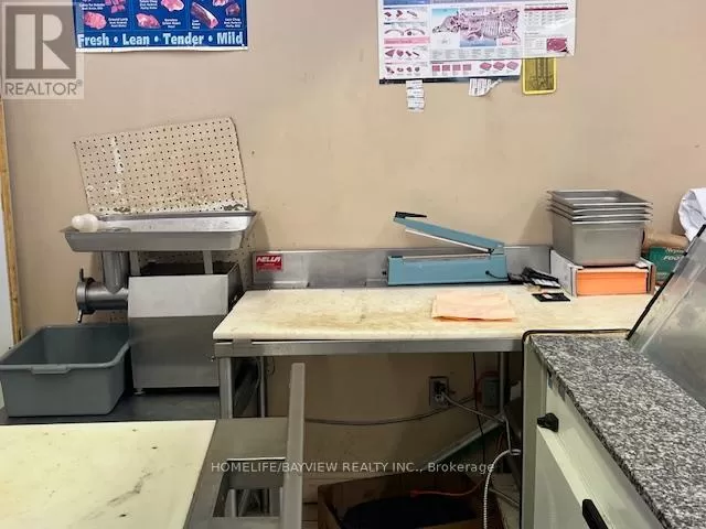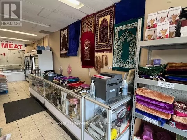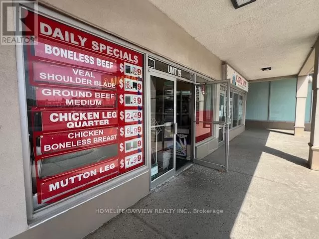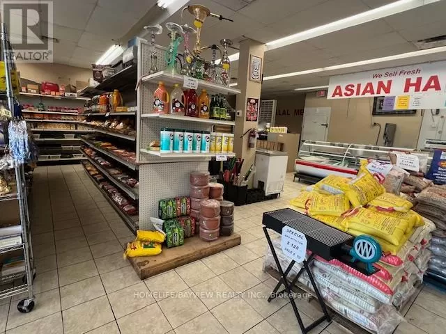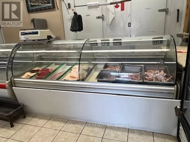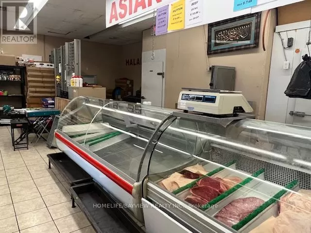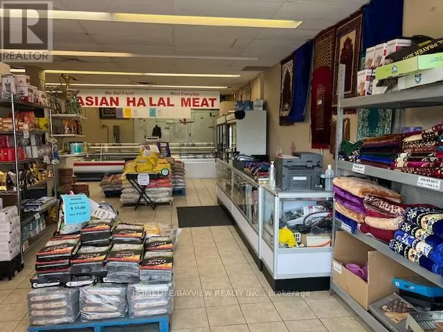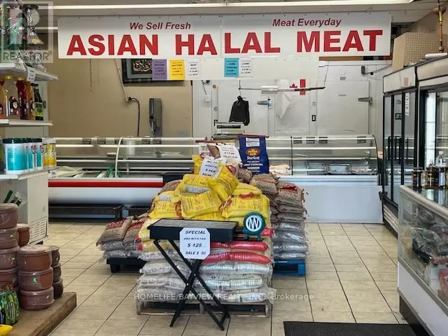 Hwy 7/Galsworthy Excellent opportunity - over 12 years established and busy halal butcher shop and grocery store. Prime corner location with amazing exposure facing busy Hwy 7 & next door to Dollarama. Prime plaza with restaurants, convenience store, karate school, bakery, Service Ontario, etc. Fully-equipped with cutting saw machine, grinder, display coolers, walk-in coolers, freezers, shelves, etc. Store sells all types of halal meats, fresh groceries, seasonings, rice, shisha pipes, BBQ grills, prayer mats, cookware, etc. Very well-known brand name included. Owner will train. Excellent high volume shop ideal for family operation. Sales $35,000-$45,000/Month. Current rent $5,000/month includes TMI & HST. New lease 5 + 5 Years option to renew to be negotiated. Owner/operator nets $8,000-$12,000/month. (id:27476)