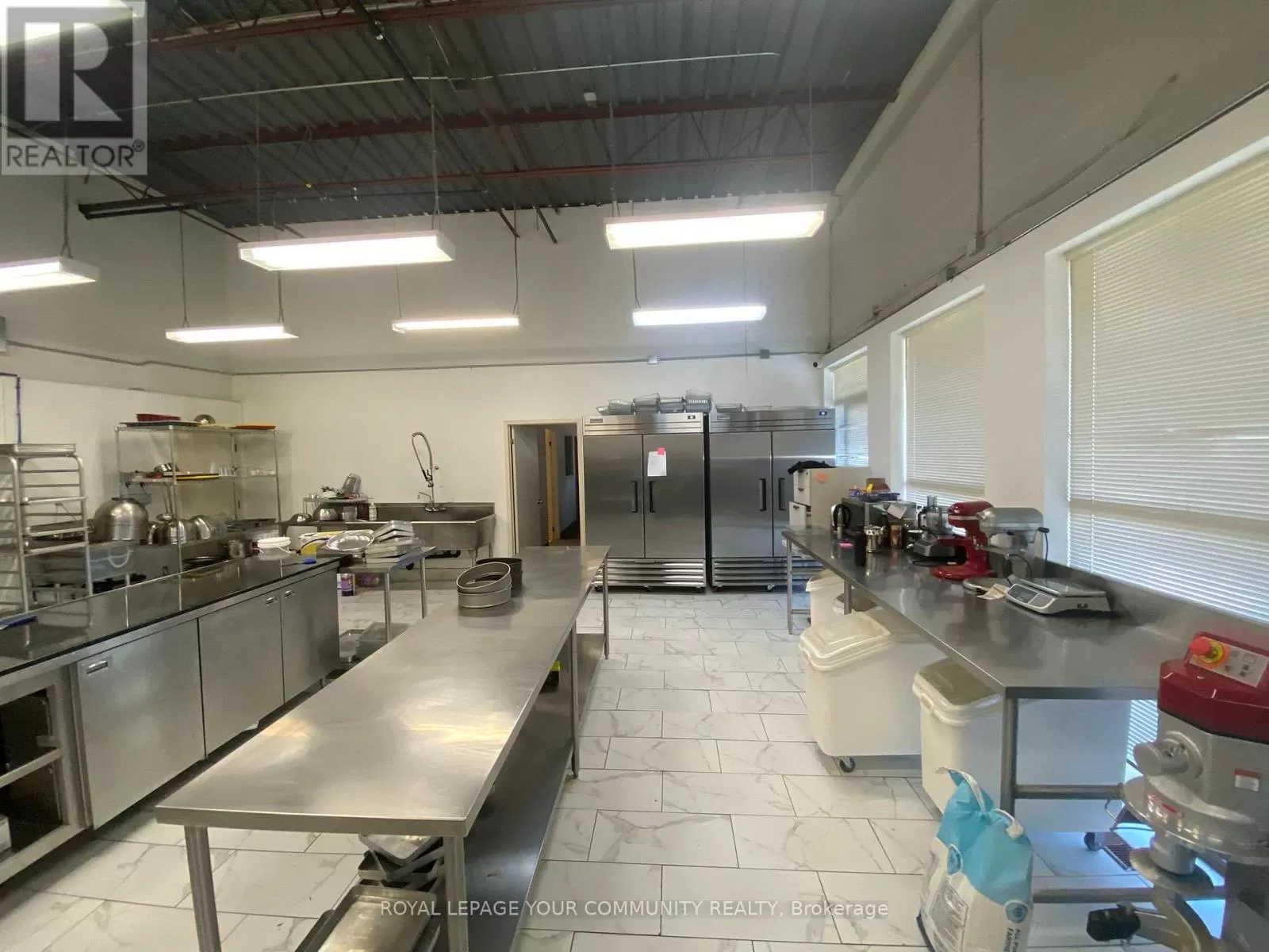 Woodbine & Steeles Ave End-cap warehouse unit available for sublease (1 to 5-year term), offering approx. 9,720 SF of clean industrial space. Features include 3 truck-level loading doors, upgraded electrical panel with high voltage and amp capacity, 2 walk-in cooler storage units, 4 finished offices, 2 separate washrooms, a changing room, and a commercial-grade hood for cooking. Previously used for bakery preparation, with racking in place and a layout ideal for food production, clean warehousing, or bakery operations. Versatile space also suitable for shipping and logistics companies, warehouse and distribution, or showroom use. COMMERCIAL GRADE HOOD & 2 WALK IN COOLER STORAGES (id:27476)