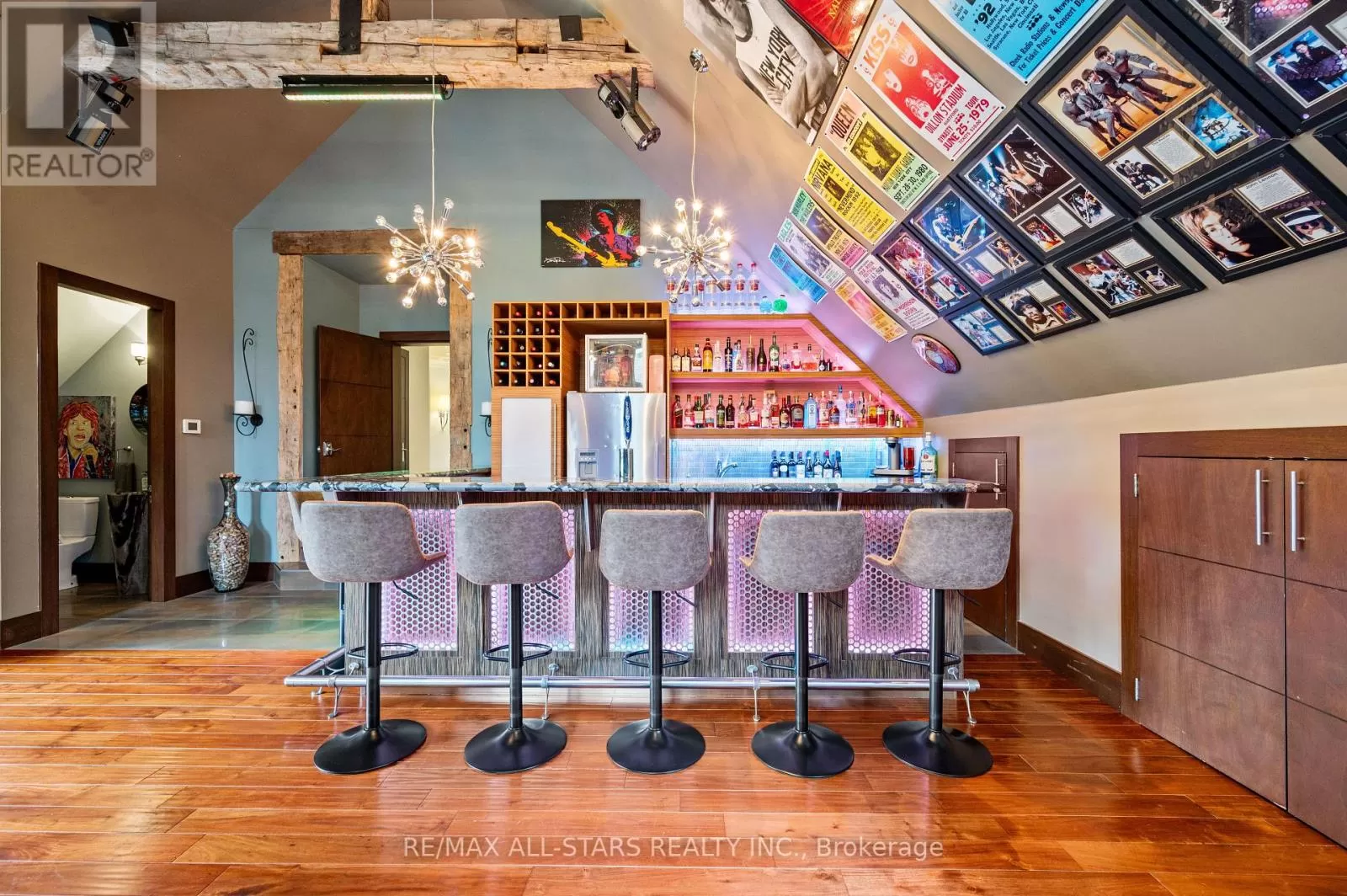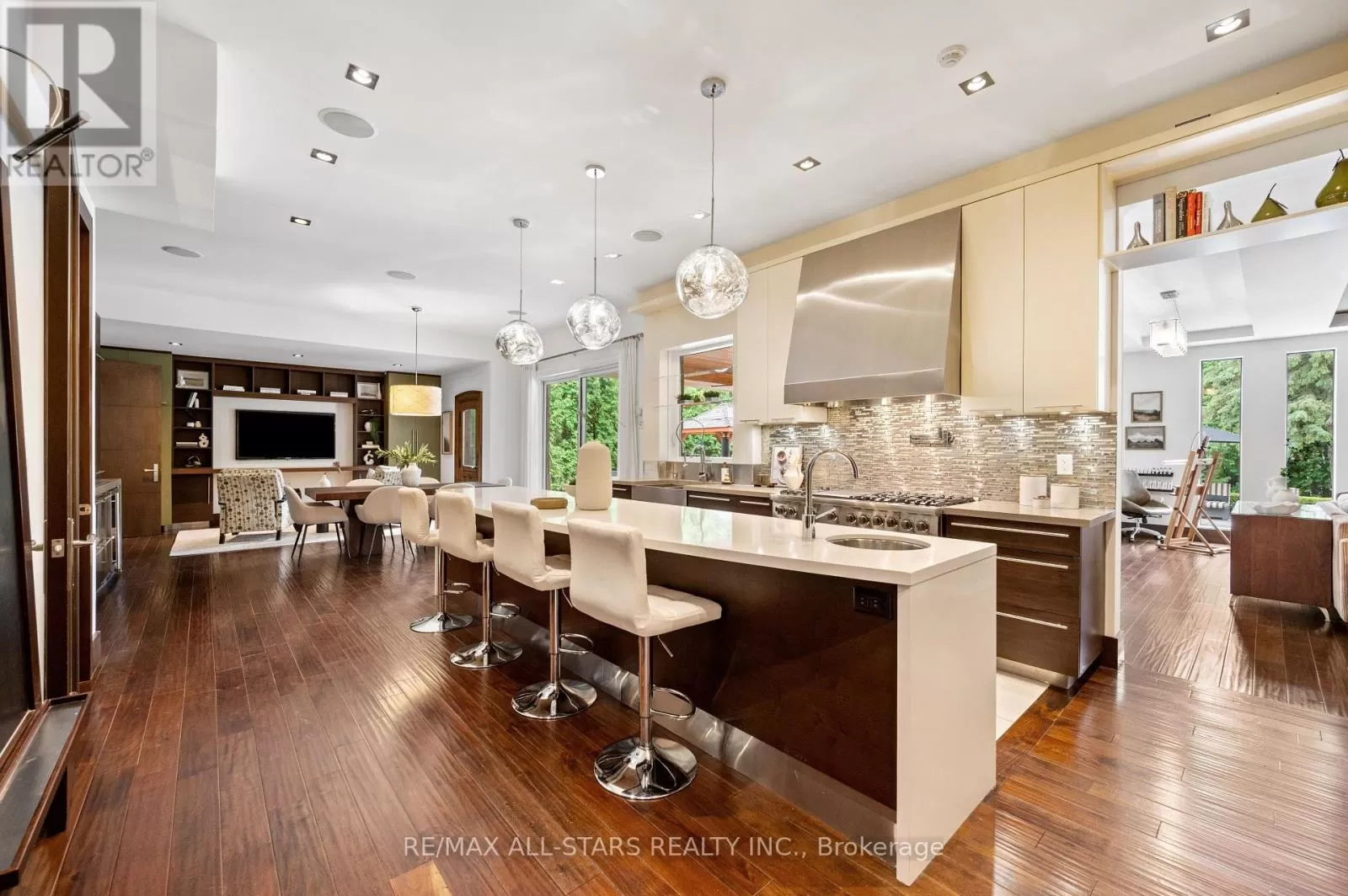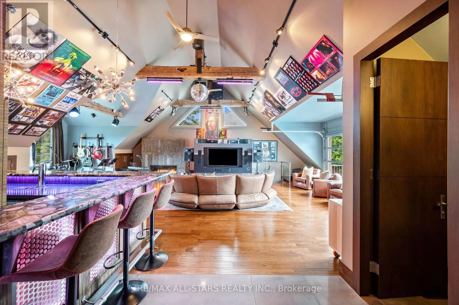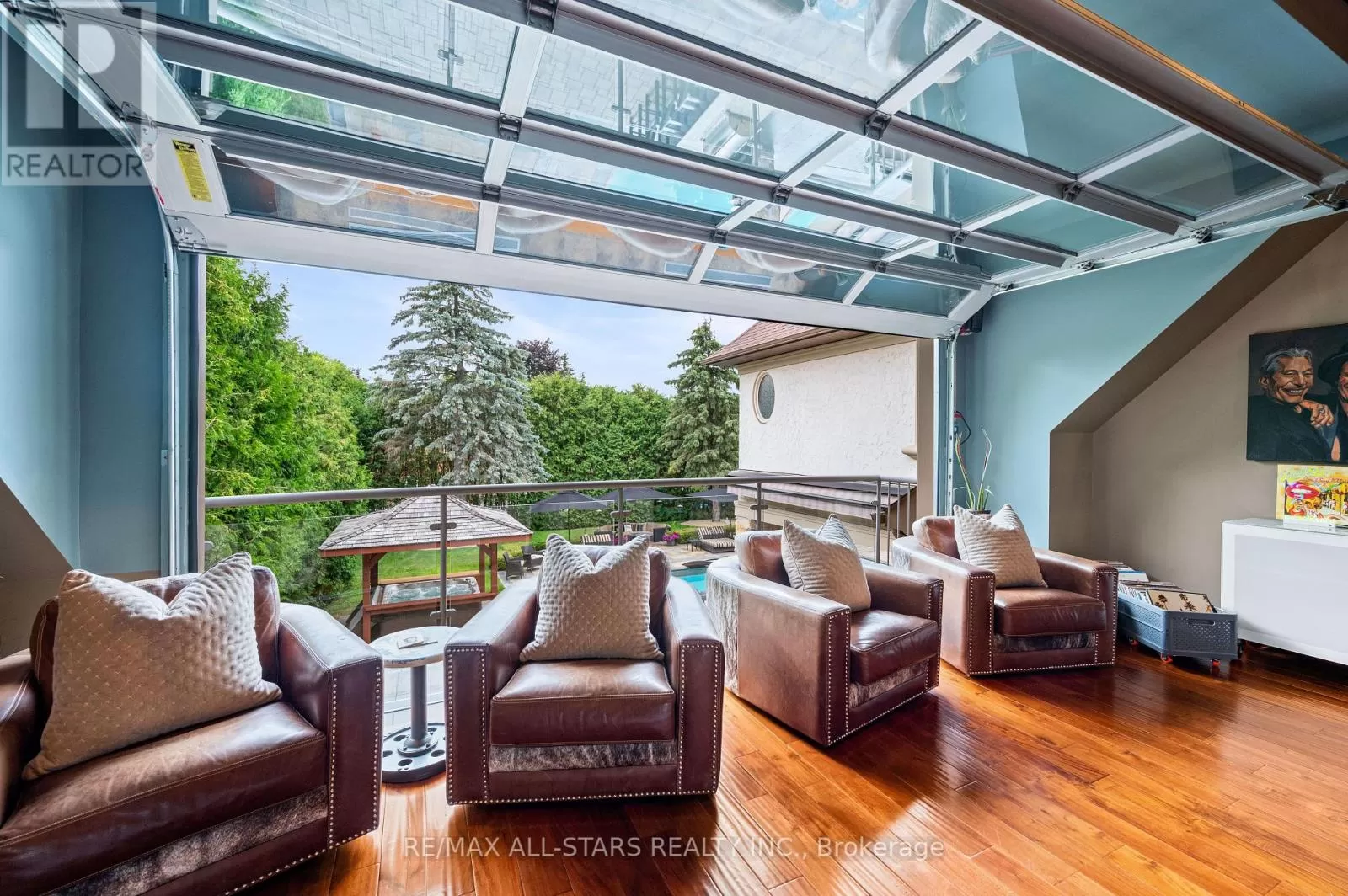 Cross Streets: Kennedy & Highway 7. ** Directions: West of Main Street Unionville (Aprox 5 Minute Walk). Welcome home to 32 Wembley Avenue, a crown jewel within the prestigious and highly sought-after Unionville community that perfectly blends luxury, lifestyle & location. This architecturally refined French Chateau-inspired custom residence is nestled on an ultra-private 100 ft x 232 ft lot and is ideally located just steps to Toogood Pond and the enchanting shops & restaurants of charming Main Street. Proudly offered by it's original owners, this meticulously kept and inviting family home was designed for longevity, style & comfort. It was selected as the cover feature article in The Good Life Magazine, titled "Practical elegance in Old Unionville". This spectacular residence showcases timeless elegance blended w/modern touches. The exterior boasts a natural stone and stucco façade with copper accents and artisan-crafted oak & walnut doors as well as a 3-car garage. The pristine grounds feature professional landscaping including an oversized limestone waterfall, a large covered terrace with cedar ceilings, a large extra-deep pool with walk-over arch, an outdoor kitchenette and bar, a gazebo with a jacuzzi tub, a cabana bathroom, an outdoor shower+++ True resort-style living at it's best! Step inside this impeccably crafted home to find an inviting cathedral foyer and grand living spaces with soaring, beamed and custom-detailed ceilings including a sun-flooded and airy family room with custom built-ins & a sleek gas fireplace overlooking the backyard; A gourmet, modern, family-sized eat-in kitchen w/top of the line appliances; 5 +1 generous-sized bedrooms including a primary suite with vaulted & beamed ceilings as well as a jaw-dropping modern ensuite; A one-of-a-kind, ultimate entertainment loft w/private entrance, dramatic16-ft vaulted ceilings w/architectural & barn-wood accents, a retractable glass garage door, a glass balcony, a built-in DJ booth, pro party lighting, a custom wet bar w/a keg tap & bar seating for 8++ See https://32wembleyave.com/nb/! (id:27476)