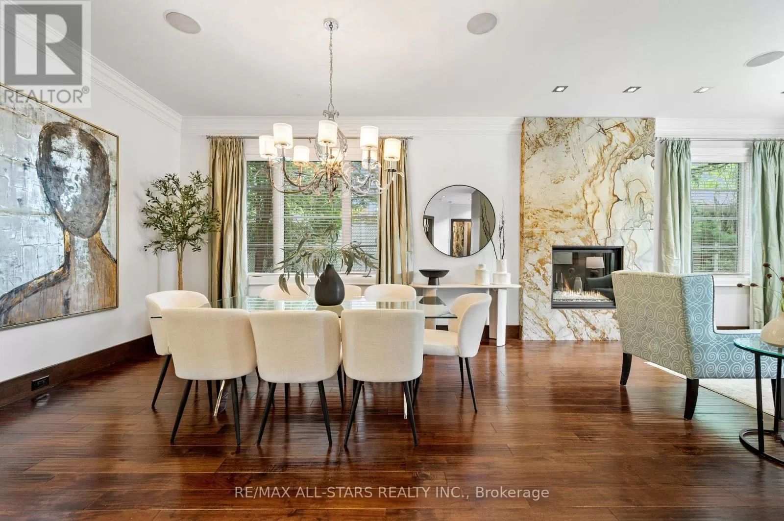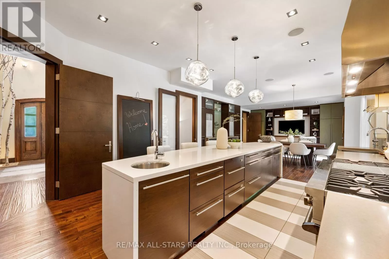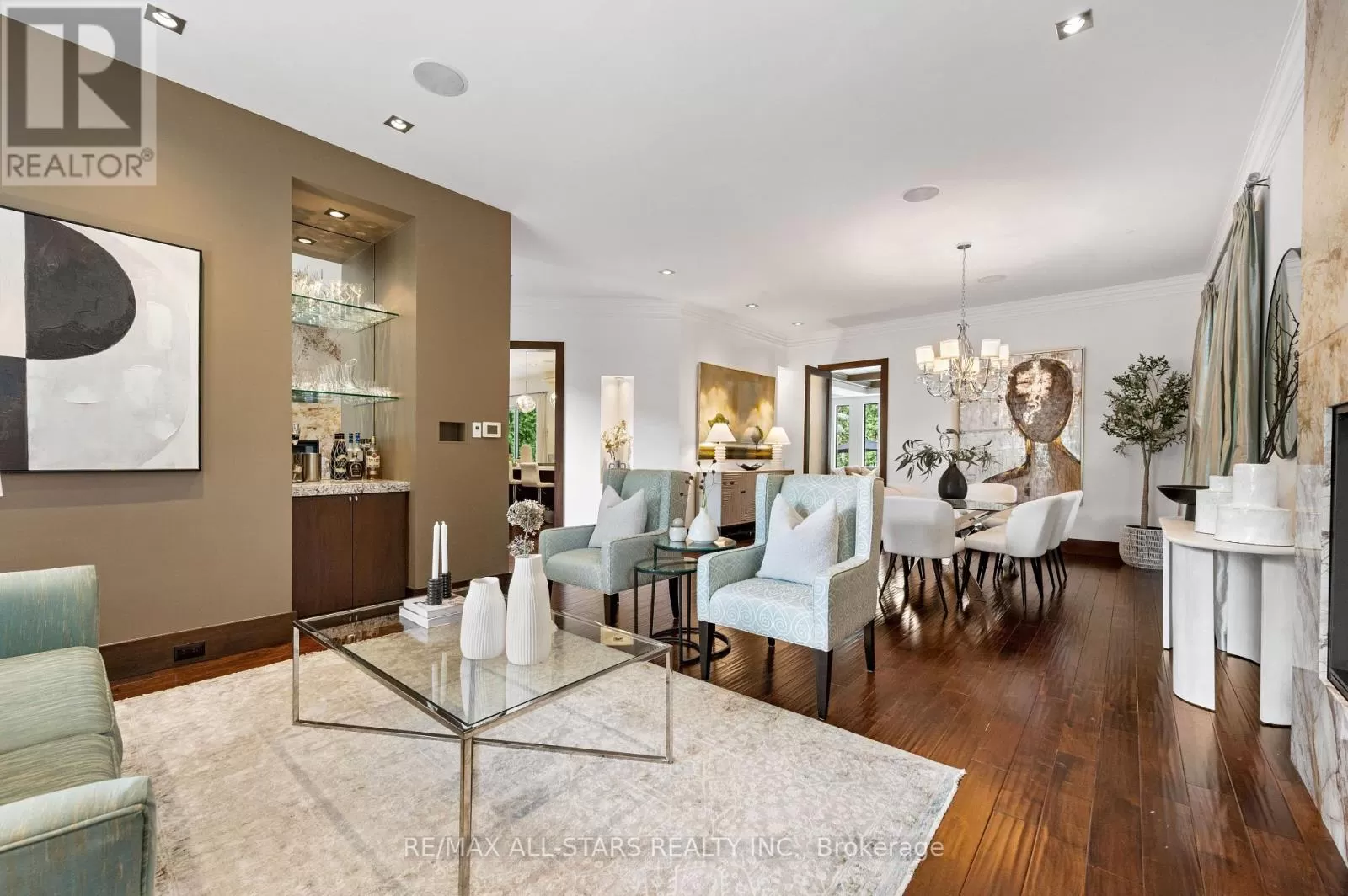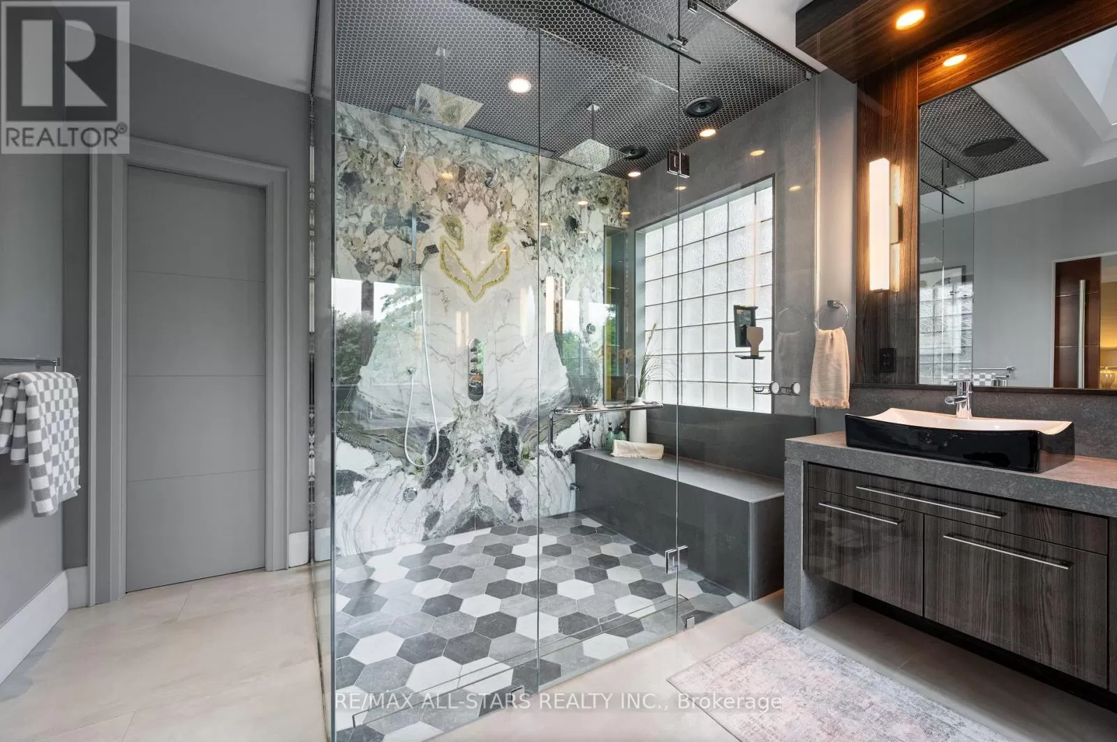Cross Streets: Kennedy & Highway 7. ** Directions: West of Main Street Unionville (Aprox 5 Minute Walk). Welcome home to 32 Wembley Avenue, a crown jewel within the prestigious and highly sought-after Unionville community that perfectly blends luxury, lifestyle & location. This architecturally refined French Chateau-inspired custom residence is nestled on an ultra-private 100 ft x 232 ft lot and is ideally located just steps to Toogood Pond and the enchanting shops & restaurants of charming Main Street. Proudly offered by it's original owners, this meticulously kept and inviting family home was designed for longevity, style & comfort. It was selected as the cover feature article in The Good Life Magazine, titled "Practical elegance in Old Unionville". This spectacular residence showcases timeless elegance blended w/modern touches. The exterior boasts a natural stone and stucco façade with copper accents and artisan-crafted oak & walnut doors as well as a 3-car garage. The pristine grounds feature professional landscaping including an oversized limestone waterfall, a large covered terrace with cedar ceilings, a large extra-deep pool with walk-over arch, an outdoor kitchenette and bar, a gazebo with a jacuzzi tub, a cabana bathroom, an outdoor shower+++ True resort-style living at it's best! Step inside this impeccably crafted home to find an inviting cathedral foyer and grand living spaces with soaring, beamed and custom-detailed ceilings including a sun-flooded and airy family room with custom built-ins & a sleek gas fireplace overlooking the backyard; A gourmet, modern, family-sized eat-in kitchen w/top of the line appliances; 5 +1 generous-sized bedrooms including a primary suite with vaulted & beamed ceilings as well as a jaw-dropping modern ensuite; A one-of-a-kind, ultimate entertainment loft w/private entrance, dramatic16-ft vaulted ceilings w/architectural & barn-wood accents, a retractable glass garage door, a glass balcony, a built-in DJ booth, pro party lighting, a custom wet bar w/a keg tap & bar seating for 8++ See https://32wembleyave.com/nb/! (id:27476)