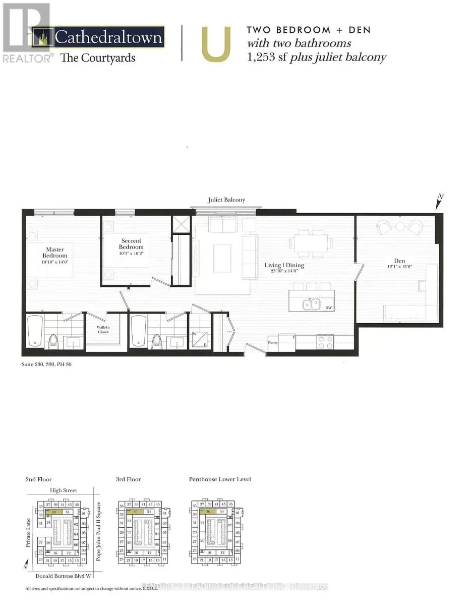 Woodbine/Major Mackenzie Move In Now! Live In Elegant Architecture Of The Courtyards In Cathedral town! European Inspired Boutique Style Condo 5-Storey Bldg. Unique Distinctive Designs Surrounded By Landscaped Courtyard/Piazza W/Patio Spaces. Ph30 Is 1253Sf Of Gracious Living W/2 Bedrooms+Den & 2 Baths, Juliette Balcony. Close To A Cathedral, Shopping, Public Transit & Great Schools In A Very Unique One-Of-A-Kind Community. Amenities Incl:Concierge, Visitor Pkg, Exercise Rm Party/Meeting Rm. (id:27476)