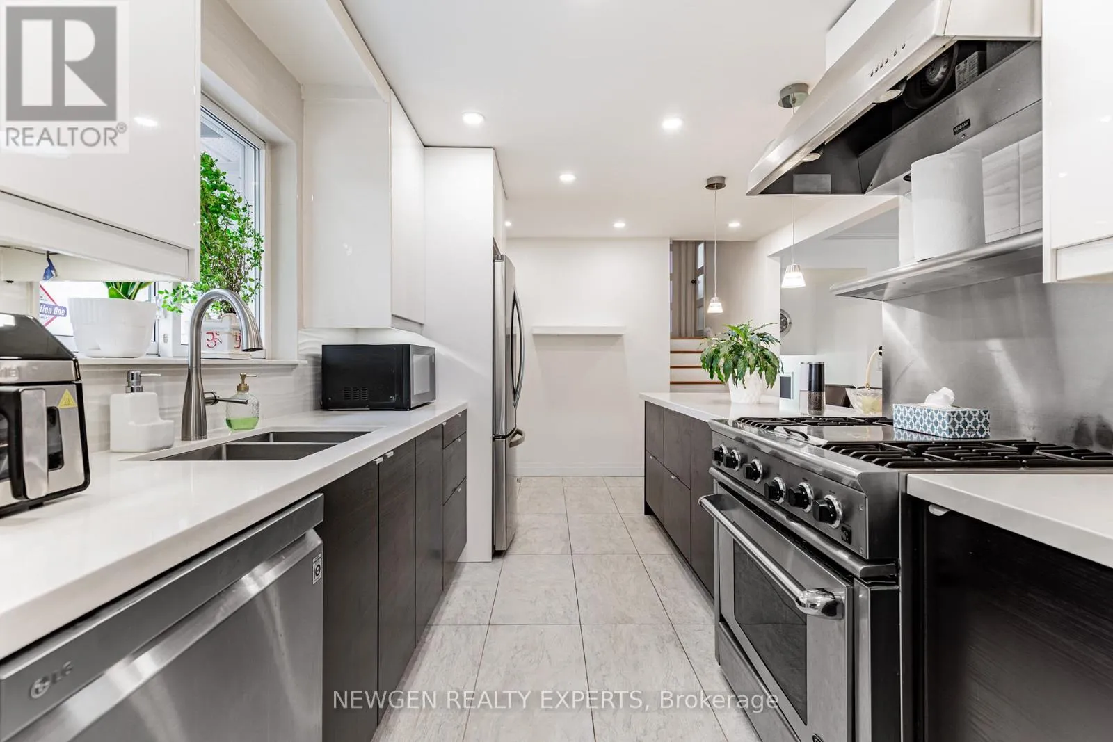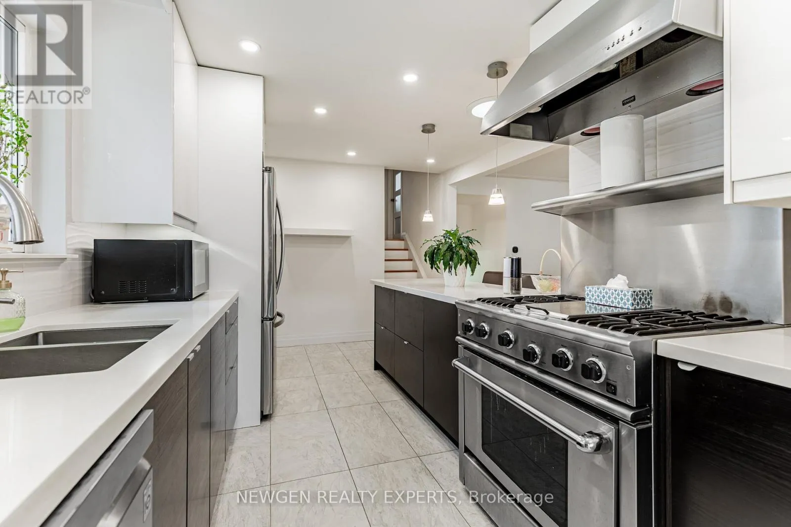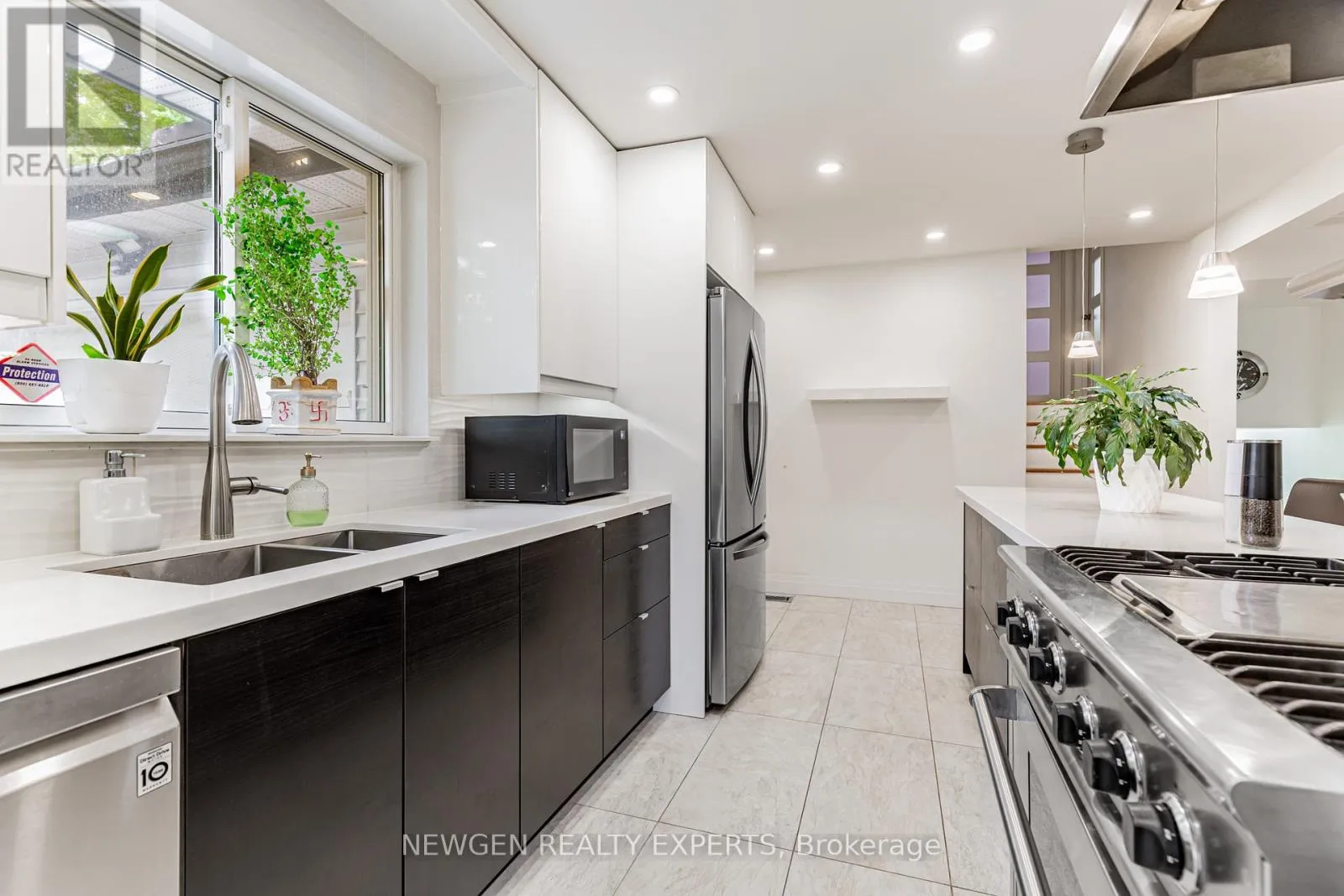 Hwy 7 / Markham Rd Beautifully updated and exceptionally spacious semi-detached home situated on a rare 150' deep lot in the highly sought-after Old Markham neighborhood, just steps from schools, parks, public transit, community centres, and shopping. This bright, well-maintained home boasts an open-concept layout featuring a modern eat-in kitchen, a generous living/dining area with crown molding, oversized baseboards, and a stunning bow window that fills the space with natural light. The upper level offers two large bedrooms with ample closet space, while the lower level includes an additional bedroom with a walk-out to the expansive backyard deck. The fully finished basement, with its own separate entrance, includes a kitchen, bathroom, and two bedrooms, currently generating steady rental income. With the potential to add a garden suite on the deep lot (buyer to verify with the city), this home also offers excellent investment opportunities. The extra-long driveway accommodates up to 6 vehicles, and the private backyard features a fenced vegetable garden and spacious deckideal for entertaining or quiet outdoor living. (id:27476)