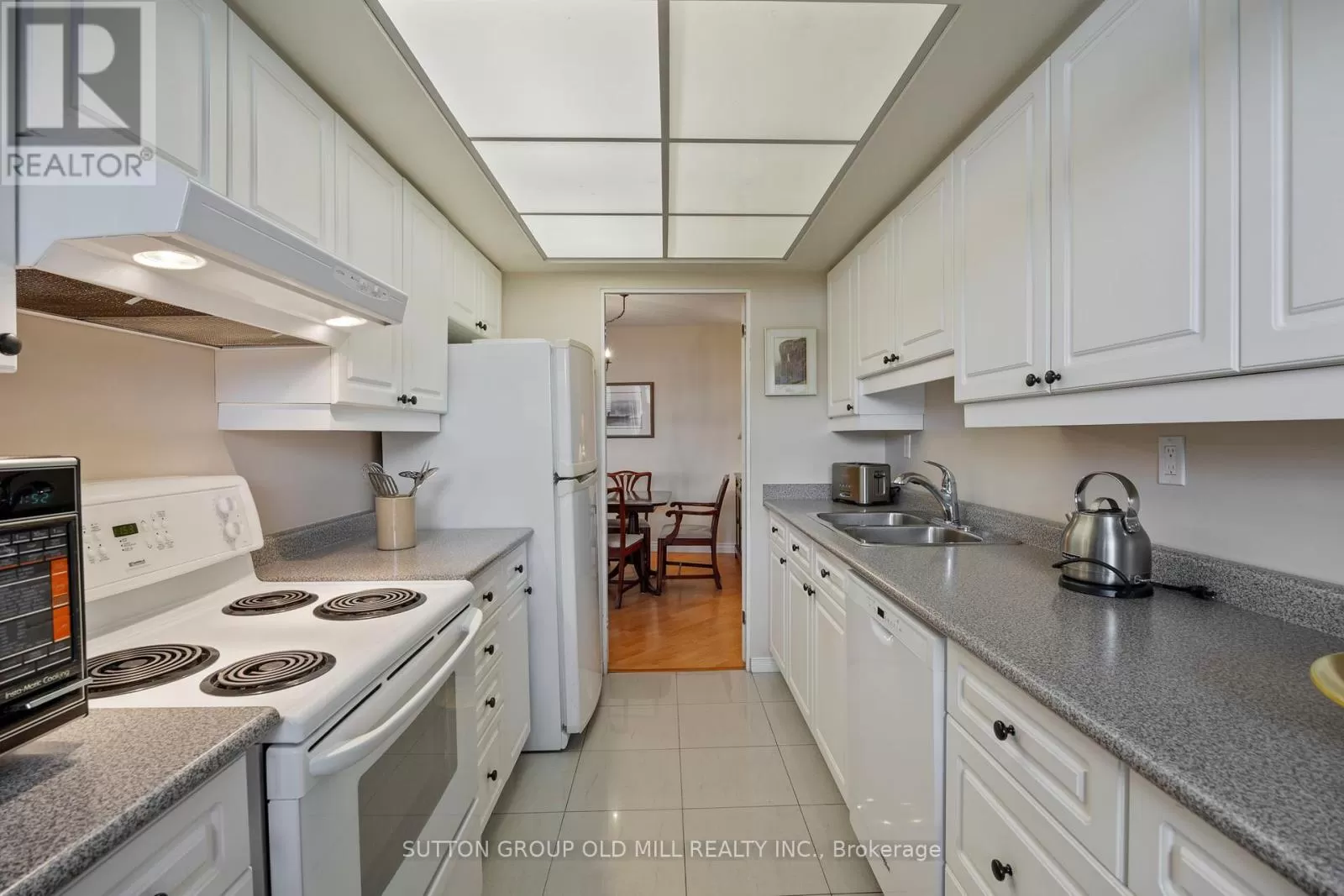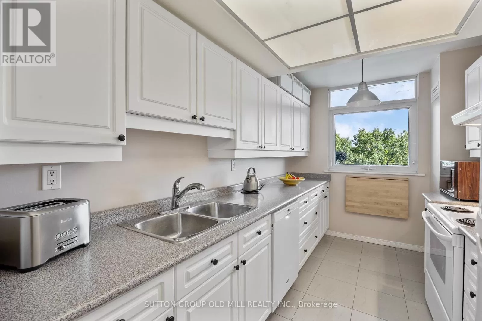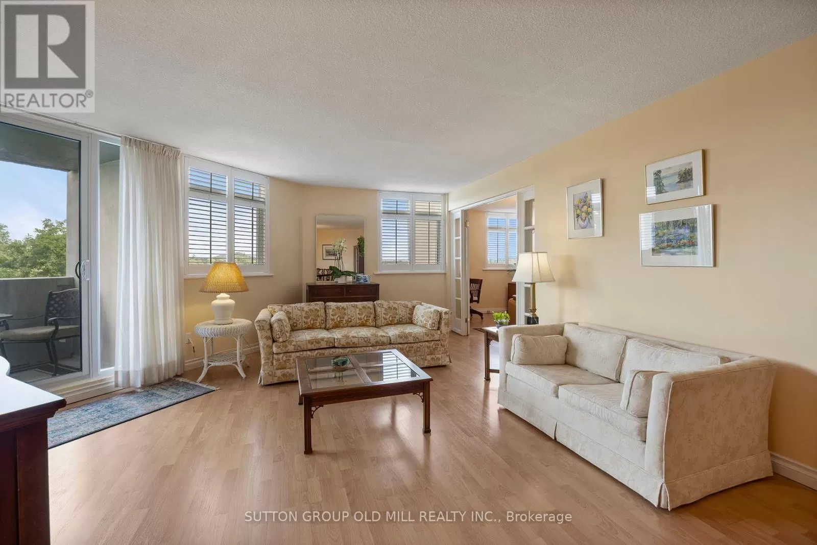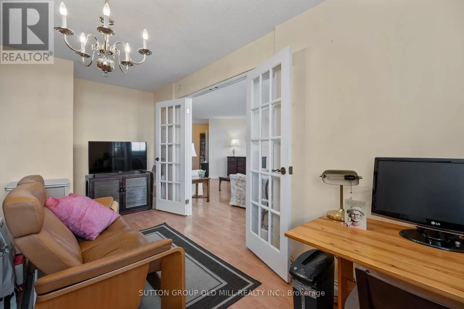 Cross Streets: Yonge & Centre. ** Directions: Google Maps. Welcome to the The Summit Condos in Thornhill. Bathed in natural light from its east-facing windows, the Donvale Suite offers a harmonious blend of comfort, style, and functionality. Step into the thoughtfully designed galley kitchen, complete with a cozy breakfast nook framed by sunlight. The open-concept living and dining area creates a warm and inviting atmosphere, seamlessly extending onto a private balcony perfect for morning coffee or evening unwinding. Just beyond, French doors open to a spacious den, ideal as a home office, reading lounge, or additional family retreat. The primary bedroom is a true haven, featuring a walk-in closet, a private two-piece ensuite, and serene views of the Historic Ladies Golf Club of Toronto. Practical conveniences include an ensuite laundry room, two double closets in the foyer for ample storage, and exclusive underground parking. Life at The Summit Condos means more than just a beautiful home, its a lifestyle. Enjoy a wealth of updated amenities, unwind in the sauna, stay active in the fitness centre, take a dip in the outdoor pool, or spend time in the games room, library, or elegant lounge and party room. Discover the comfort, convenience, and community that make the The Summit so sought-after. (id:27476)