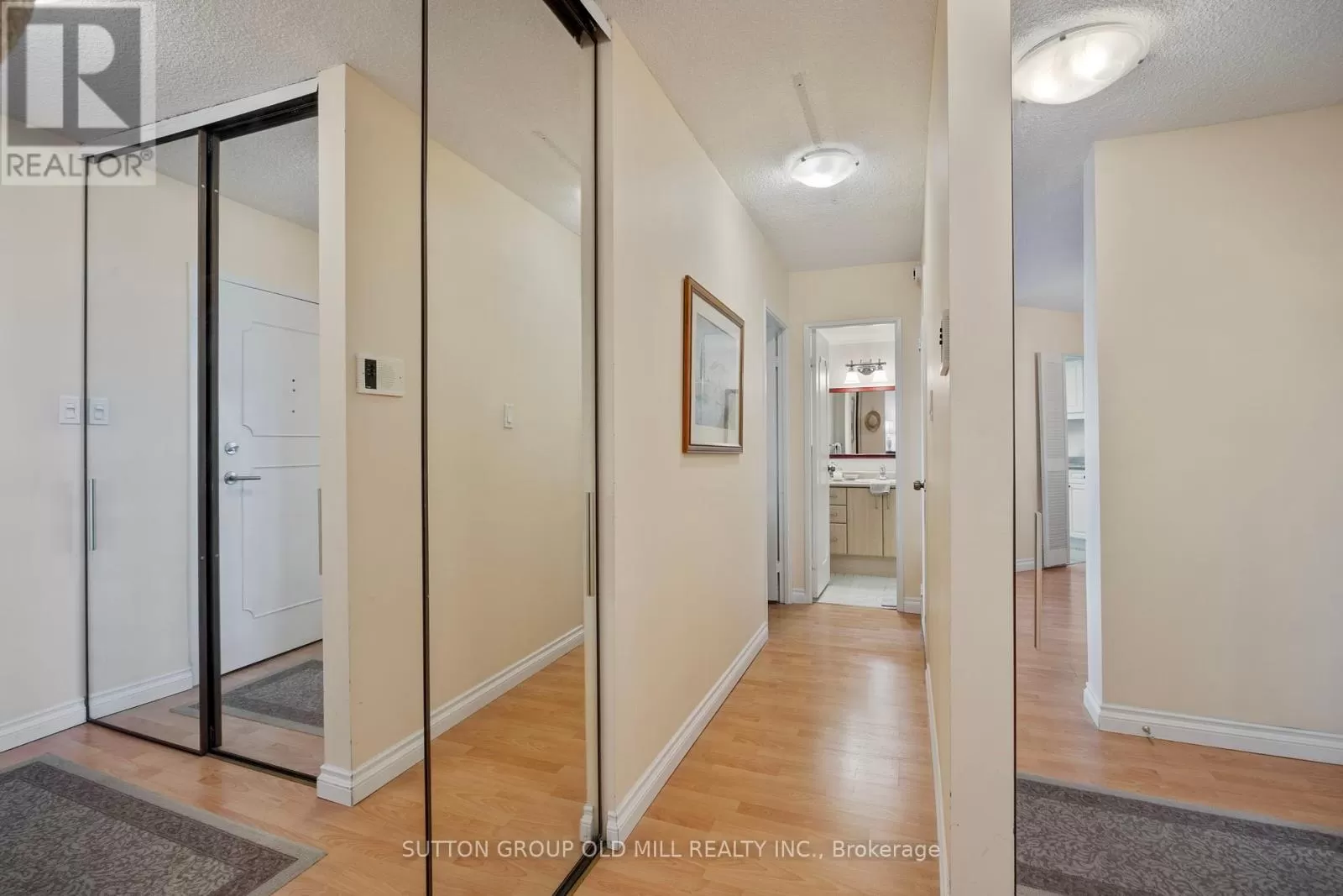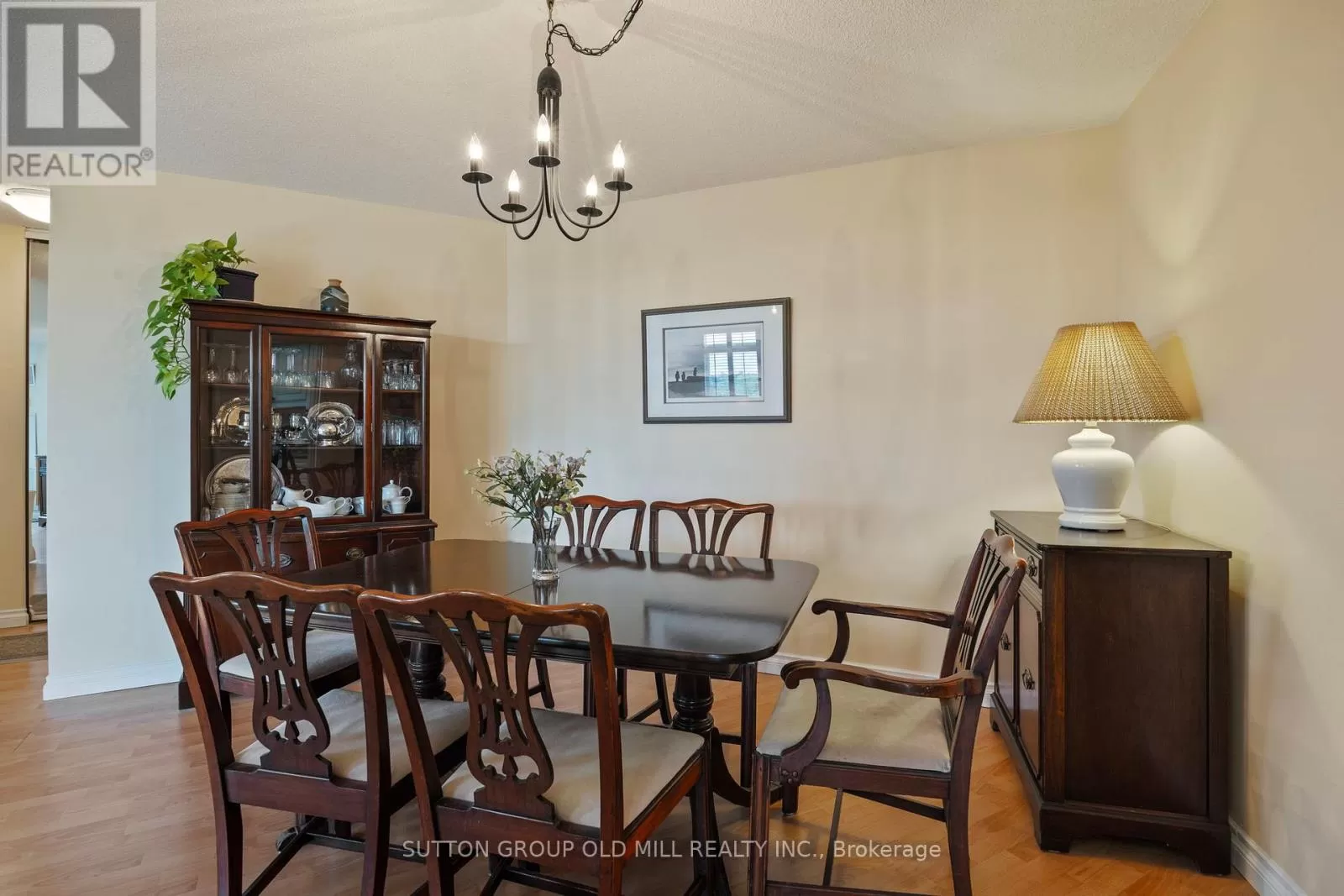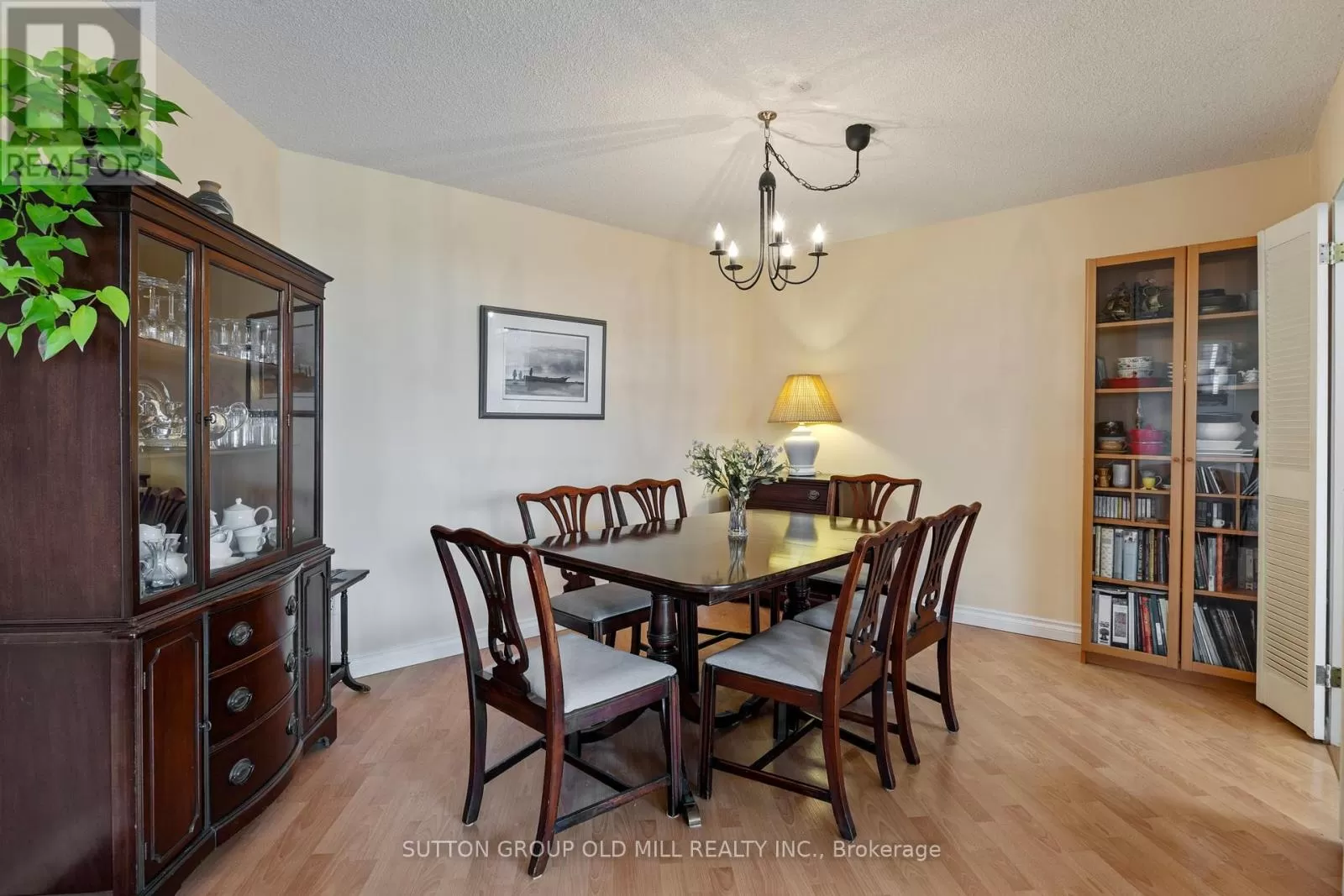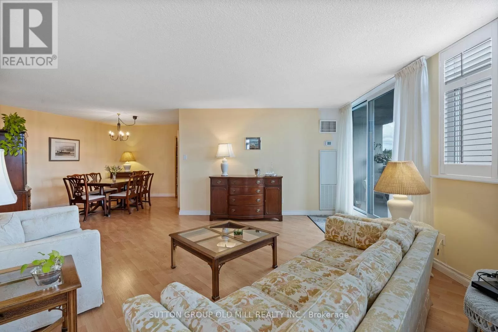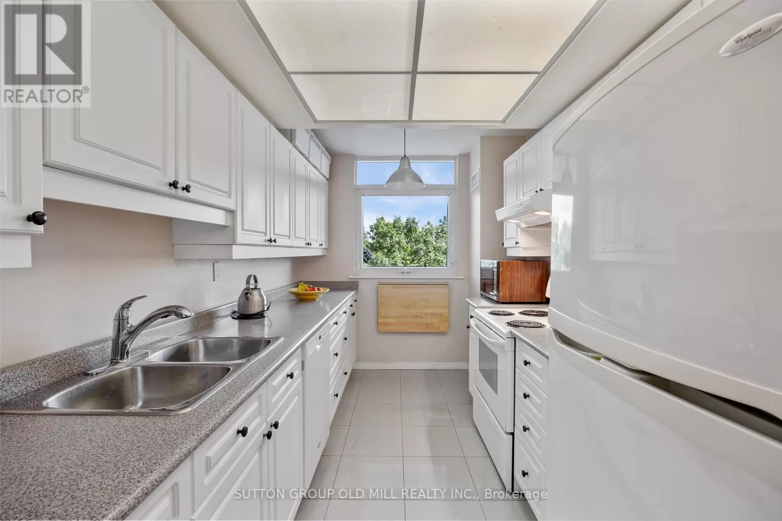 Cross Streets: Yonge & Centre. ** Directions: Google Maps. Welcome to the The Summit Condos in Thornhill. Bathed in natural light from its east-facing windows, the Donvale Suite offers a harmonious blend of comfort, style, and functionality. Step into the thoughtfully designed galley kitchen, complete with a cozy breakfast nook framed by sunlight. The open-concept living and dining area creates a warm and inviting atmosphere, seamlessly extending onto a private balcony perfect for morning coffee or evening unwinding. Just beyond, French doors open to a spacious den, ideal as a home office, reading lounge, or additional family retreat. The primary bedroom is a true haven, featuring a walk-in closet, a private two-piece ensuite, and serene views of the Historic Ladies Golf Club of Toronto. Practical conveniences include an ensuite laundry room, two double closets in the foyer for ample storage, and exclusive underground parking. Life at The Summit Condos means more than just a beautiful home, its a lifestyle. Enjoy a wealth of updated amenities, unwind in the sauna, stay active in the fitness centre, take a dip in the outdoor pool, or spend time in the games room, library, or elegant lounge and party room. Discover the comfort, convenience, and community that make the The Summit so sought-after. (id:27476)