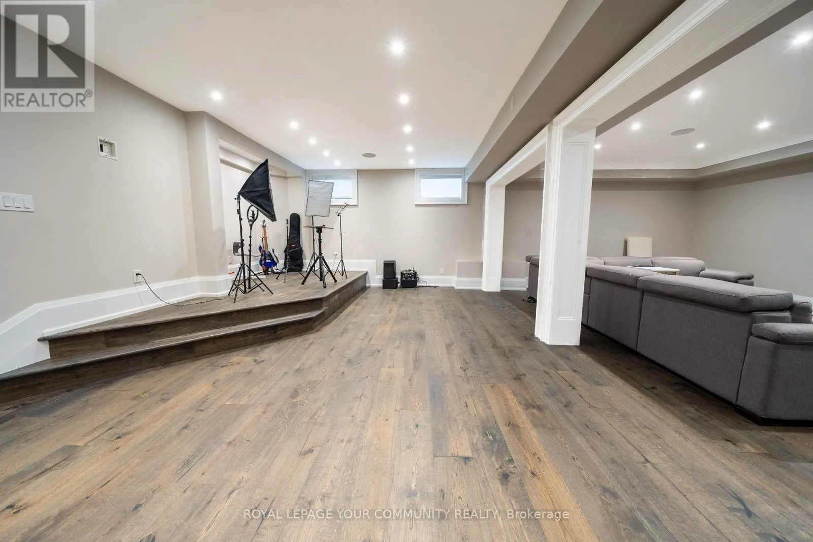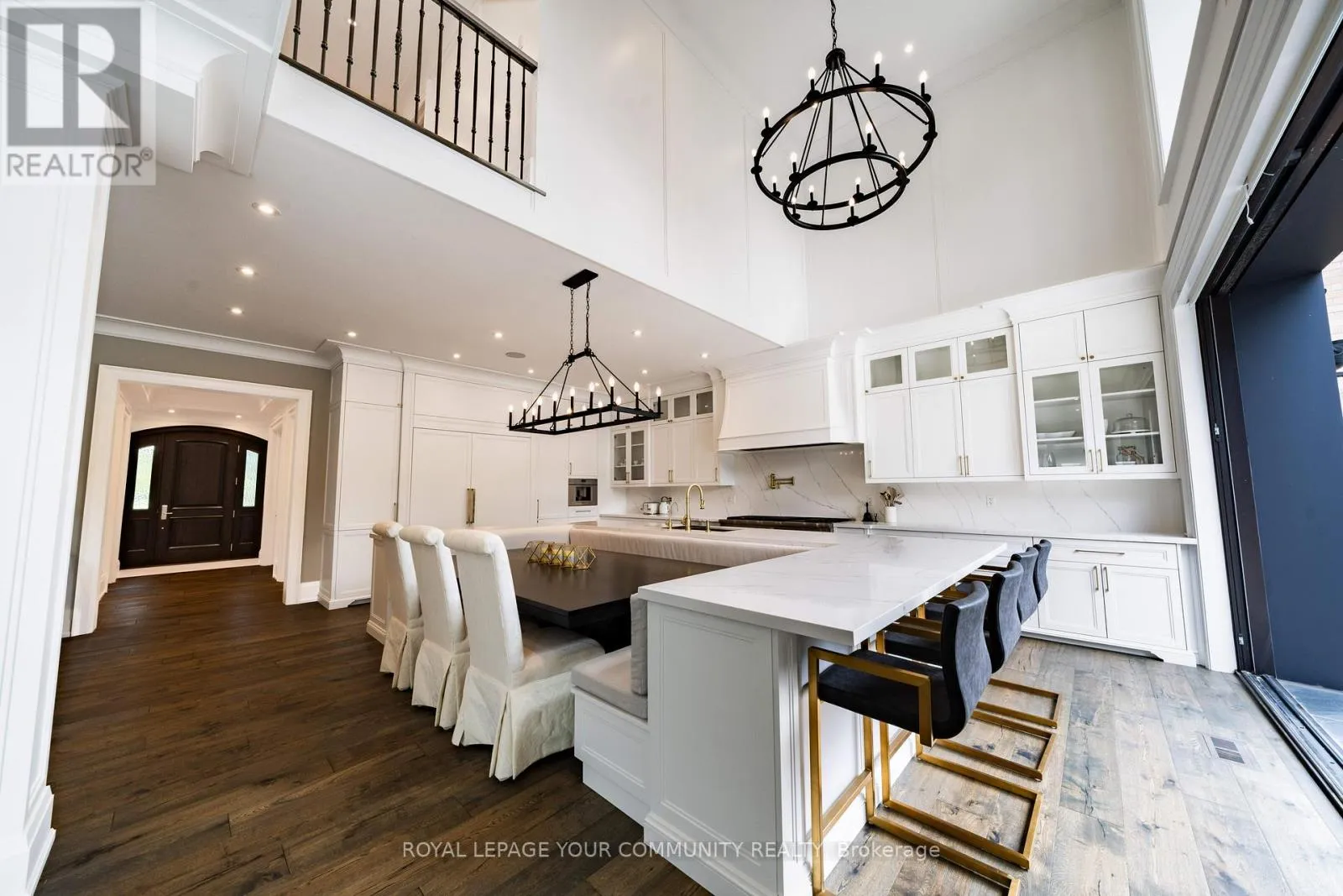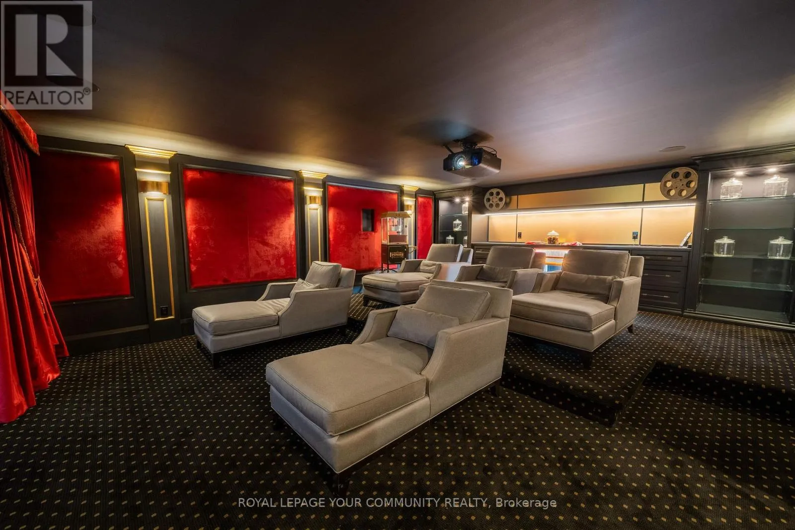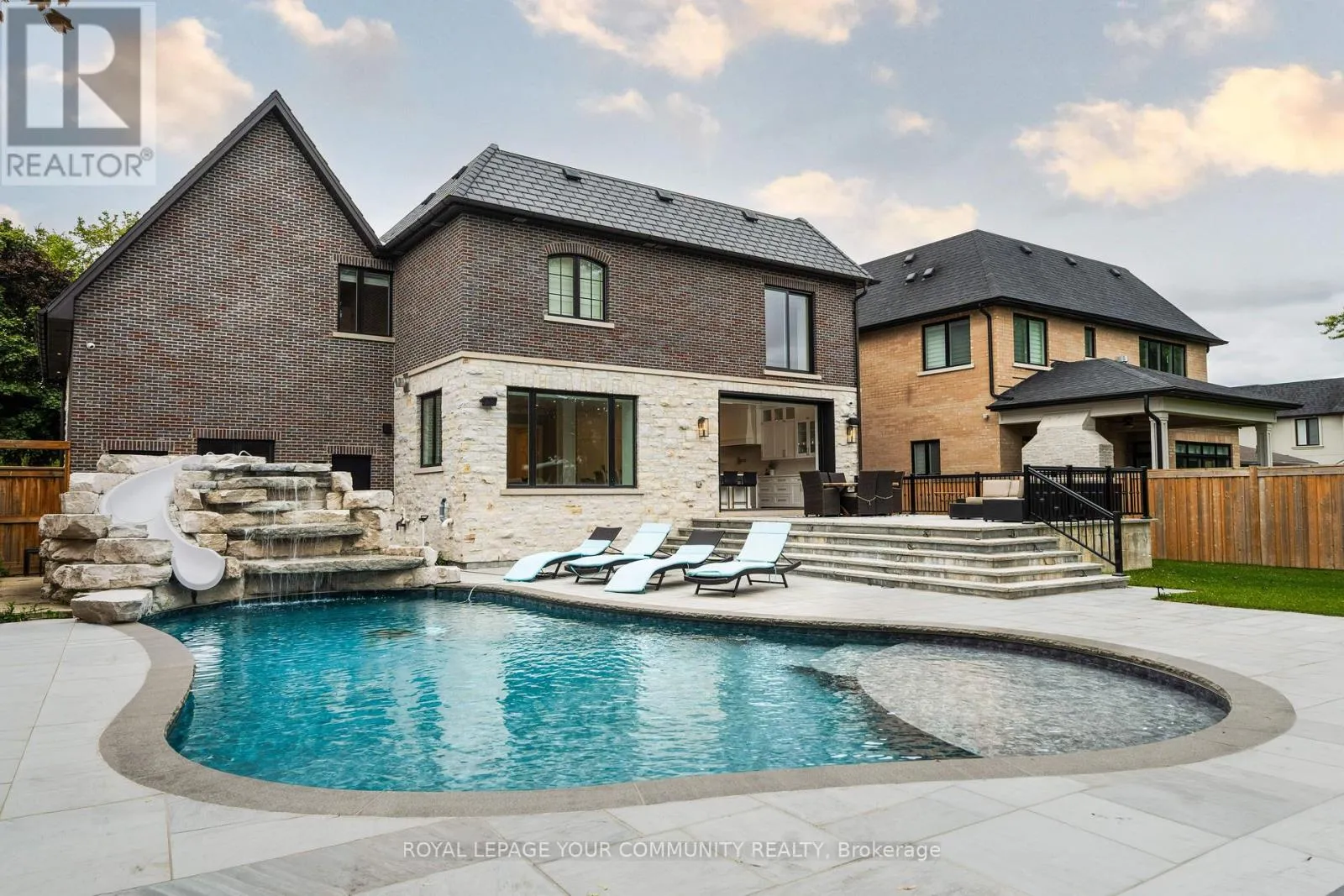 Markham Rd & Hwy 7 E One-of-a-kind custom home with exquisite luxury finishes! With 6,300 sqf of total livable area, this property boasts a magnificent chefs gourmet kitchen, perfect for entertaining guests with its 12-person seating. You'll be captivated by the stunning hardwood flooring that runs seamlessly throughout the entire home. With 4 bedrooms total and 6 bathrooms, including 3 ensuites, every family member can enjoy their own private sanctuary. Basement and upper floors feature heated floors, providing ultimate comfort. Master bedroom, boasting 16 ft vaulted ceilings that create a grand and inviting atmosphere. The main level features 10 ft ceilings, with an impressive 18 ft open space that extends all the way to the upper level, creating an open and airy ambiance. Indulge in the ultimate movie-watching experience in the fully functioning 1930s-esque movie theater, complete with a concession stand, custom speakers, and tiered 2-level seating. Located in the sub-basement, this unique feature ensures complete soundproofing for uninterrupted enjoyment. Step outside and be transported to your own private oasis. A 12x10 window wall leads you to the breathtaking outdoor space, featuring a massive exotic lagoon-style saltwater pool. Complete with a built-in rock wall waterfall and slide, this pool is the epitome of luxury and relaxation. But the extravagance doesn't end there! This property also includes a secondary house with full heating and AC, allowing you to enjoy all seasons comfortably. The secondary house features a gorgeous built-in brick pizza oven and fireplace. With a heated driveway and rear yard walkway! Don't miss out on the opportunity to call this extraordinary custom home your own. Experience the epitome of luxury, craftsmanship, and unparalleled design. (id:27476)