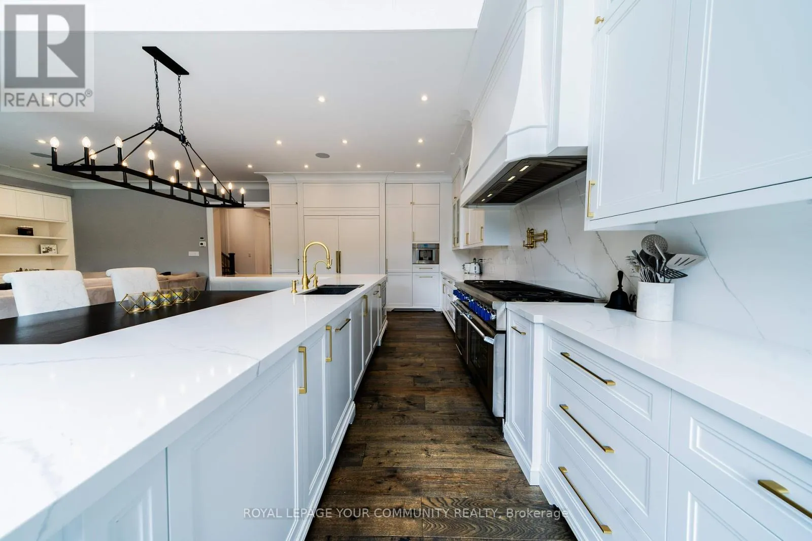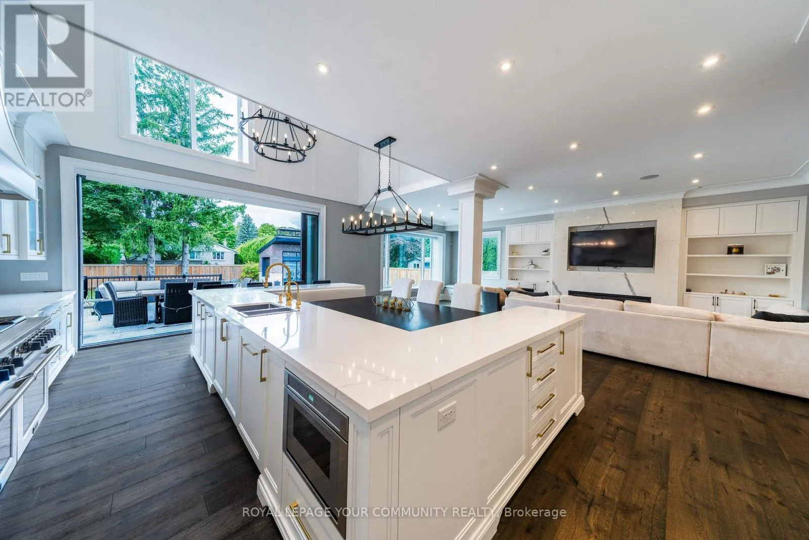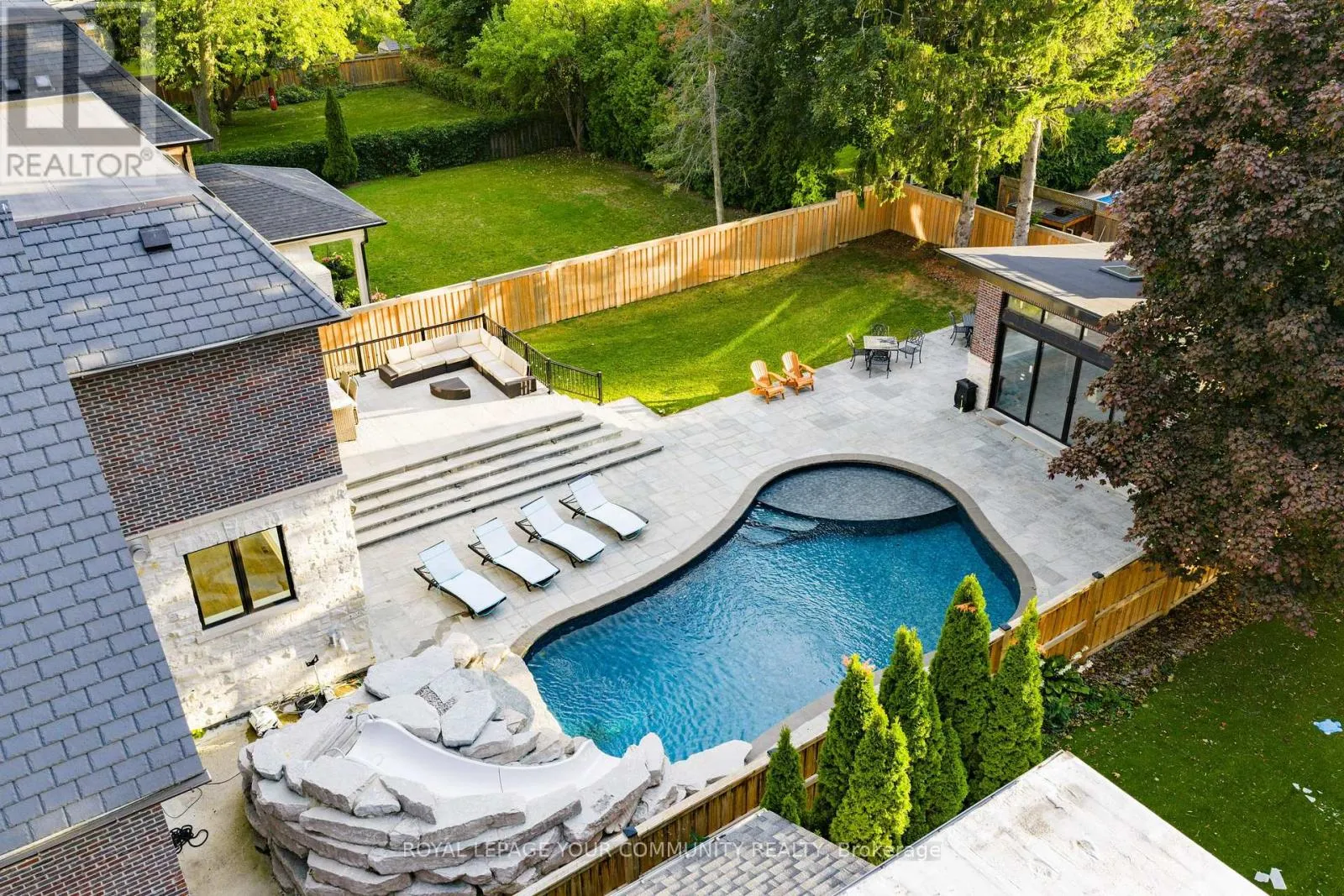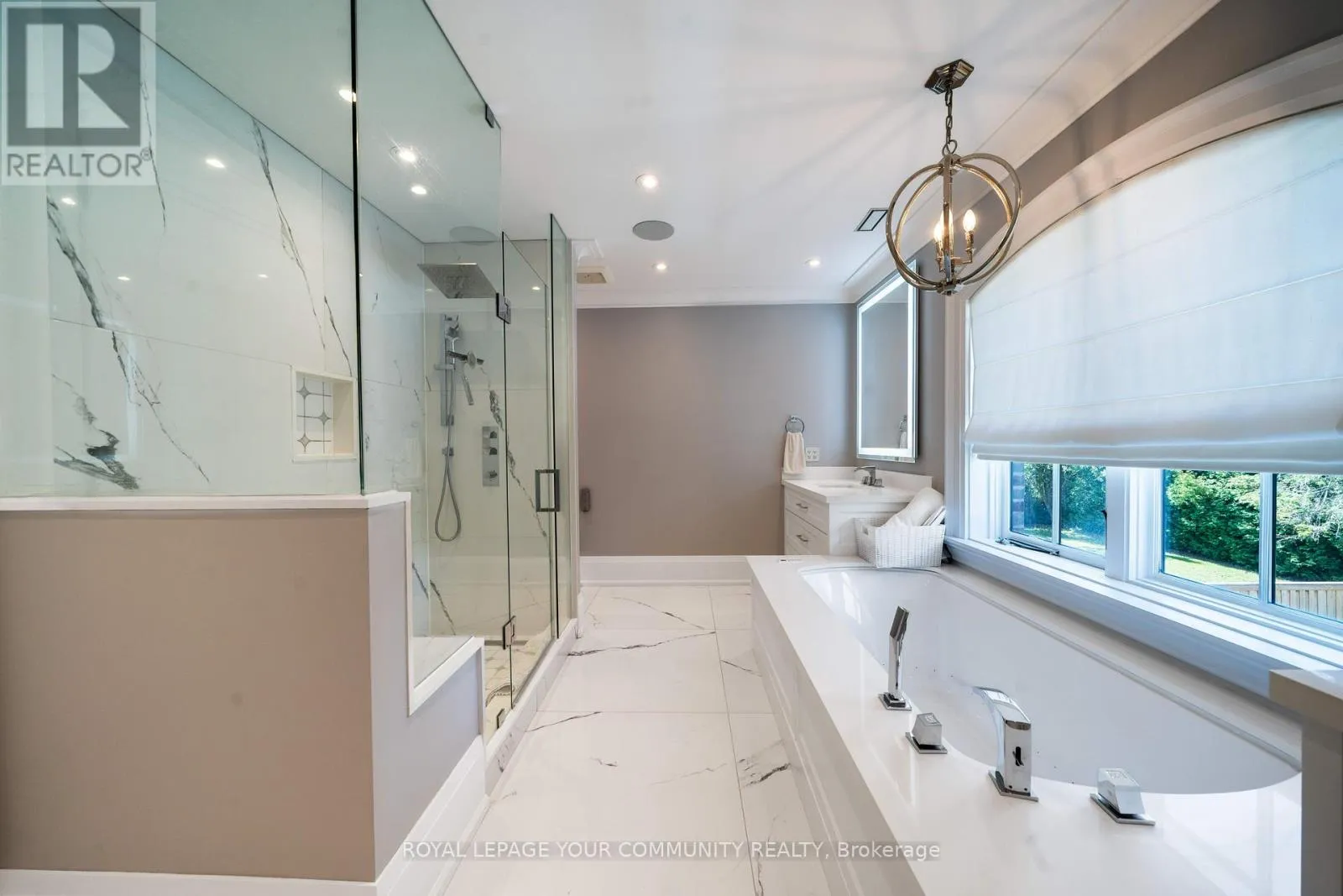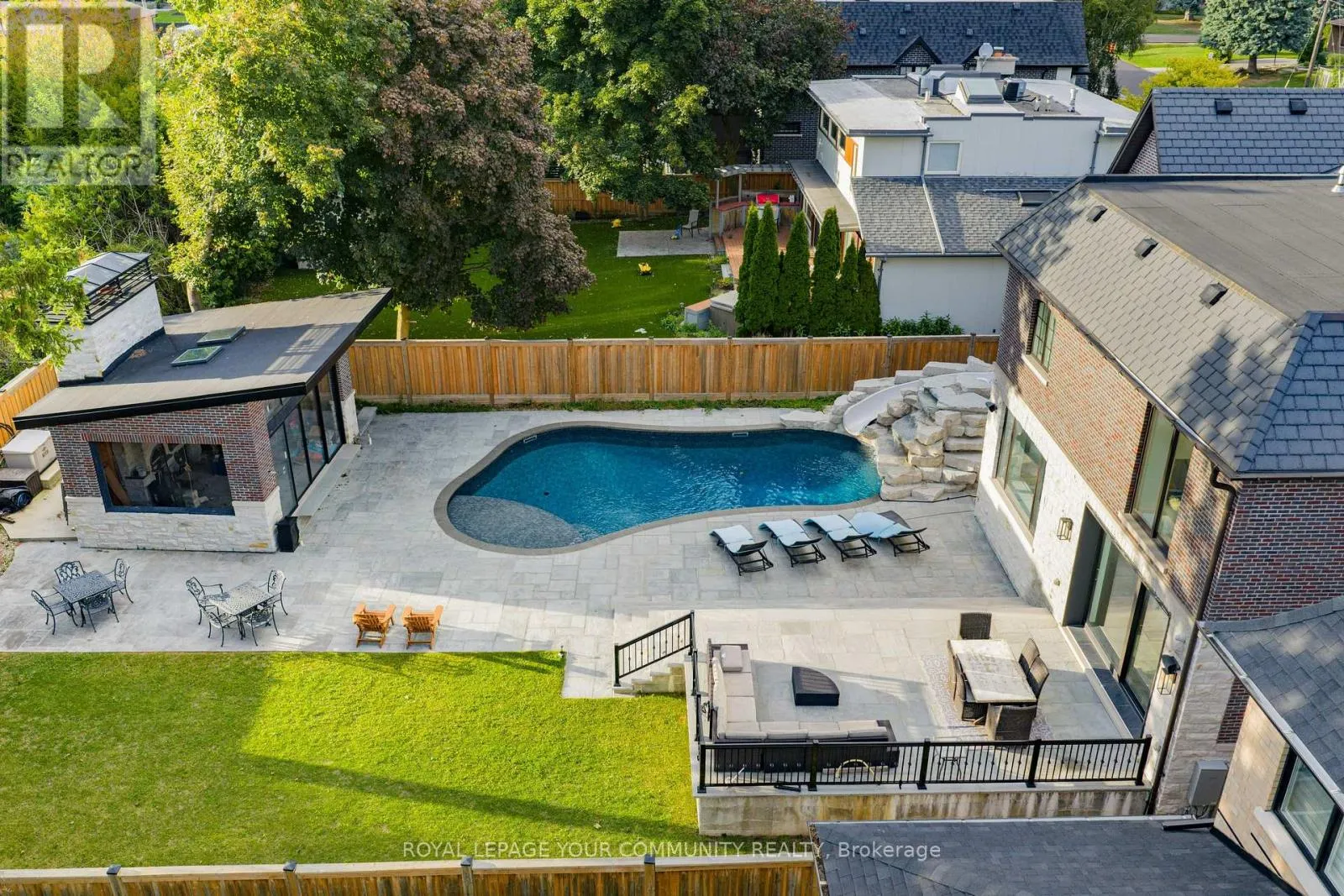 Markham Rd & Hwy 7 E One-of-a-kind custom home with exquisite luxury finishes! With 6,300 sqf of total livable area, this property boasts a magnificent chefs gourmet kitchen, perfect for entertaining guests with its 12-person seating. You'll be captivated by the stunning hardwood flooring that runs seamlessly throughout the entire home. With 4 bedrooms total and 6 bathrooms, including 3 ensuites, every family member can enjoy their own private sanctuary. Basement and upper floors feature heated floors, providing ultimate comfort. Master bedroom, boasting 16 ft vaulted ceilings that create a grand and inviting atmosphere. The main level features 10 ft ceilings, with an impressive 18 ft open space that extends all the way to the upper level, creating an open and airy ambiance. Indulge in the ultimate movie-watching experience in the fully functioning 1930s-esque movie theater, complete with a concession stand, custom speakers, and tiered 2-level seating. Located in the sub-basement, this unique feature ensures complete soundproofing for uninterrupted enjoyment. Step outside and be transported to your own private oasis. A 12x10 window wall leads you to the breathtaking outdoor space, featuring a massive exotic lagoon-style saltwater pool. Complete with a built-in rock wall waterfall and slide, this pool is the epitome of luxury and relaxation. But the extravagance doesn't end there! This property also includes a secondary house with full heating and AC, allowing you to enjoy all seasons comfortably. The secondary house features a gorgeous built-in brick pizza oven and fireplace. With a heated driveway and rear yard walkway! Don't miss out on the opportunity to call this extraordinary custom home your own. Experience the epitome of luxury, craftsmanship, and unparalleled design. (id:27476)