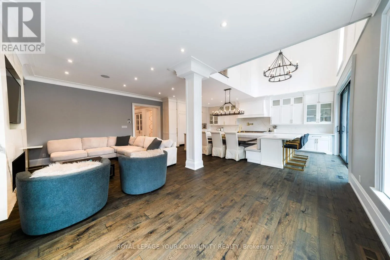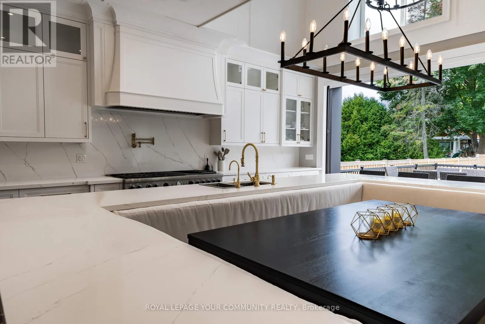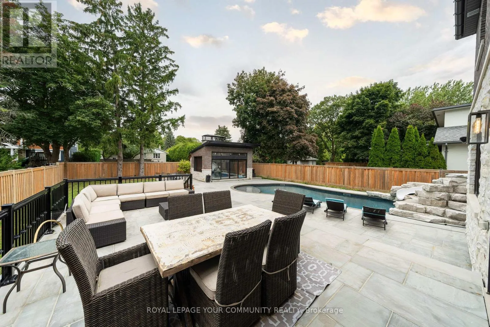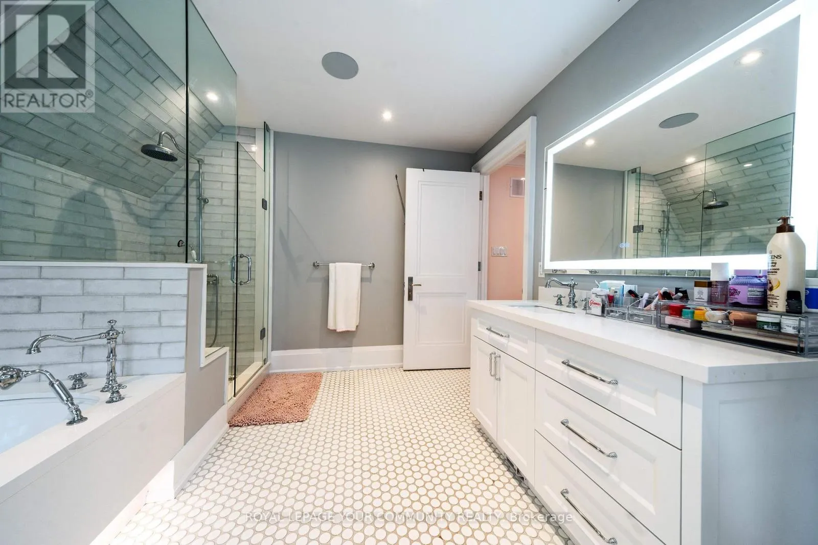 Markham Rd & Hwy 7 E One-of-a-kind custom home with exquisite luxury finishes! With 6,300 sqf of total livable area, this property boasts a magnificent chefs gourmet kitchen, perfect for entertaining guests with its 12-person seating. You'll be captivated by the stunning hardwood flooring that runs seamlessly throughout the entire home. With 4 bedrooms total and 6 bathrooms, including 3 ensuites, every family member can enjoy their own private sanctuary. Basement and upper floors feature heated floors, providing ultimate comfort. Master bedroom, boasting 16 ft vaulted ceilings that create a grand and inviting atmosphere. The main level features 10 ft ceilings, with an impressive 18 ft open space that extends all the way to the upper level, creating an open and airy ambiance. Indulge in the ultimate movie-watching experience in the fully functioning 1930s-esque movie theater, complete with a concession stand, custom speakers, and tiered 2-level seating. Located in the sub-basement, this unique feature ensures complete soundproofing for uninterrupted enjoyment. Step outside and be transported to your own private oasis. A 12x10 window wall leads you to the breathtaking outdoor space, featuring a massive exotic lagoon-style saltwater pool. Complete with a built-in rock wall waterfall and slide, this pool is the epitome of luxury and relaxation. But the extravagance doesn't end there! This property also includes a secondary house with full heating and AC, allowing you to enjoy all seasons comfortably. The secondary house features a gorgeous built-in brick pizza oven and fireplace. With a heated driveway and rear yard walkway! Don't miss out on the opportunity to call this extraordinary custom home your own. Experience the epitome of luxury, craftsmanship, and unparalleled design. (id:27476)