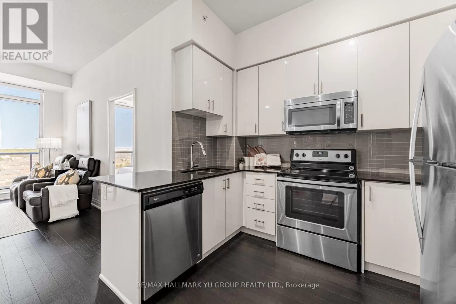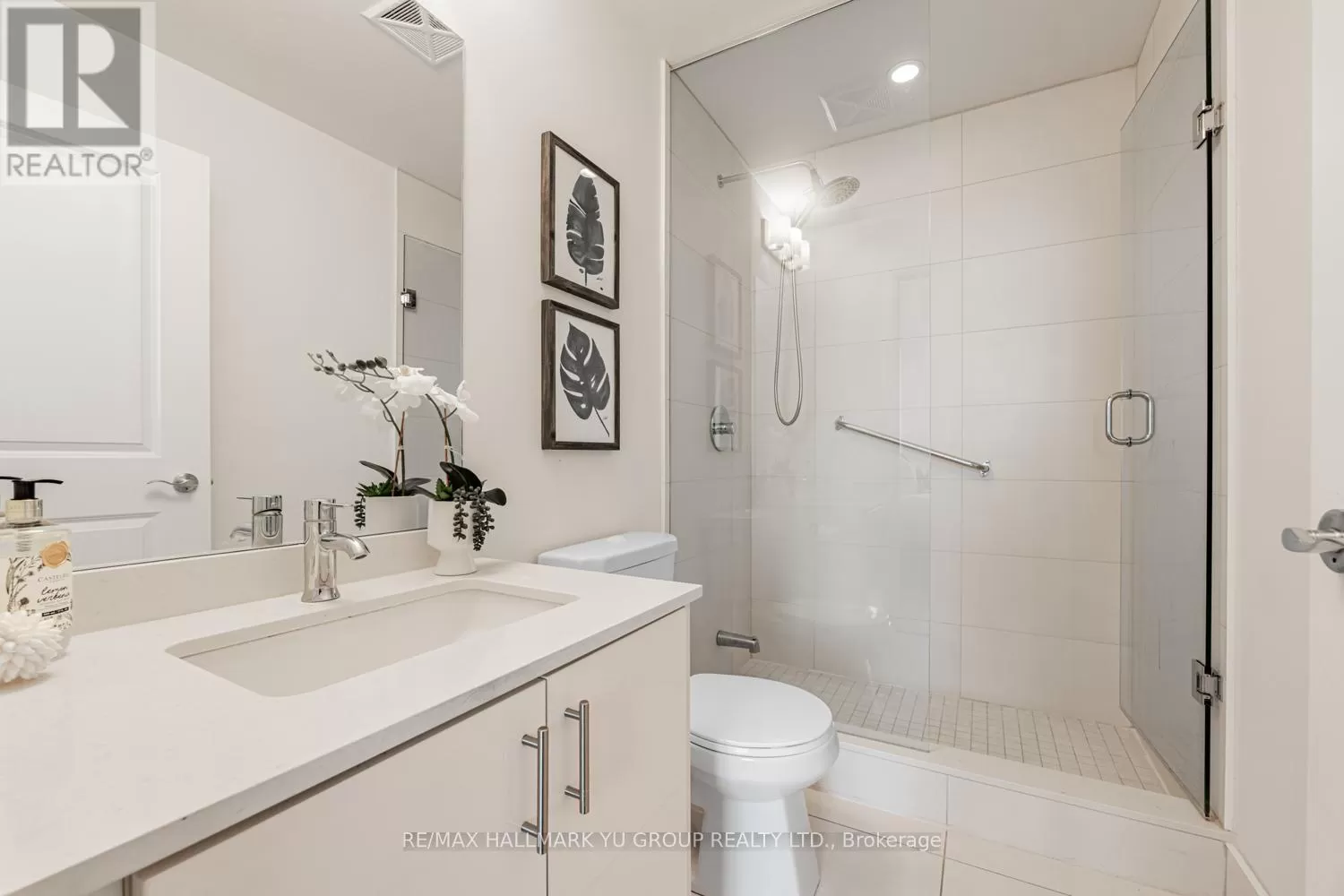 Markham Rd/Bur Oak Ave Rare lower penthouse 2-bedroom, 2-bath condo with soaring 10-foot ceilings, 1 parking space, and a private balcony to enjoy a desirable west view of evening sunsets over a quiet residential neighbourhood and lush greenery - on a clear day, you can even see the CN Tower. Contemporary design with a functional split-bedroom layout, including a spacious primary bedroom with room for a king-size bed, a large 3-pc glass shower, and his-and-her mirrored closets. Just a short walk to Mount Joy GO Station (on the east side of the building, with this unit facing the quieter west side) - perfect for those who work downtown but prefer to come home to peace and space. Steps to public transit and top-rated schools, with Markville Shopping Centre and Markham Stouffville Hospital only minutes away by car. Shops, services, and dining are all within easy reach. As an added bonus, the building features a shared EV charging station for residents. (id:27476)