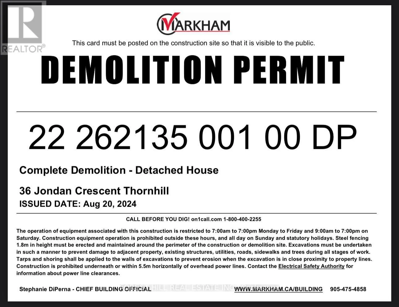Bayview/ 407 ETR Attention Builders, Developers, and Investors! This property is priced for land value andincludes building permits, with the house being sold as-is. Located on ravine lot, this primepiece of real estate offers an incredible chance to create your dream home in a serene, family-friendly neighbourhood. Enjoy convenient access to Hwy 407, local restaurants, schools, and anupcoming subway line. The current owner has invested significant time and effort working alongwith the designers and architects and the City of Markham to design a stunning 5,000 sq. ft.modern home. This presents a fantastic opportunity for a small builder or developer to capitalizeon building a new house and achieving significant returns. With numerous developments already underway in the area, now is the perfect time to invest! (id:27476)