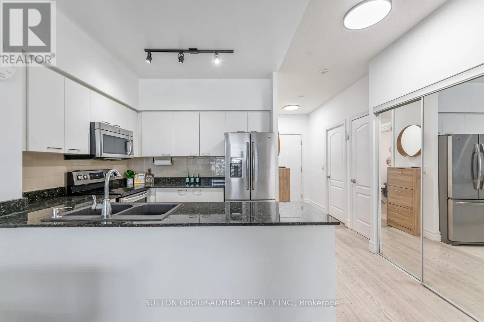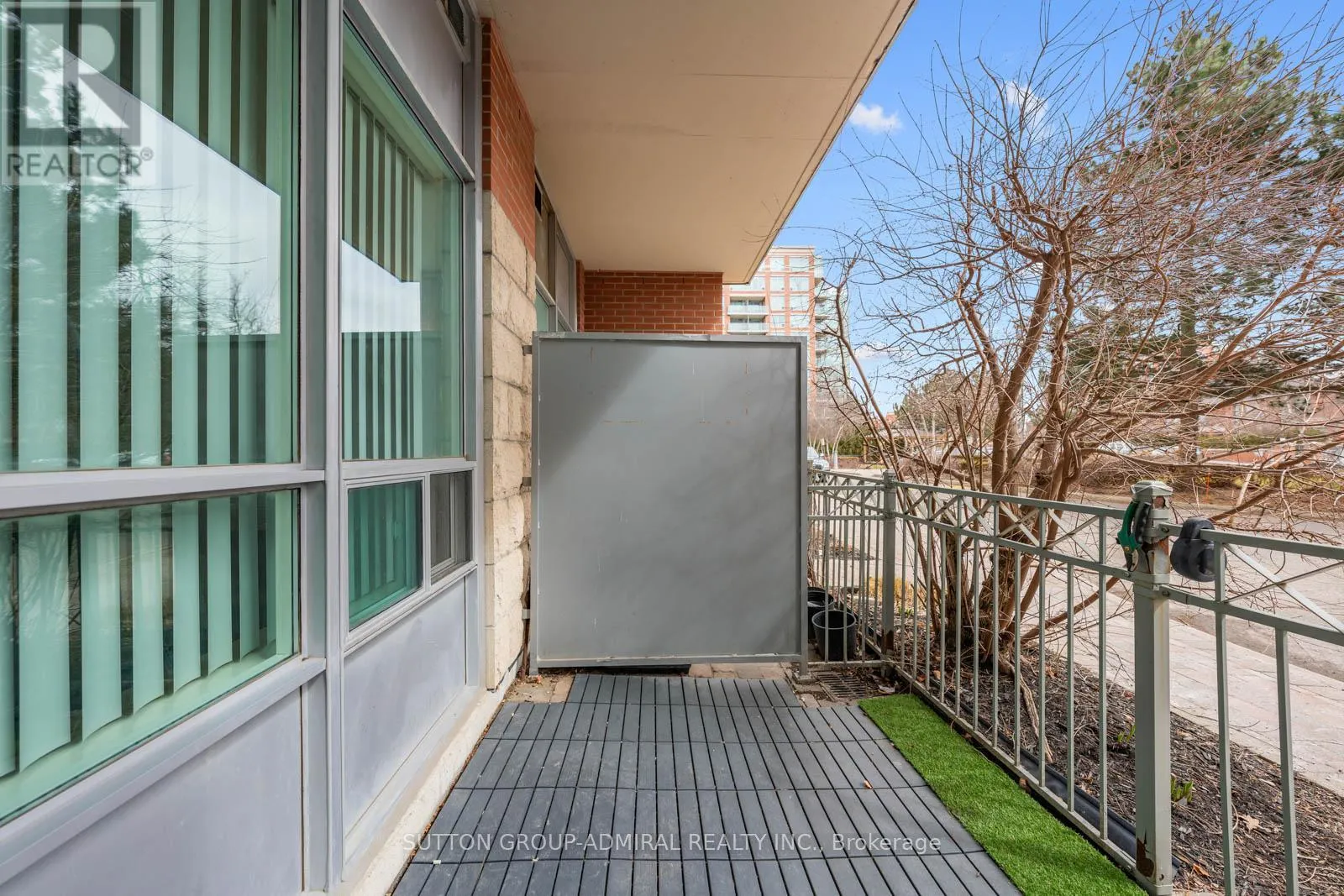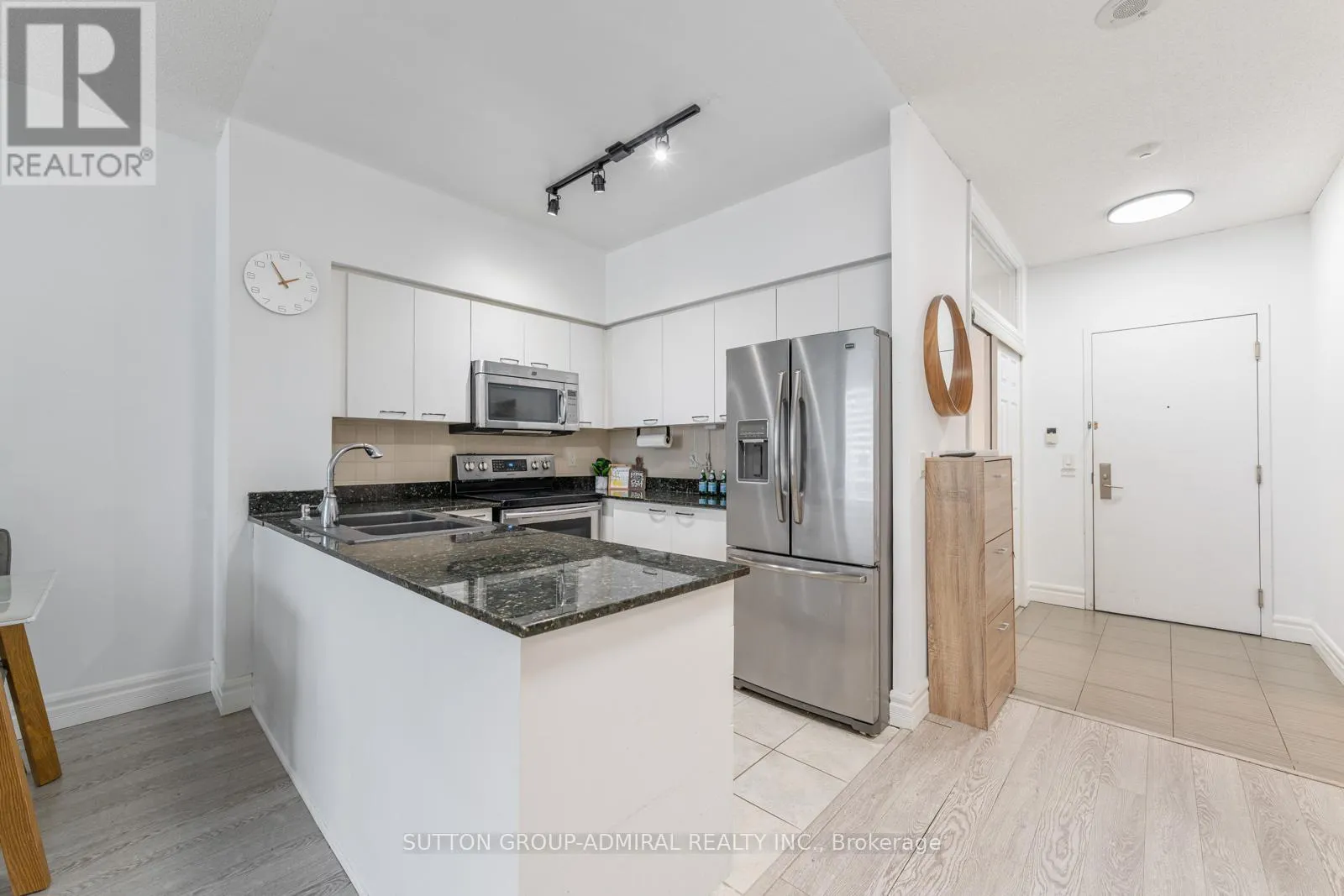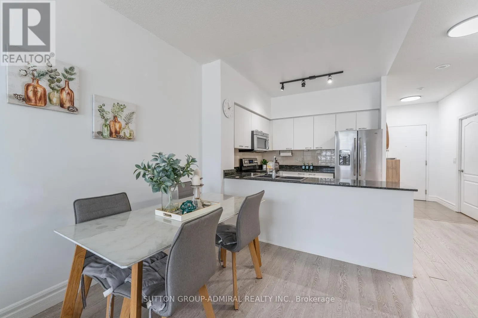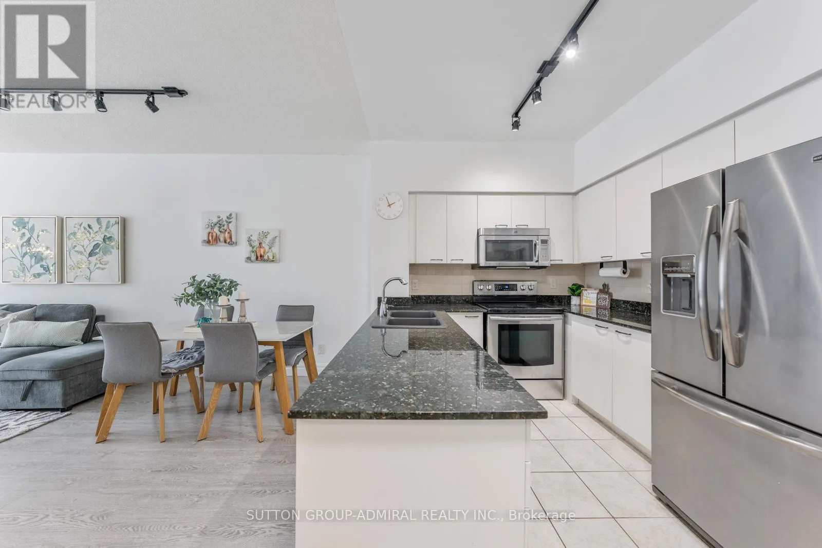 Cross Streets: Leslie St & Highway 7. ** Directions: North on Hwy 7, East on Saddlecreek Dr & West on Suncrest Blvd. Located in the prime area of Markham, 48 Suncrest Blvd #116 is a charming 1-bed + den, 1-bath unit on the first floor, offering a seamless and functional layout. The south-facing balcony fills the space with natural light, complementing the freshly painted white interior. With laminate and tile flooring throughout and modern zebra blinds, this unit is both stylish and practical. The living and dining area creates a welcoming space for entertaining, while the kitchen features sleek appliances, a stylish backsplash, and quartz countertops that double as a breakfast bar. The primary bedroom has a large window and a walk-in closet, while the den with its own window can easily serve as a second bedroom. Additional features include a Nest thermostat and two lockers for extra storage. Residents enjoy top-tier amenities including concierge service, a gym, party/meeting/game room, an indoor pool, hot tub, and sauna. Conveniently located close to Walmart, Costco, and within walking distance to the future T&T Supermarket, this unit also offers easy access to Viva Bus Station, Langstaff GO Train, Hwy 404, parks, schools, restaurants, and shops! (id:27476)