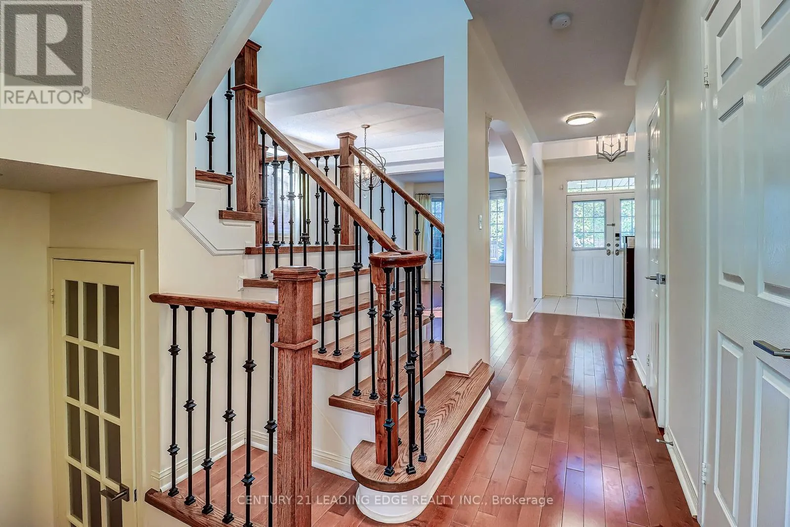 Major Mack & The Bridle Walk Stunning exquisite 4-bedroom, 5-bathroom home In the Prestigious Berczy Community! Magnificent Ravine House Back on the Park On Quiet Street! Huge Irregular Size Lot!! Bright and Spacious open-concept layout with direct garage access. The gourmet kitchen features granite countertop and a large Island, Large Eat In Kitchen Area w/walk out to Large Deck. Large Skylight shining to 2 Story Open Metal Picket Stairs* Separate Formal Living and Dining with Hardwood Floor* Dining room* * Spacious Family room w/Gas Fireplace for a warm Winter and Hardwood Floors* Main Floor Sunken Laundry w/sink and door to Garage* 2nd Floor has huge master Ensuite w/double sink* stainless steel appliances, a breakfast area. Main Floor Laundry and Direct Access to Garage. Professional Finished Basement offer a Large Entertaining Room and Story space. TOP Rated Schools Area...Stonebridge PS(8.8), Castlemore Ps(8.7), Pierre Elliott Trudeau Nationally Ranked High School(8.9), All St. Catholic ES(8.2), St. Augustine(9.2)* Compare now in this area and do not miss this lovely move in bright & spacious Home. (id:27476)